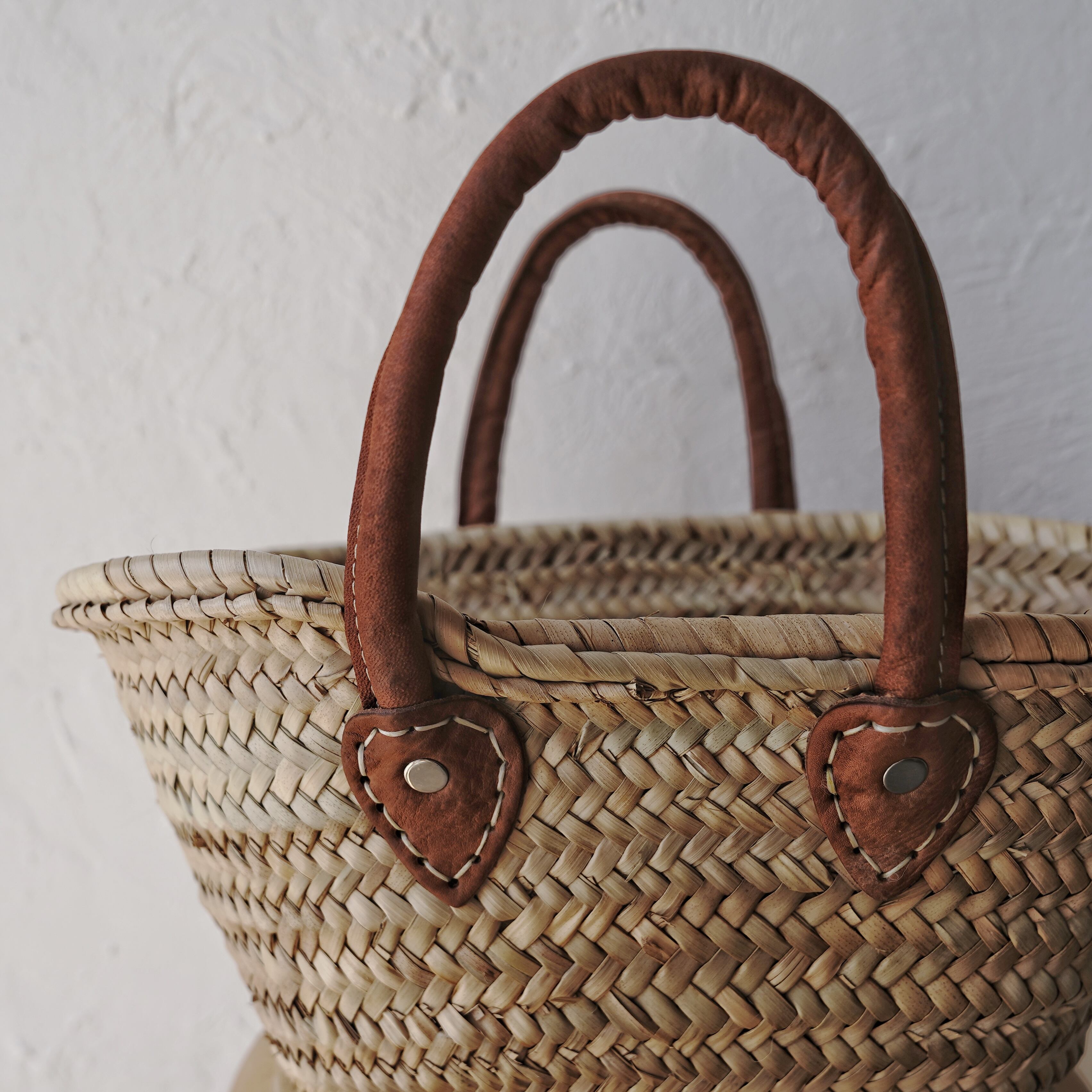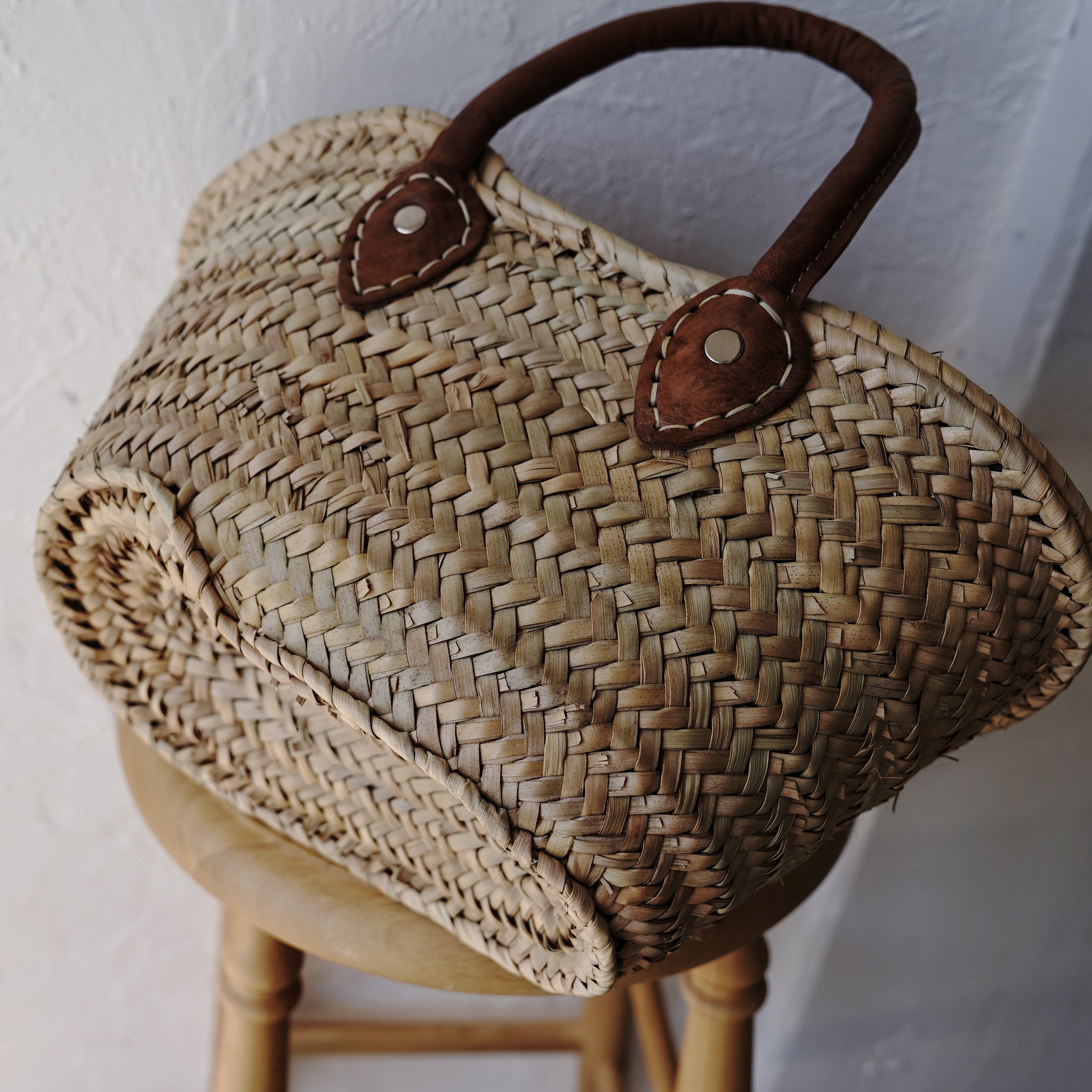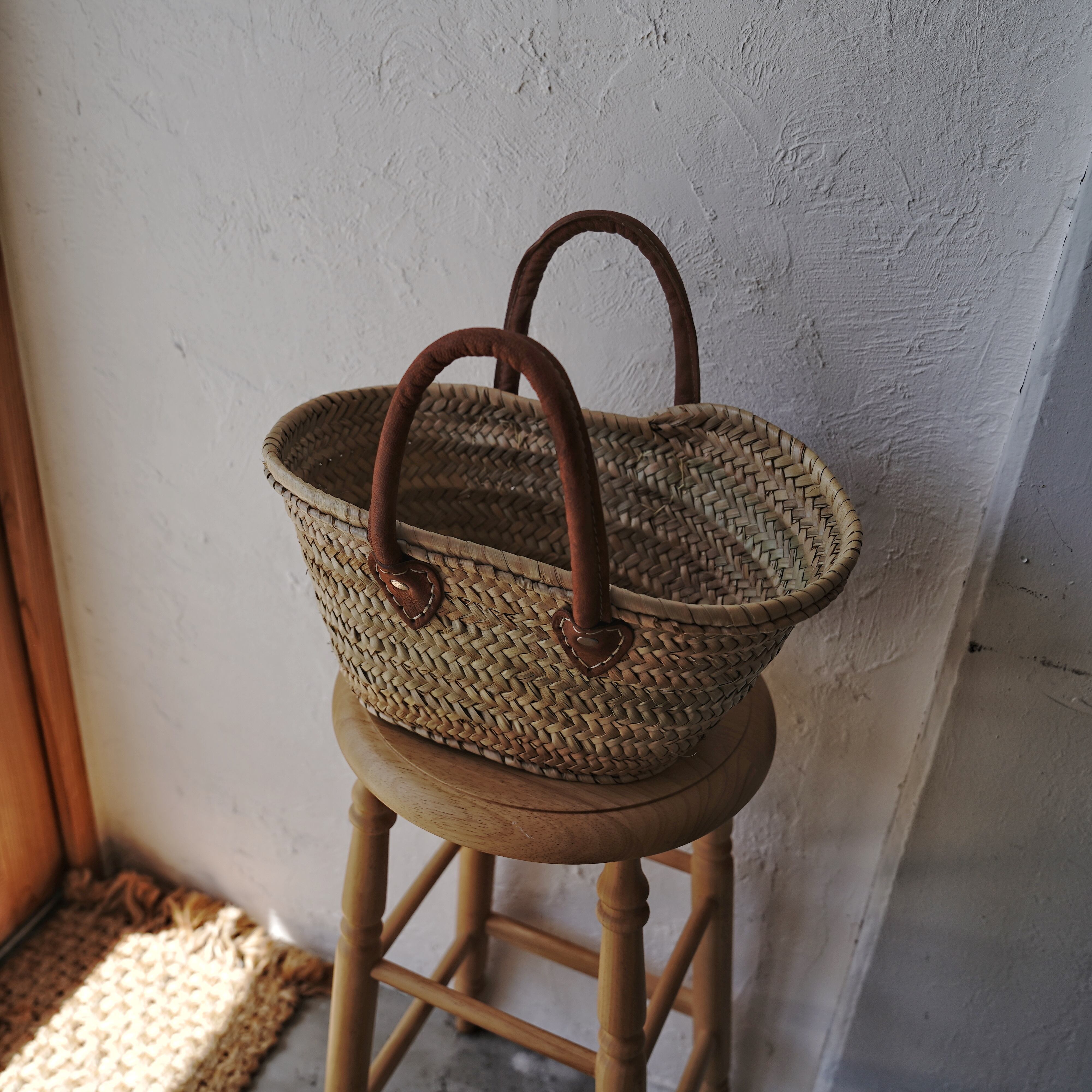 モロッコマルシェバッグは商品の特性上、サイズのちがい、革のちいさな傷やしみ、かご本体の編みおわり部分の段差、素材のいがいが感などは避けられません。商品に関してご不安がある方【いがいがが気になる】【かたちがいびつだ】【傷がある】【かご編みの段差が気になる】などを気になさるお客様はご注文をお控え下さい。