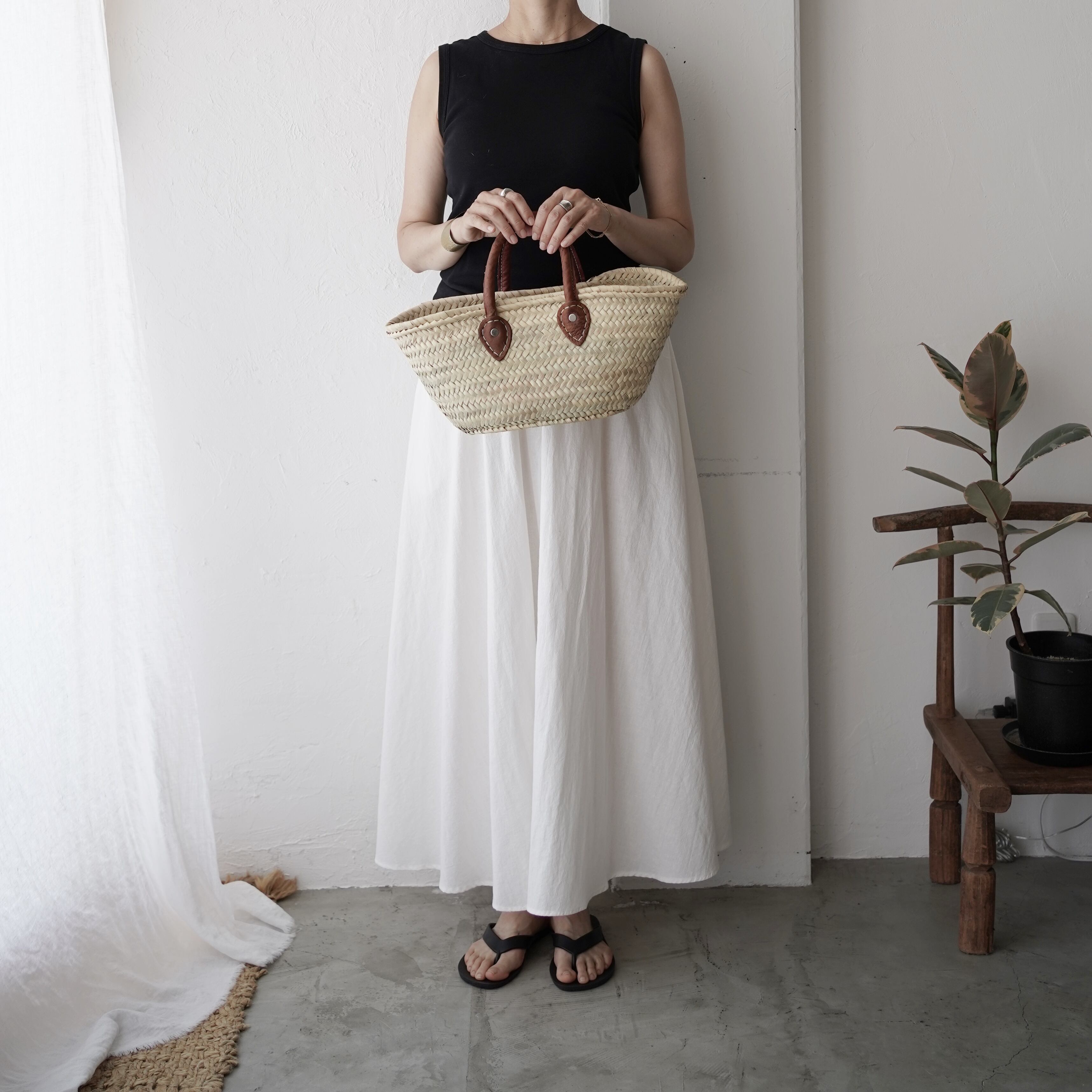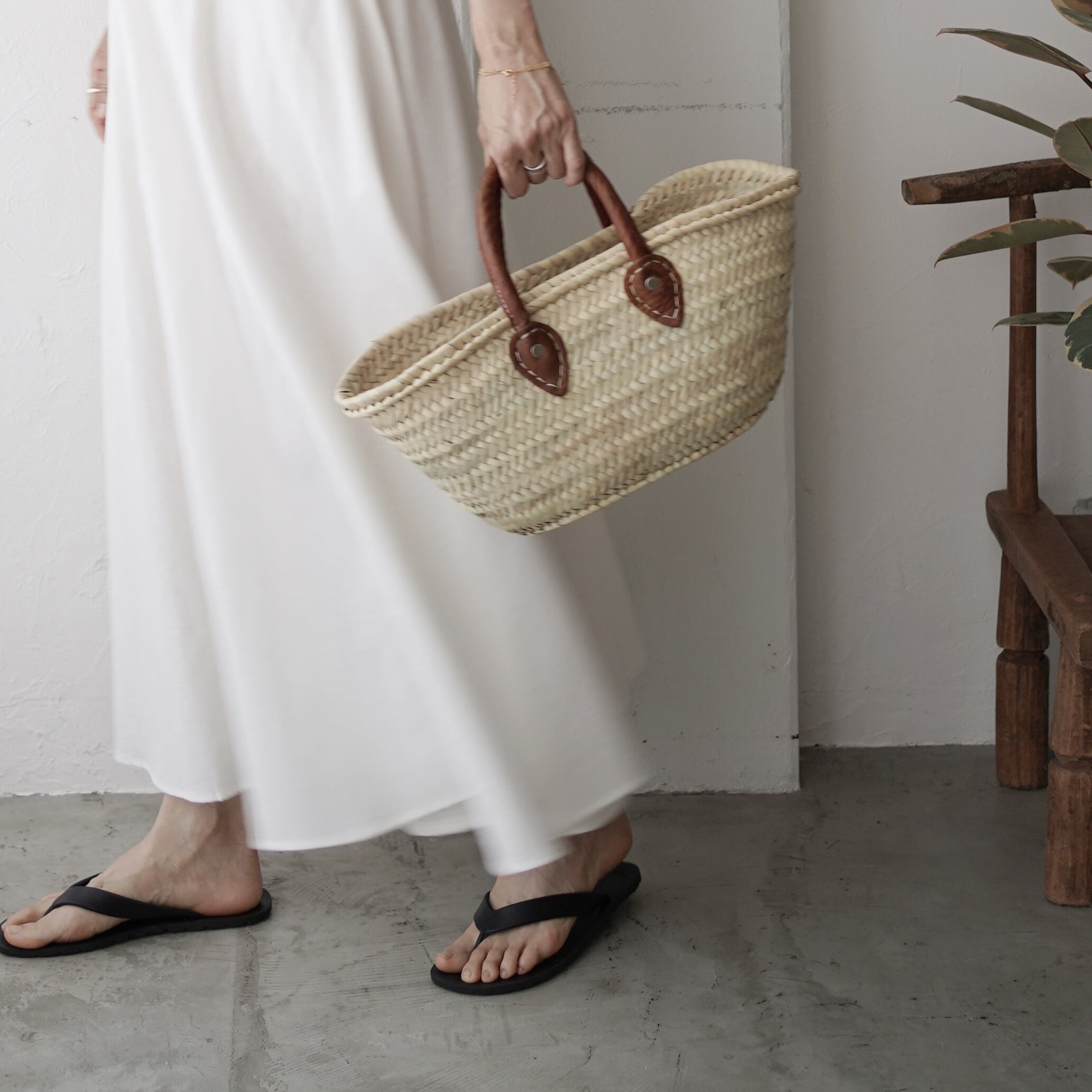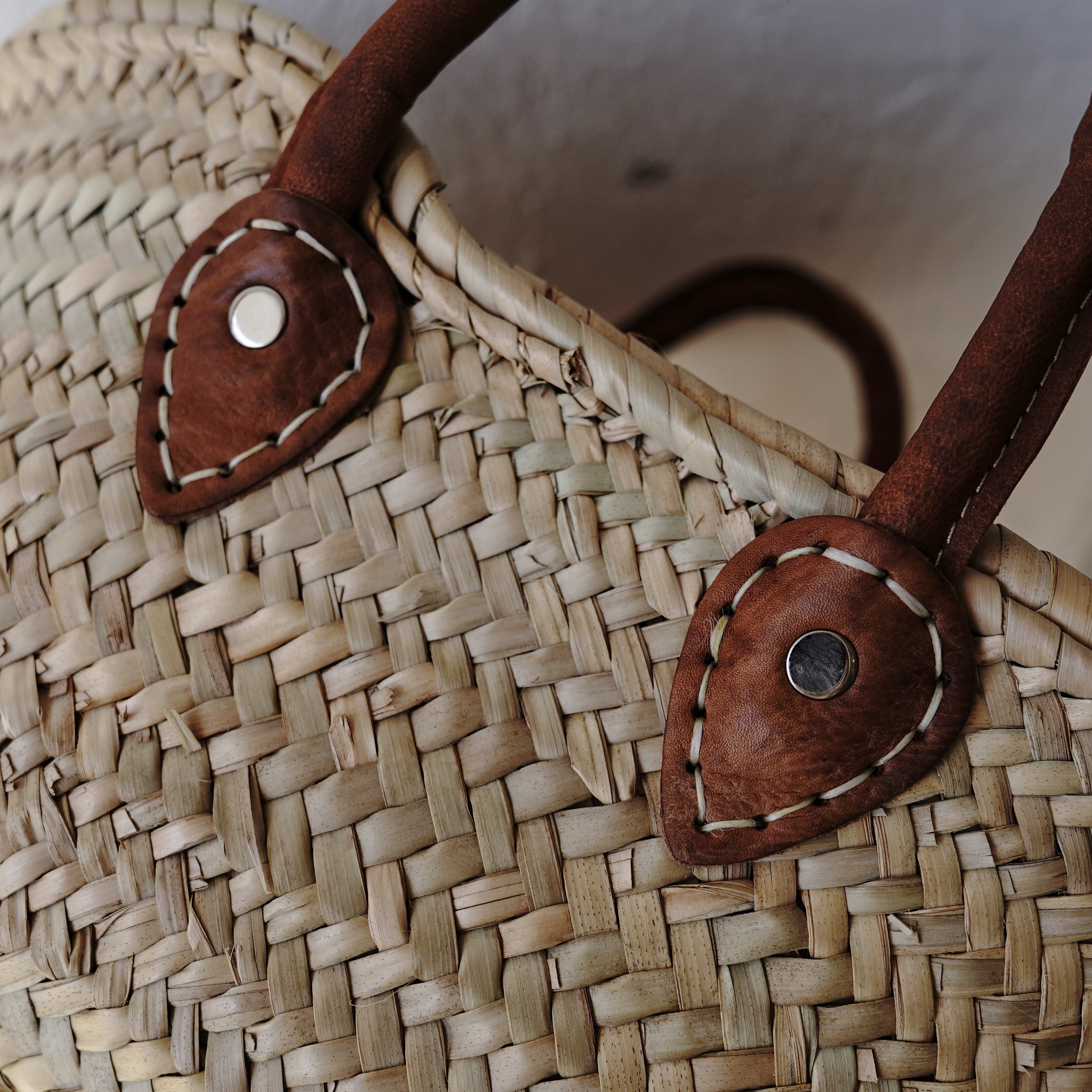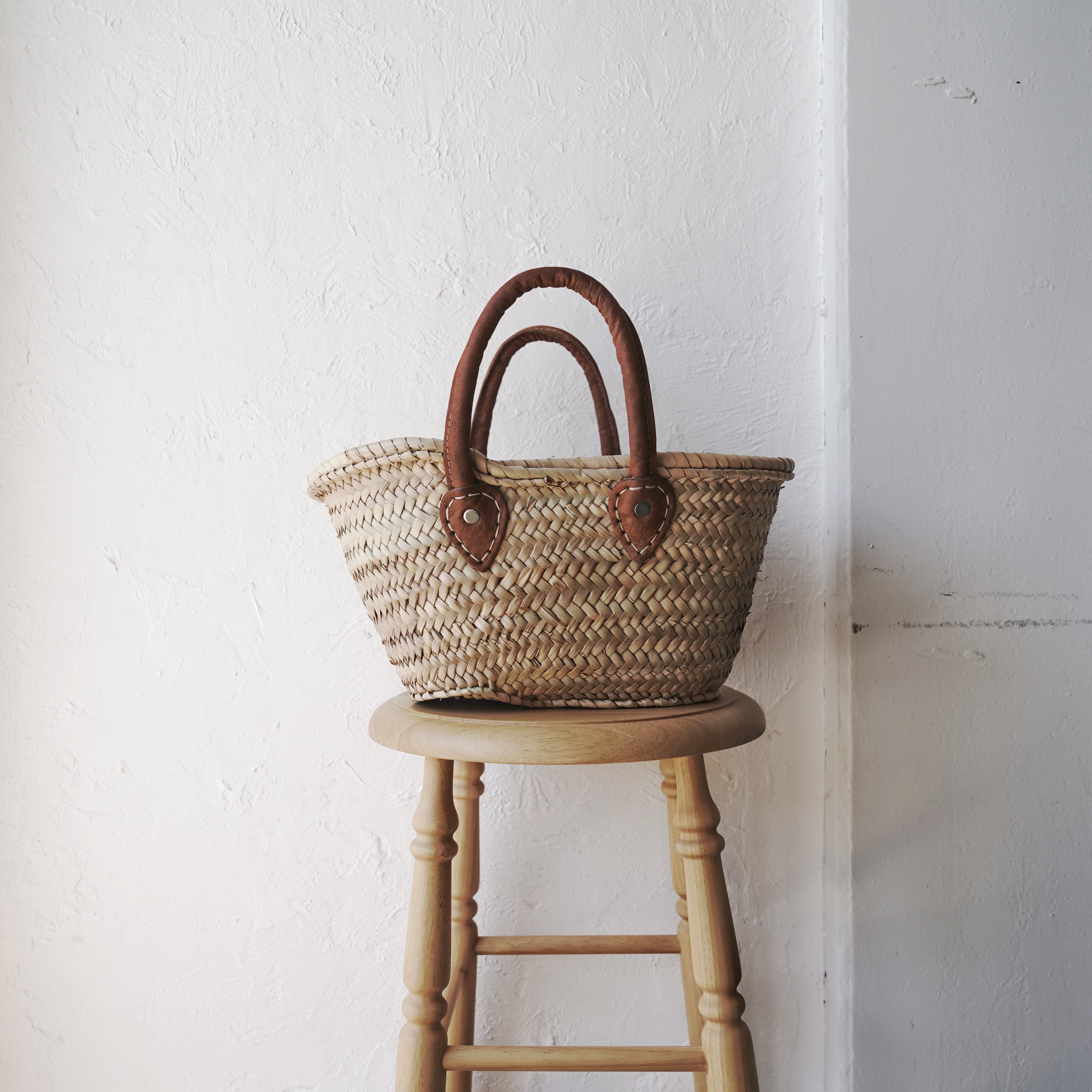 モロッコマルシェバッグは商品の特性上、サイズのちがい、革のちいさな傷やしみ、かご本体の編みおわり部分の段差、素材のいがいが感などは避けられません。商品に関してご不安がある方【いがいがが気になる】【かたちがいびつだ】【傷がある】【かご編みの段差が気になる】などを気になさるお客様はご注文をお控え下さい。