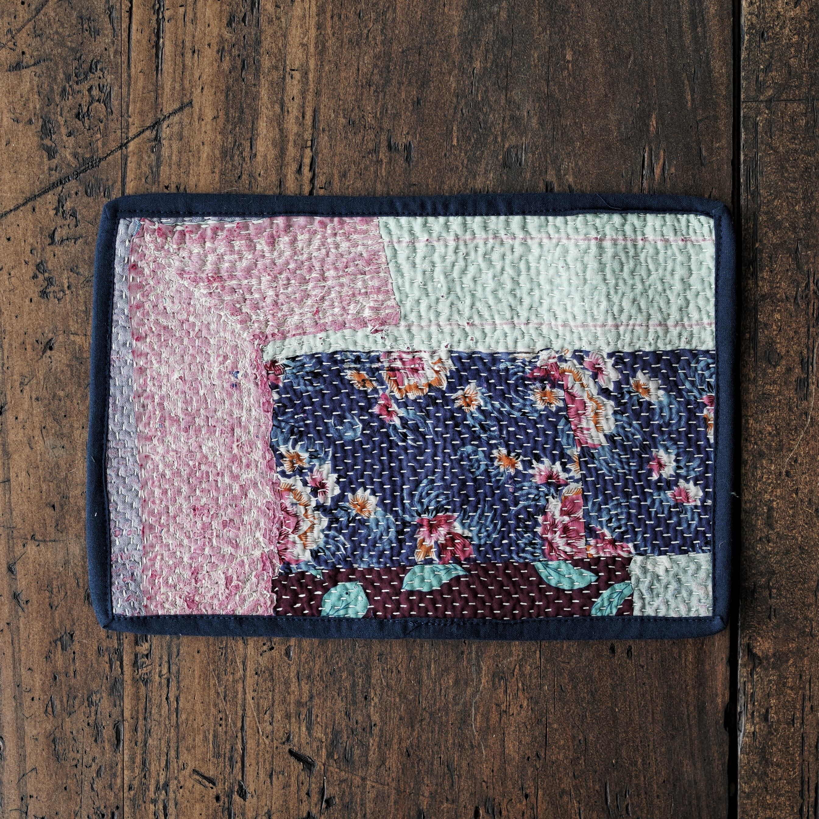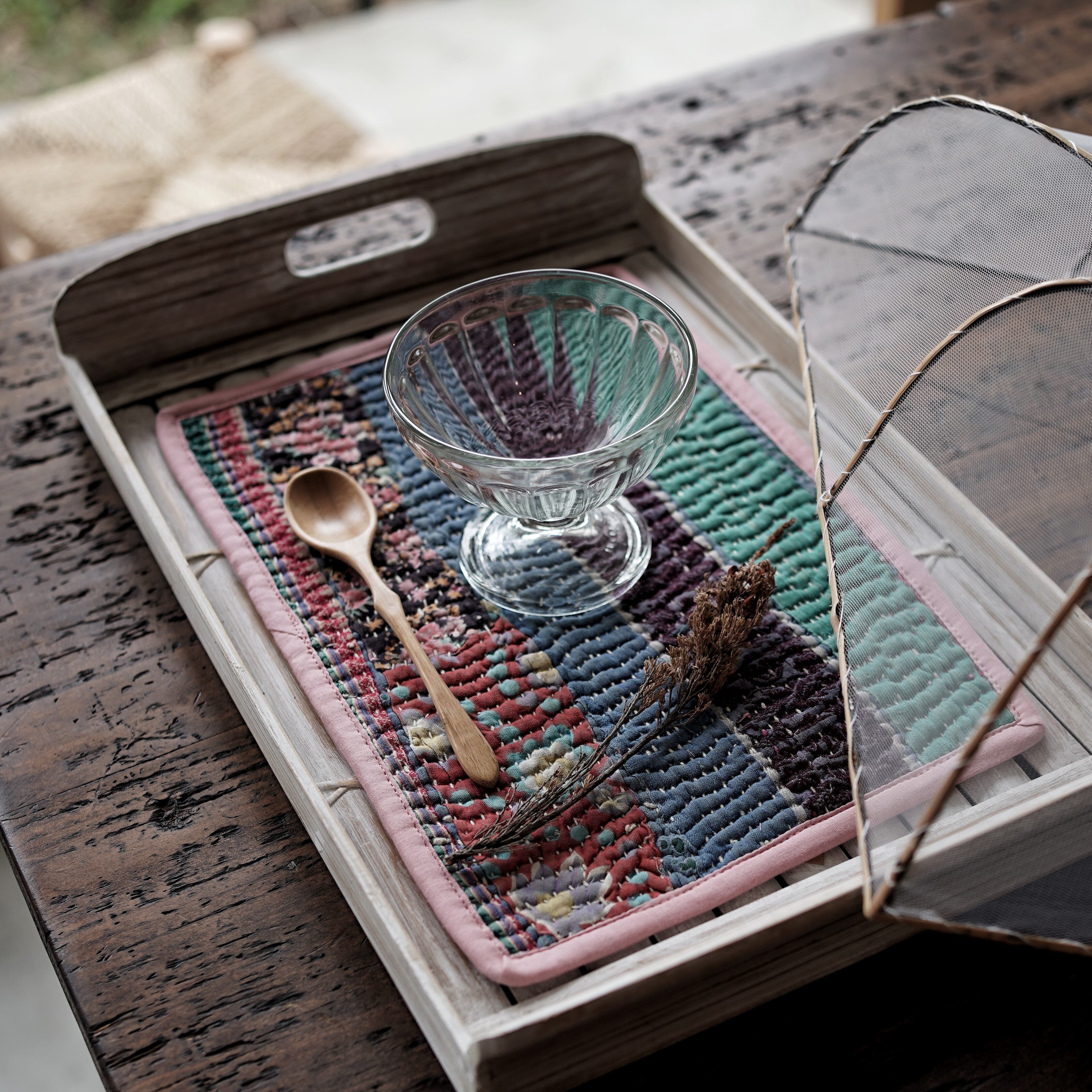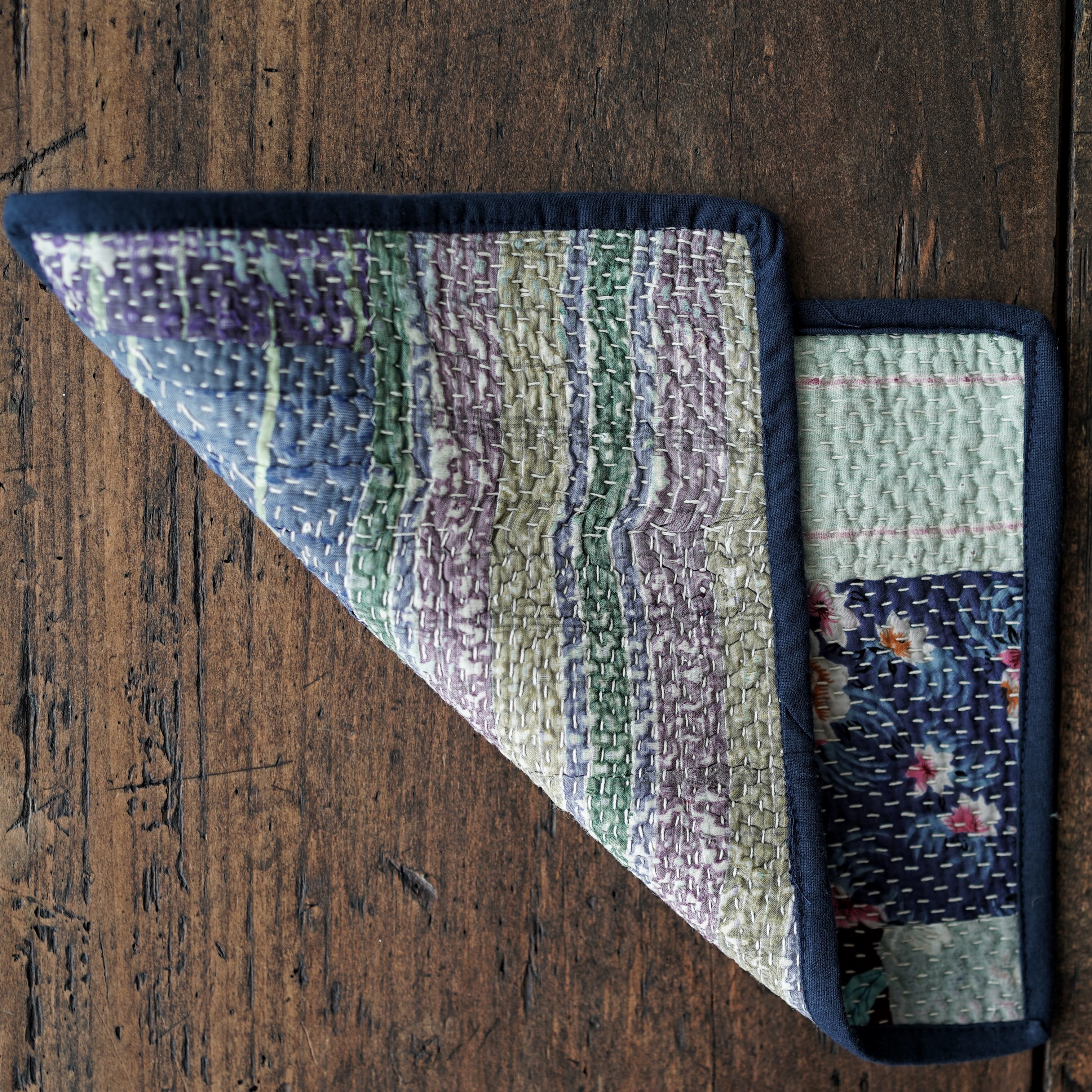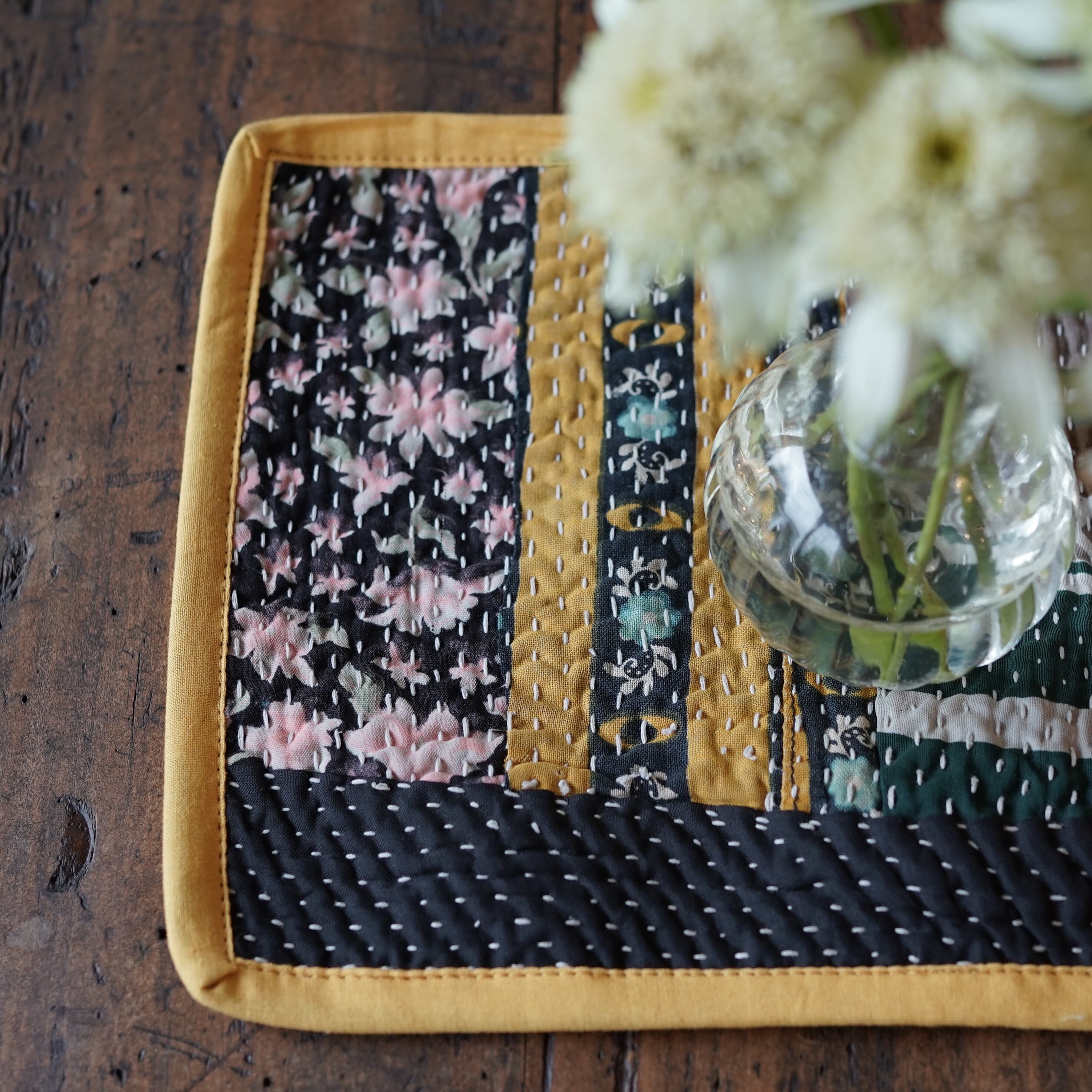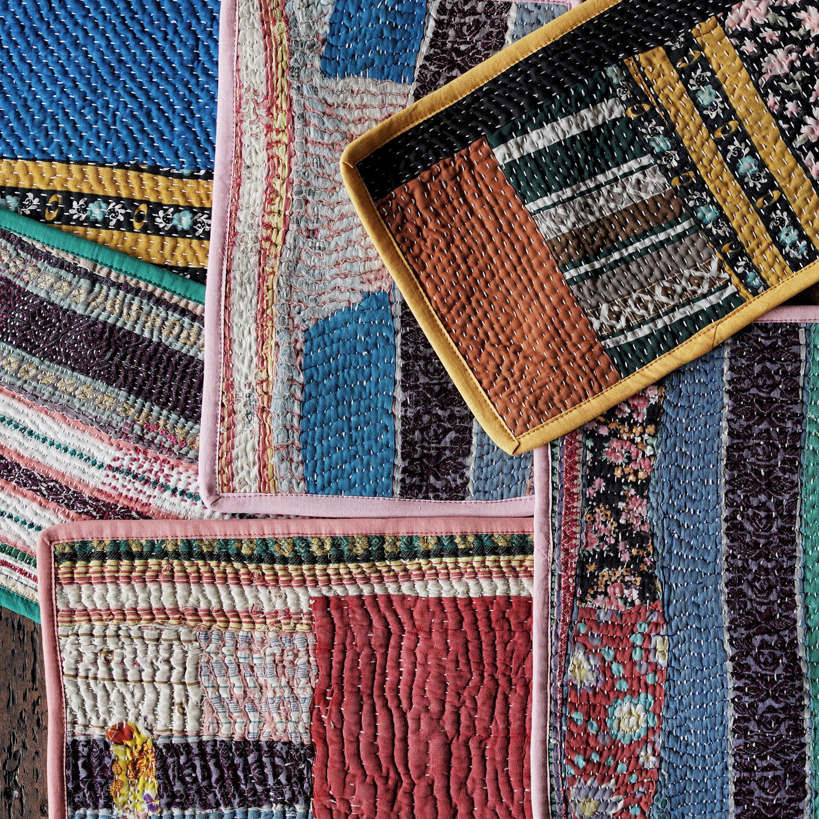 インドの伝統的な刺し子刺繍「グドゥリー」で仕立てられた、手仕事のぬくもりあふれるプレースマット。