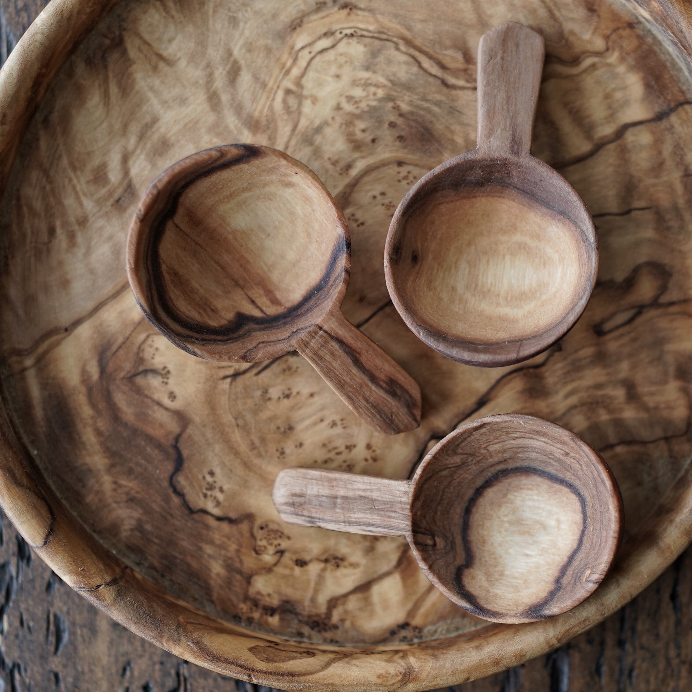 自然なテイストが魅力のオリーブの木の食器。
