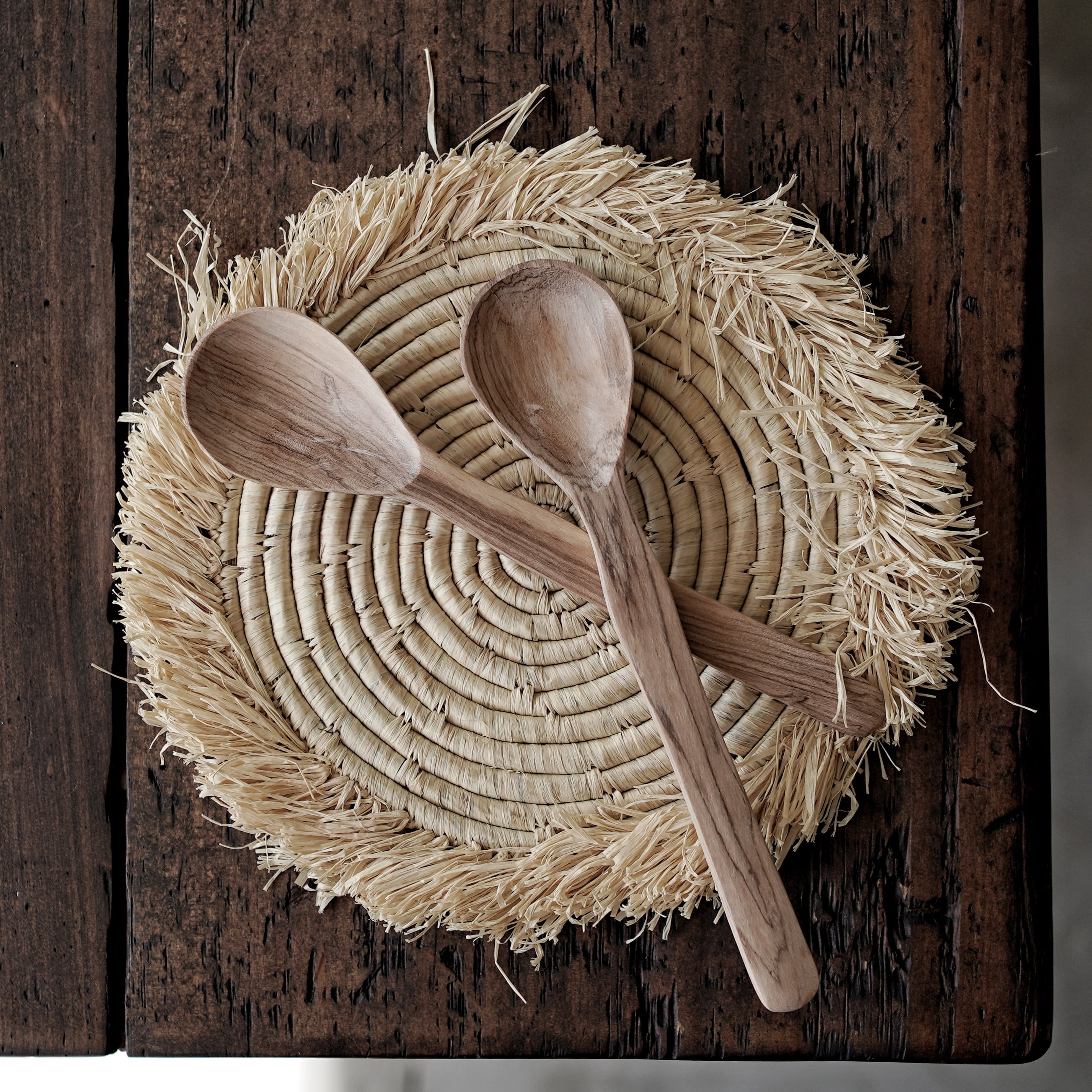 素材は、耐久性と美しい木目が特徴のオリーブの木。硬く丈夫でありながら、手に馴染むしっとりとした質感が魅力です。