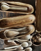 ひとつひとつ手作業で仕上げているため、形や木目、色合いはすべて異なり、世界にひとつだけの表情を楽しめます。日々の料理が少し特別に感じられる、温もりある道具です。
