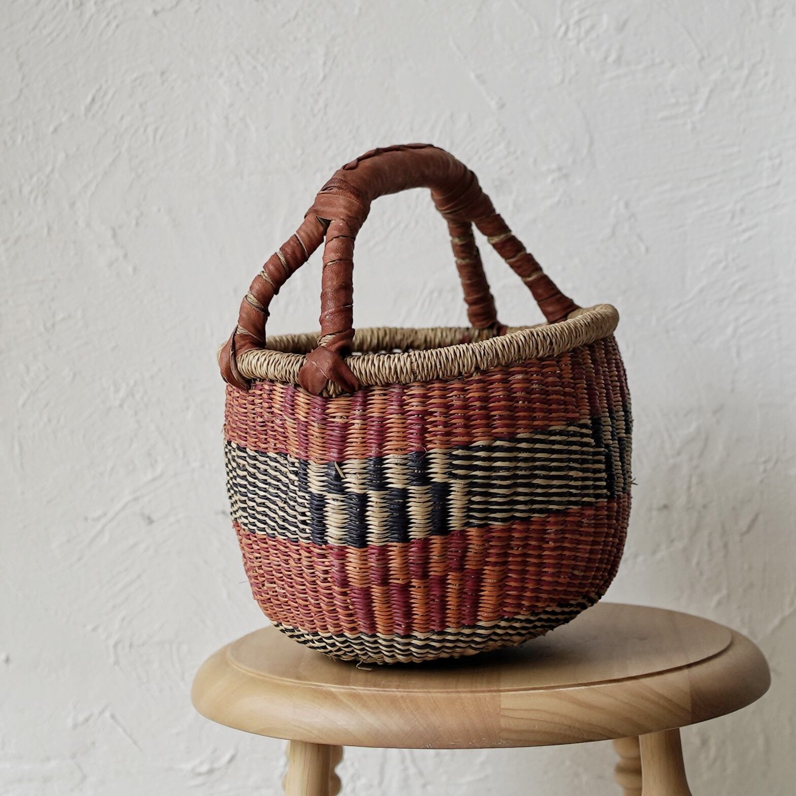 西アフリカ・ガーナの職人たちが、天然の水草「エレファントグラス」を用いてひとつひとつ丁寧に編み上げたバスケット。