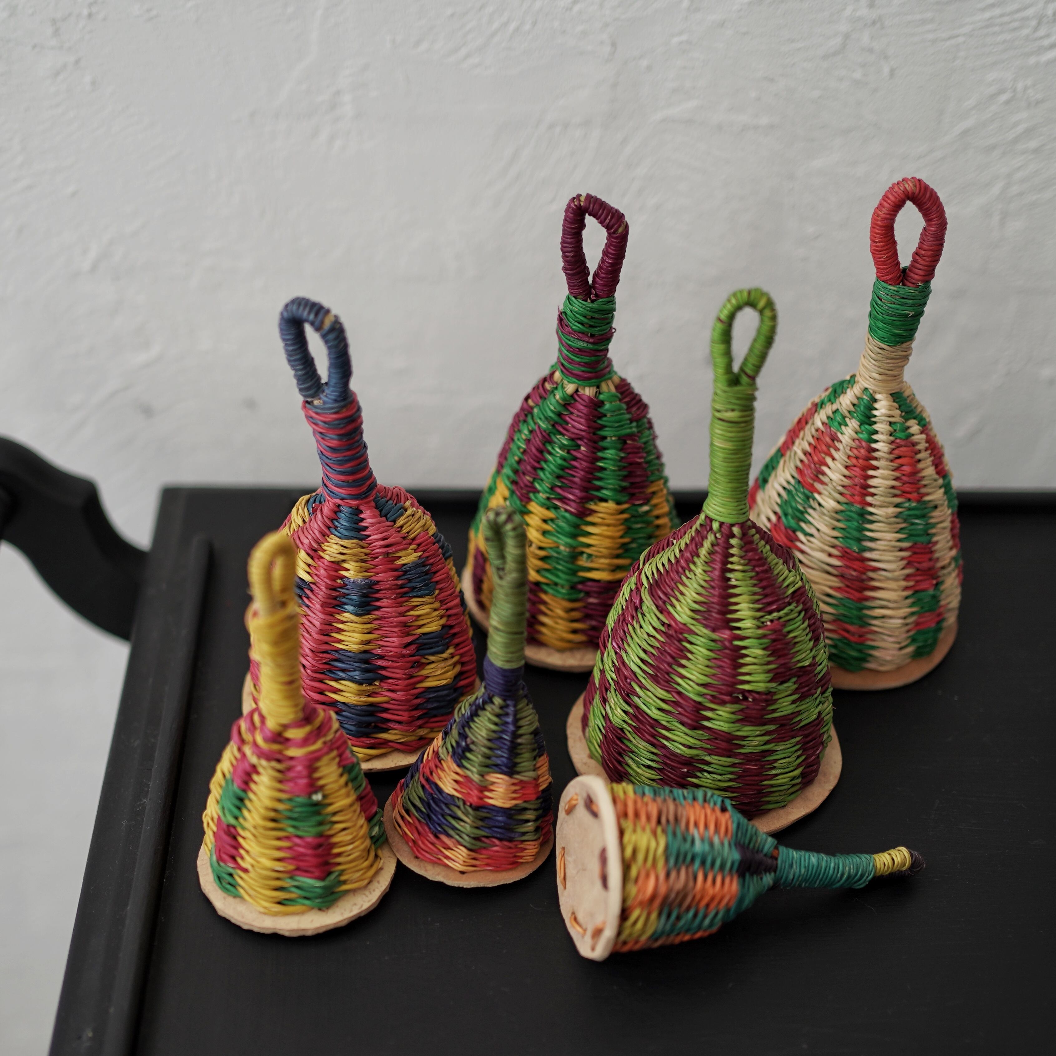 ひとつひとつ手編みでつくられており、模様や形には個性があります。インテリアとして飾っても雰囲気のある一品。小さなお子様との音遊びにもおすすめです。