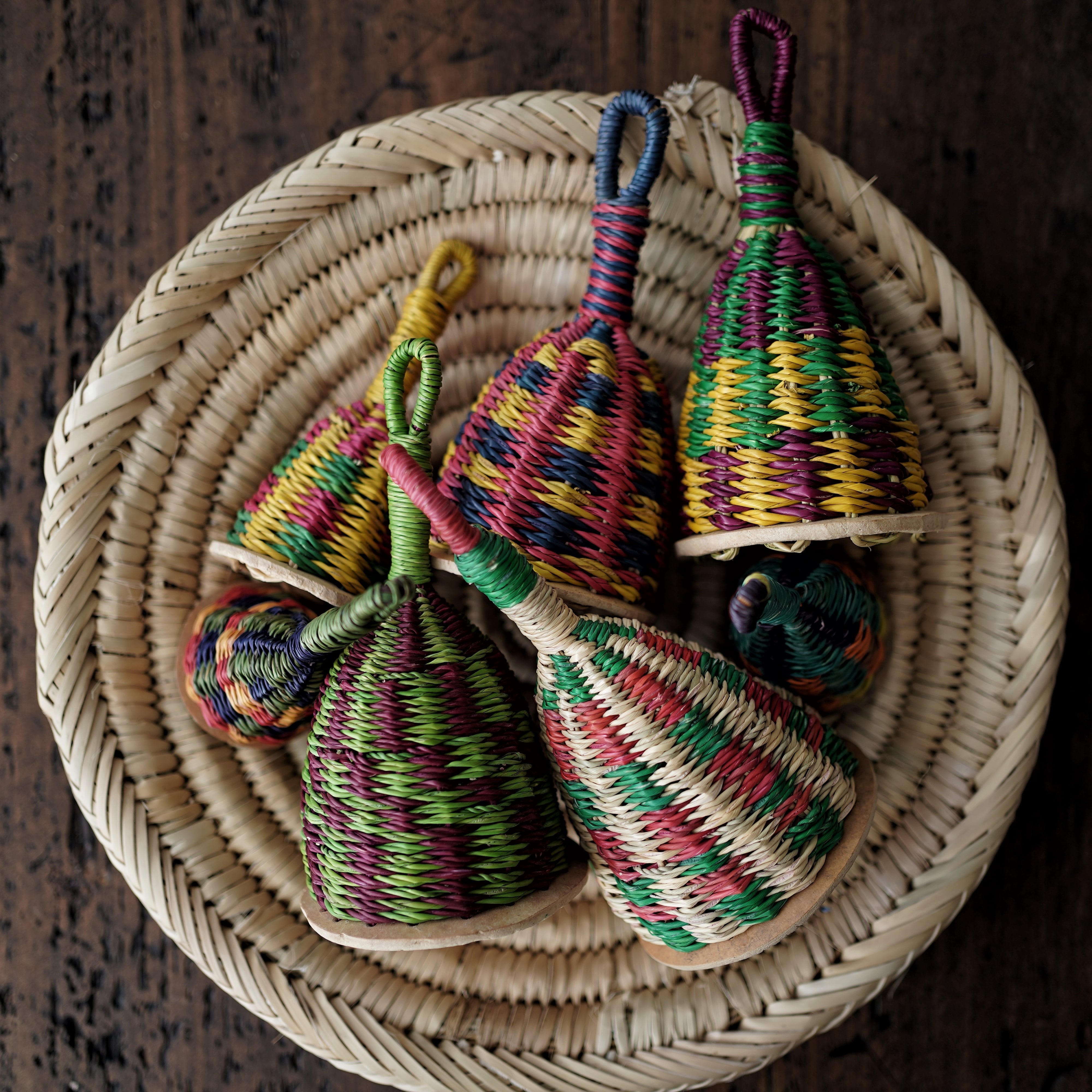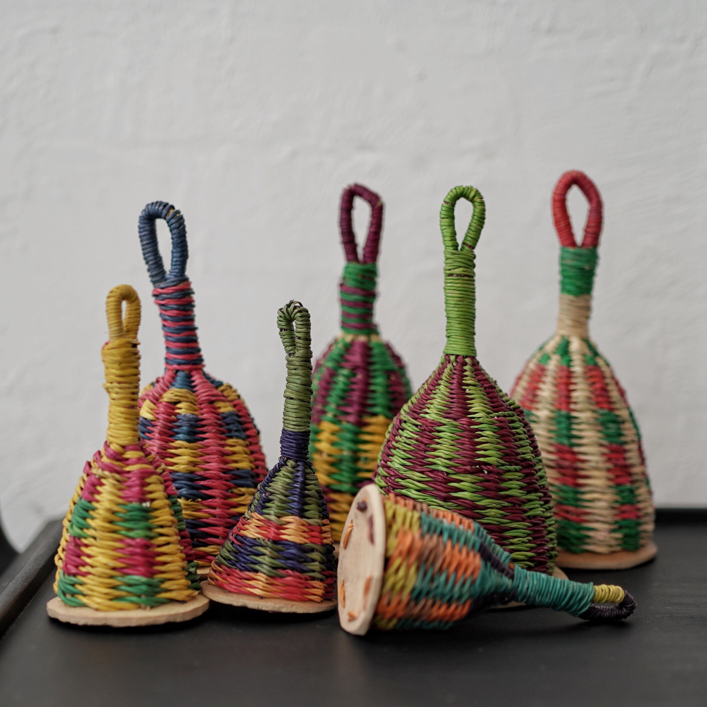 ひとつひとつ手編みでつくられており、模様や形には個性があります。インテリアとして飾っても雰囲気のある一品。小さなお子様との音遊びにもおすすめです。