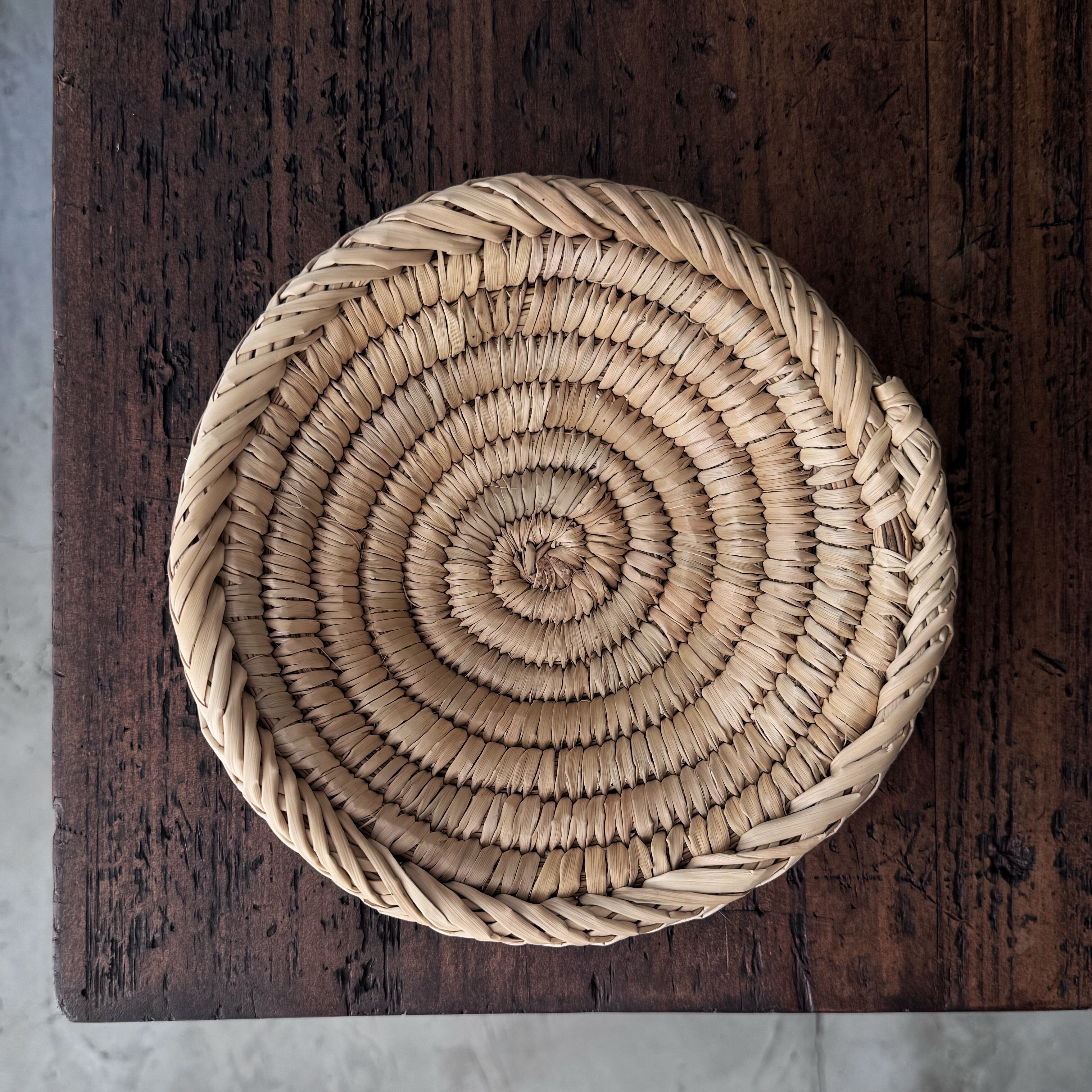 水草でしっかり編み込まれた重厚感のあるバスケット。