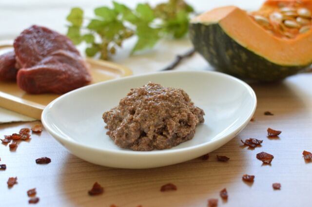 牛(筋肉,内臓)*,かぼちゃ*,アマランサス*,亜麻仁油*,ローズヒップ*,卵殻パウダー*,緑イ貝パウダー,海藻