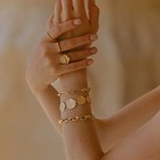 ひとつだけでミニマルに纏っても、他のゴールドブレスレットやシルバーアクセサリーと重ね付けしても、バランスよく手元を引き立てます。カジュアルからフォーマルまで幅広いコーディネートに対応する万能アイテムです。