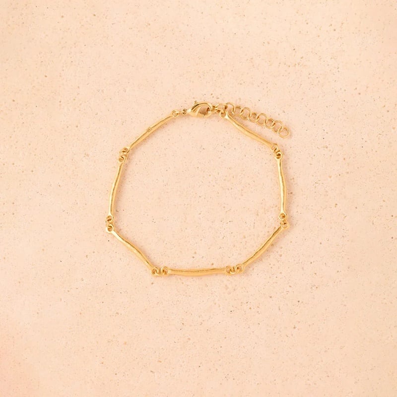 しなやかな動きと都会的な凛々しさが融合した「Enea Bracelet(エネア ブレスレット)」。細身で可動するバー型リンクが連なるアーティキュレートチェーンは、繊細ながら存在感のあるデザイン。ひとつひとつ不規則に形づくられたハンマード加工のバーが、光を受けて軽やかに揺れ、エレガントに手元を彩ります。