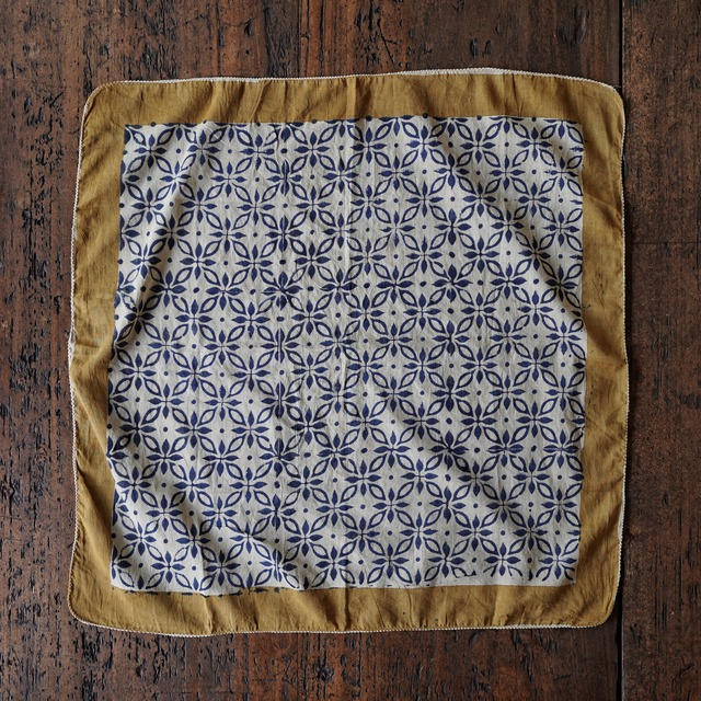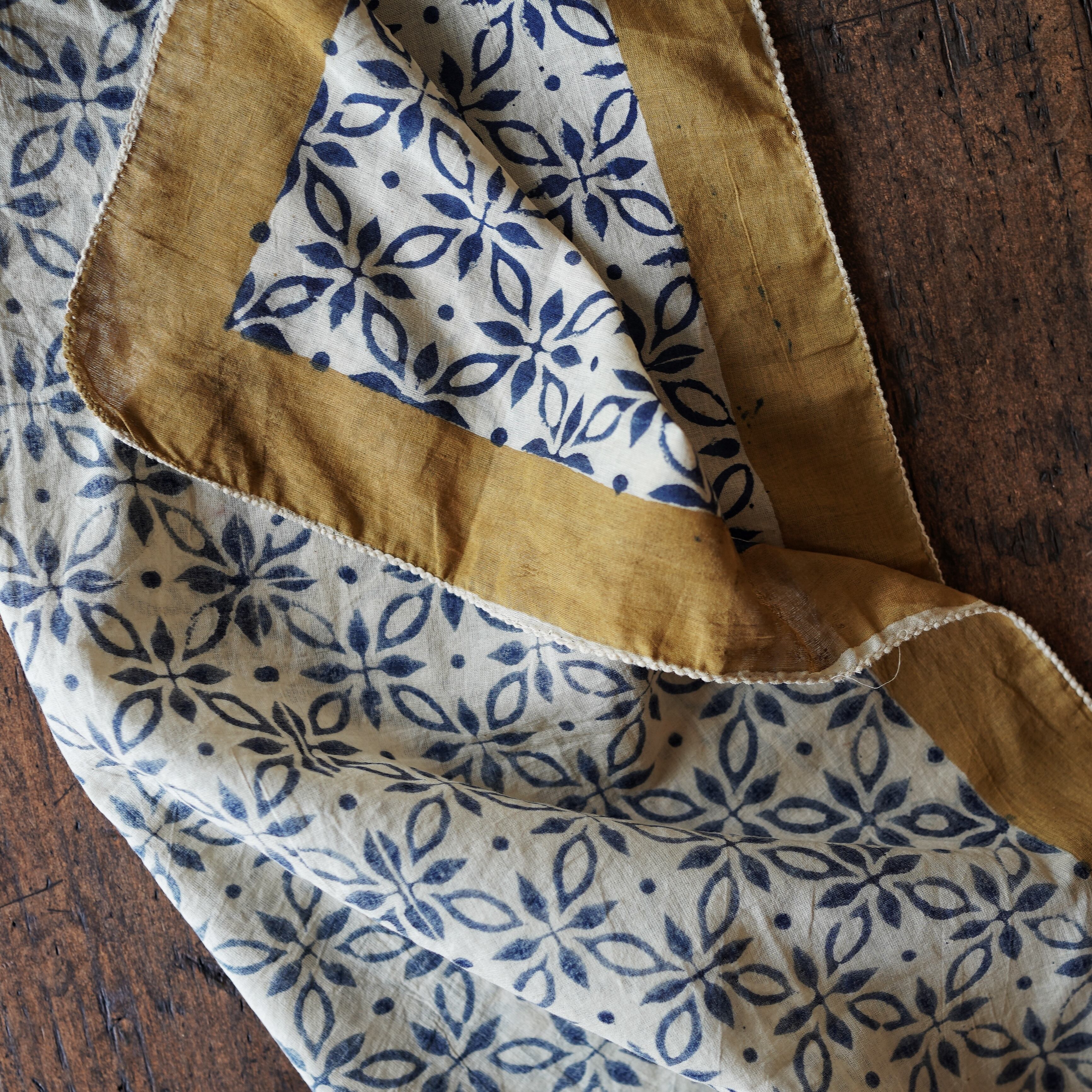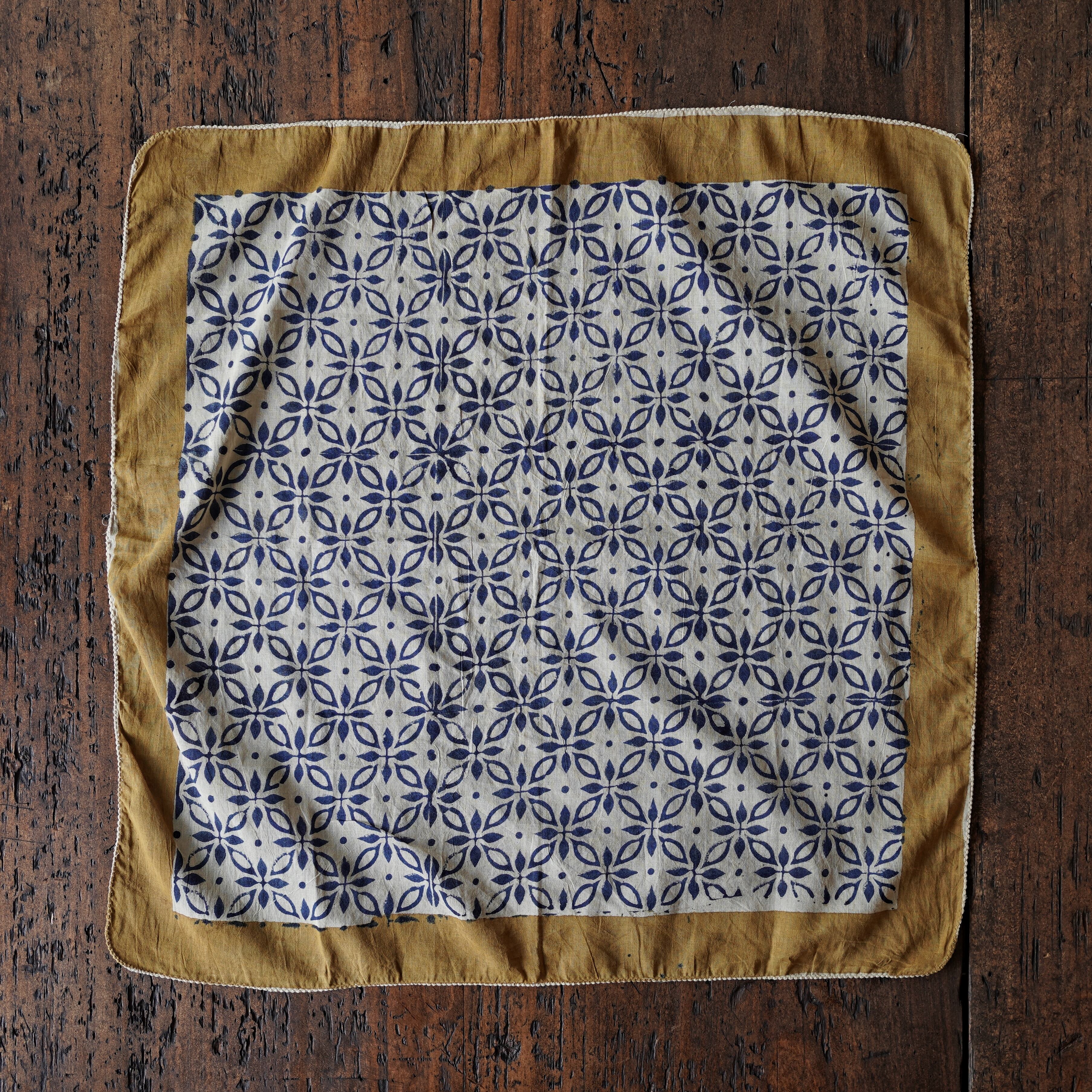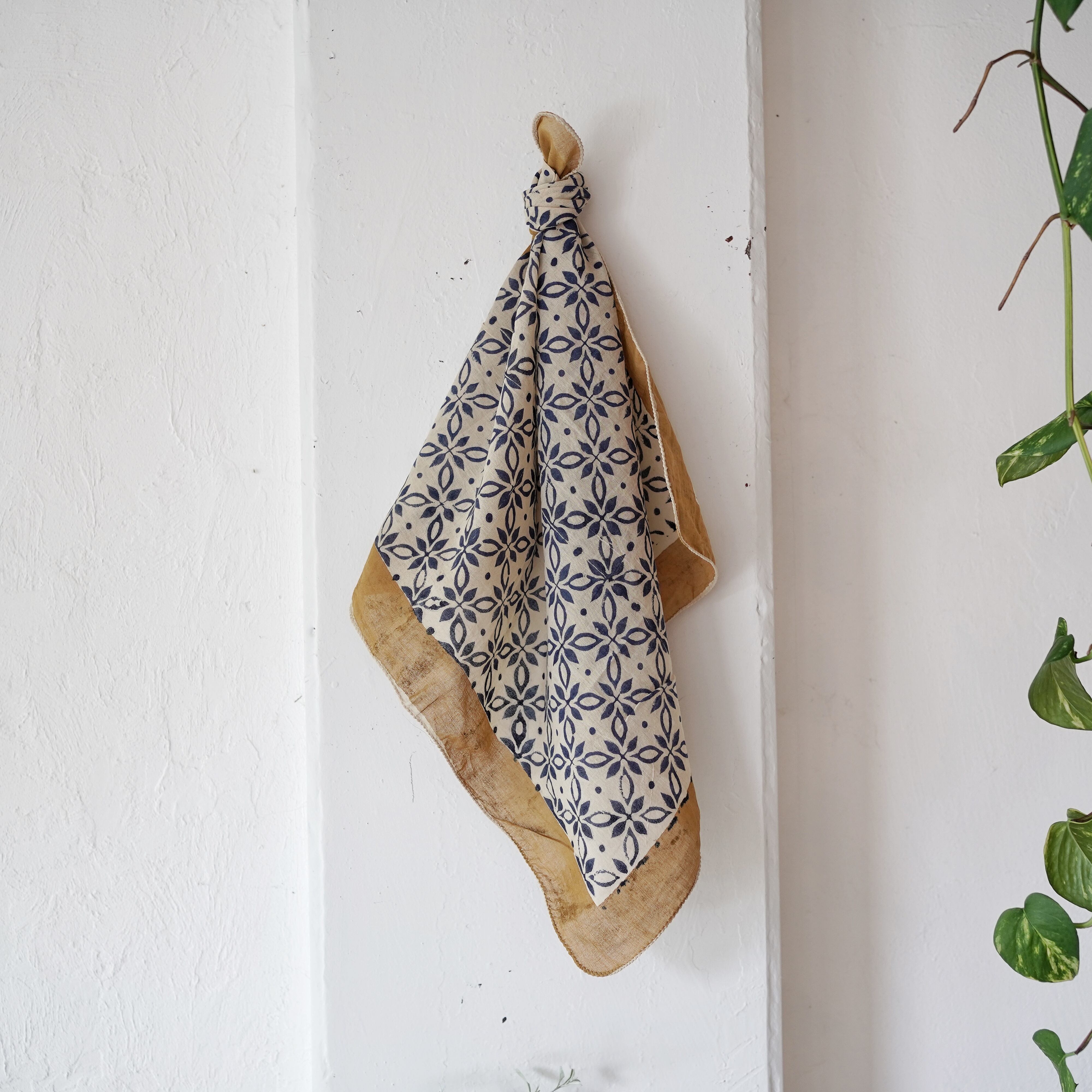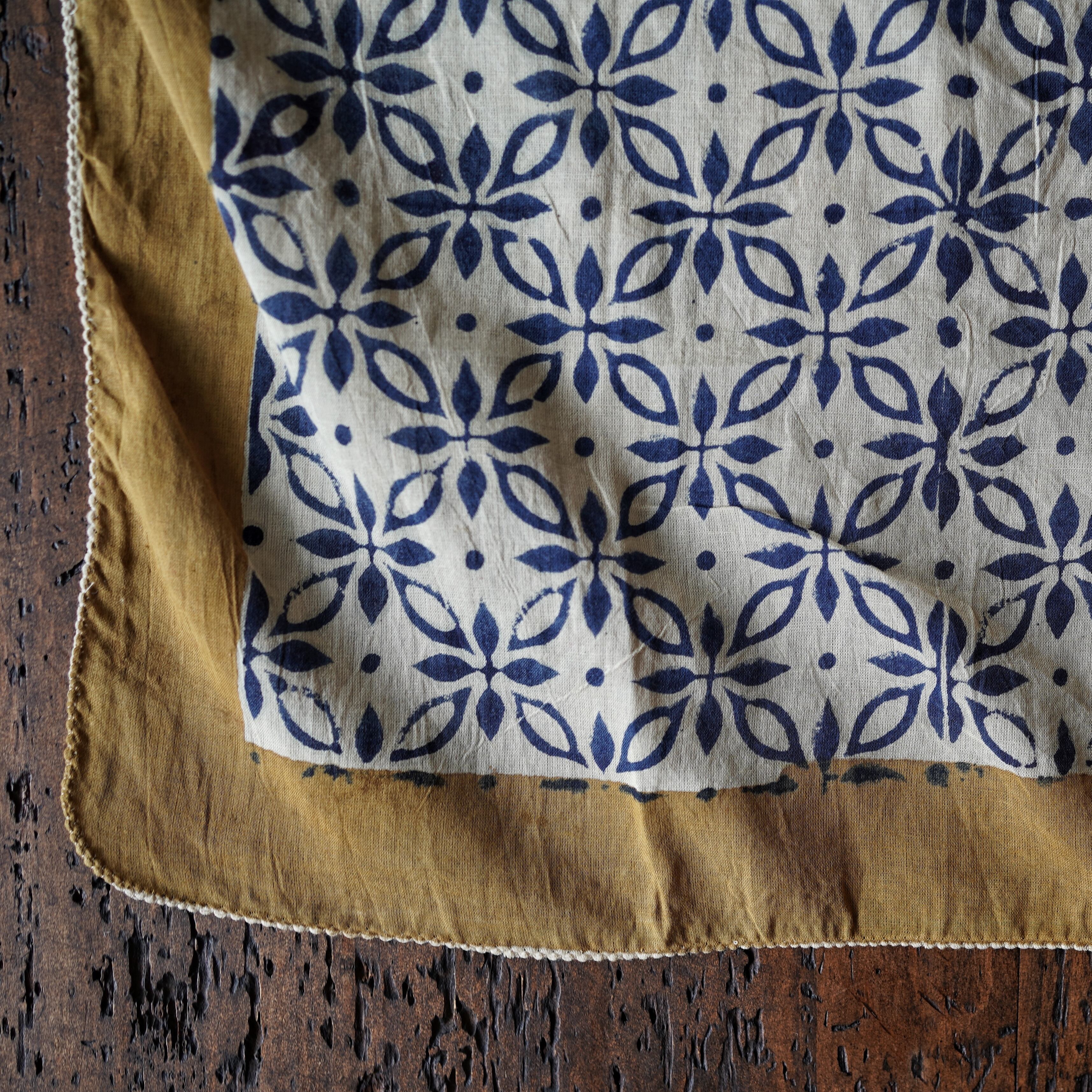 インドの職人によって、一枚一枚ていねいに木版で染め上げられたコットンバンダナ。