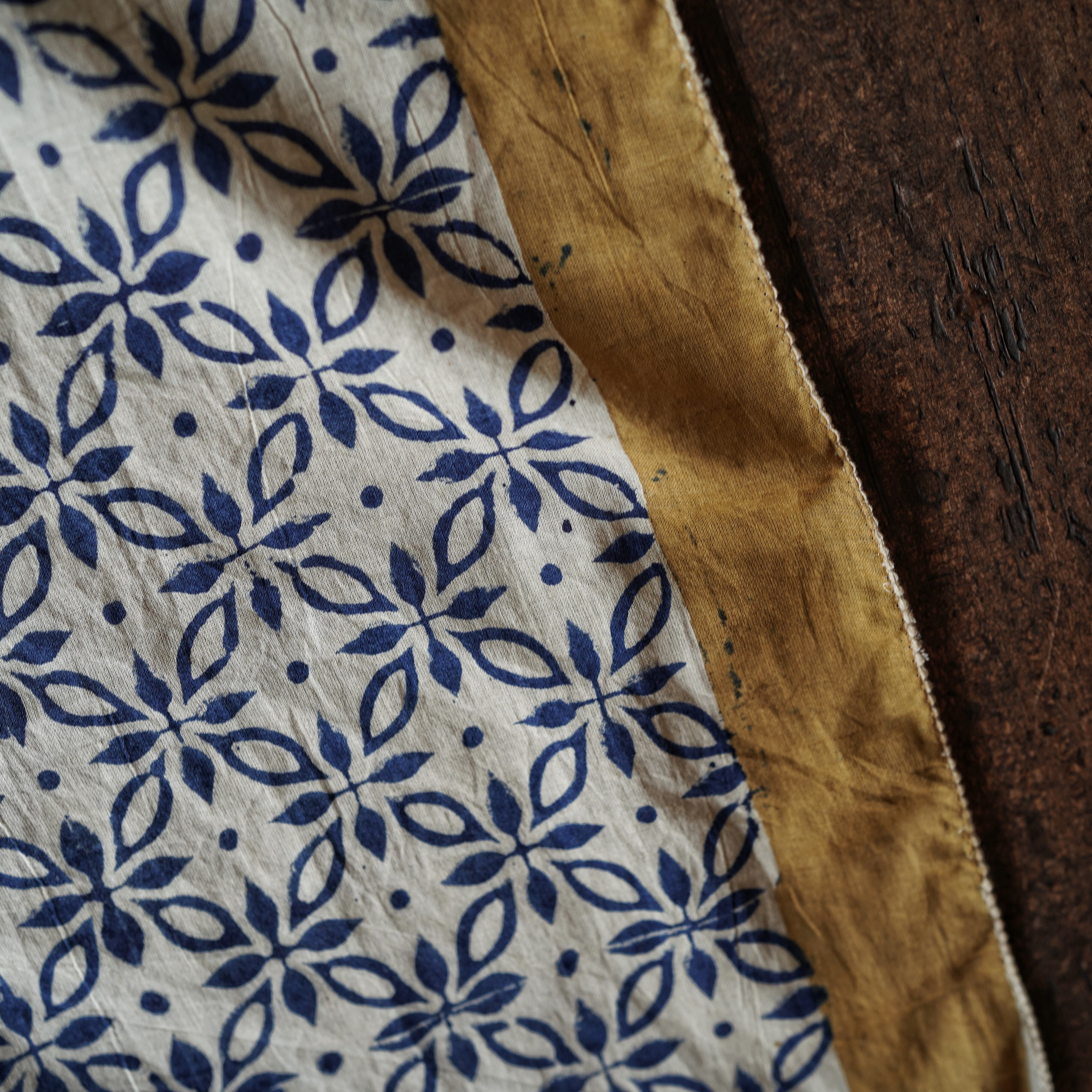 植物由来のやさしい染料と伝統的なブロックプリント技法から生まれる模様は、どれも世界にひとつだけの表情を持っています。