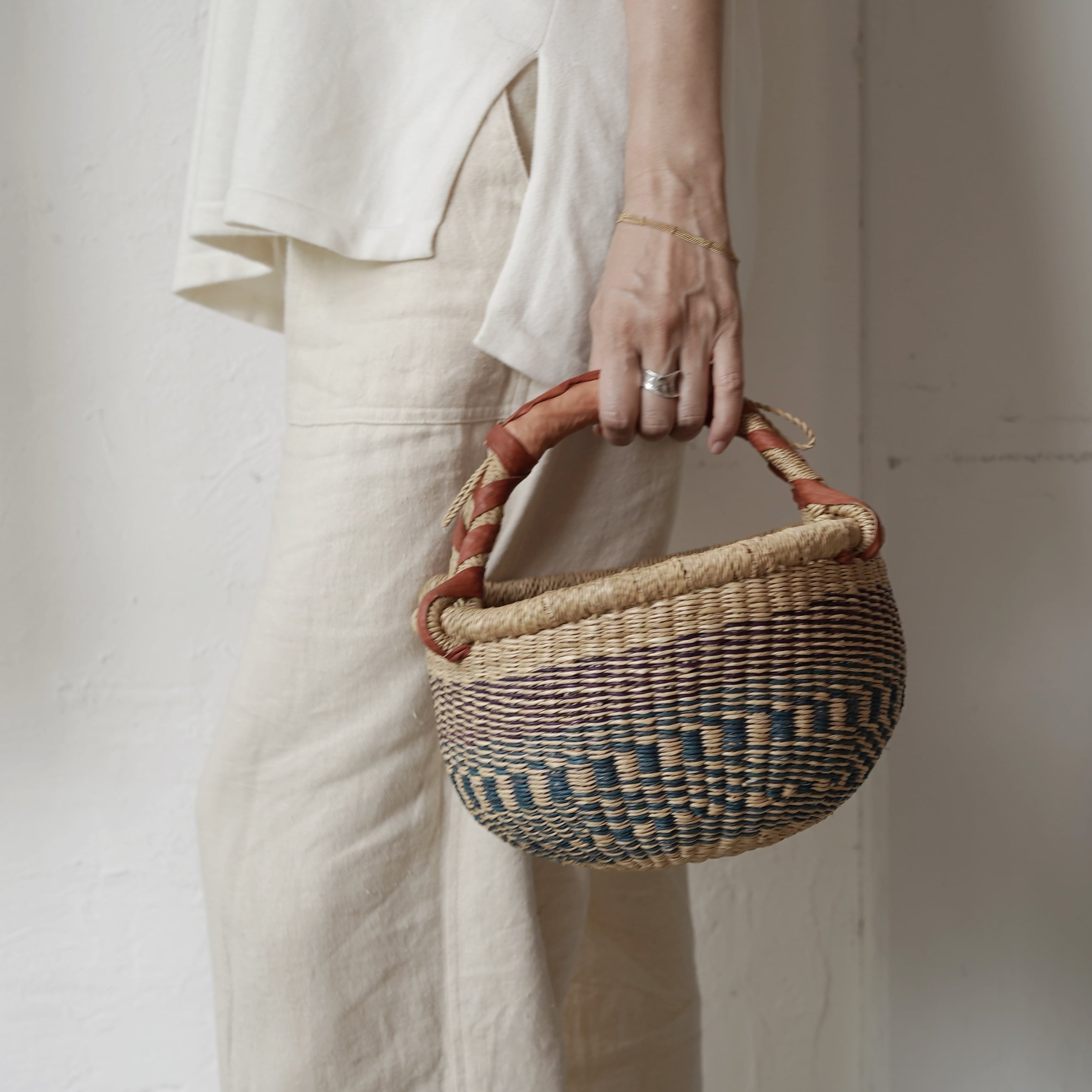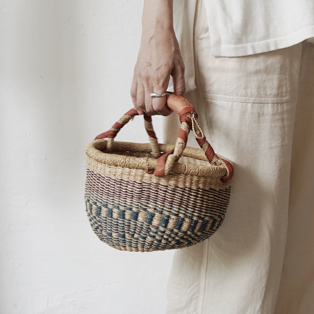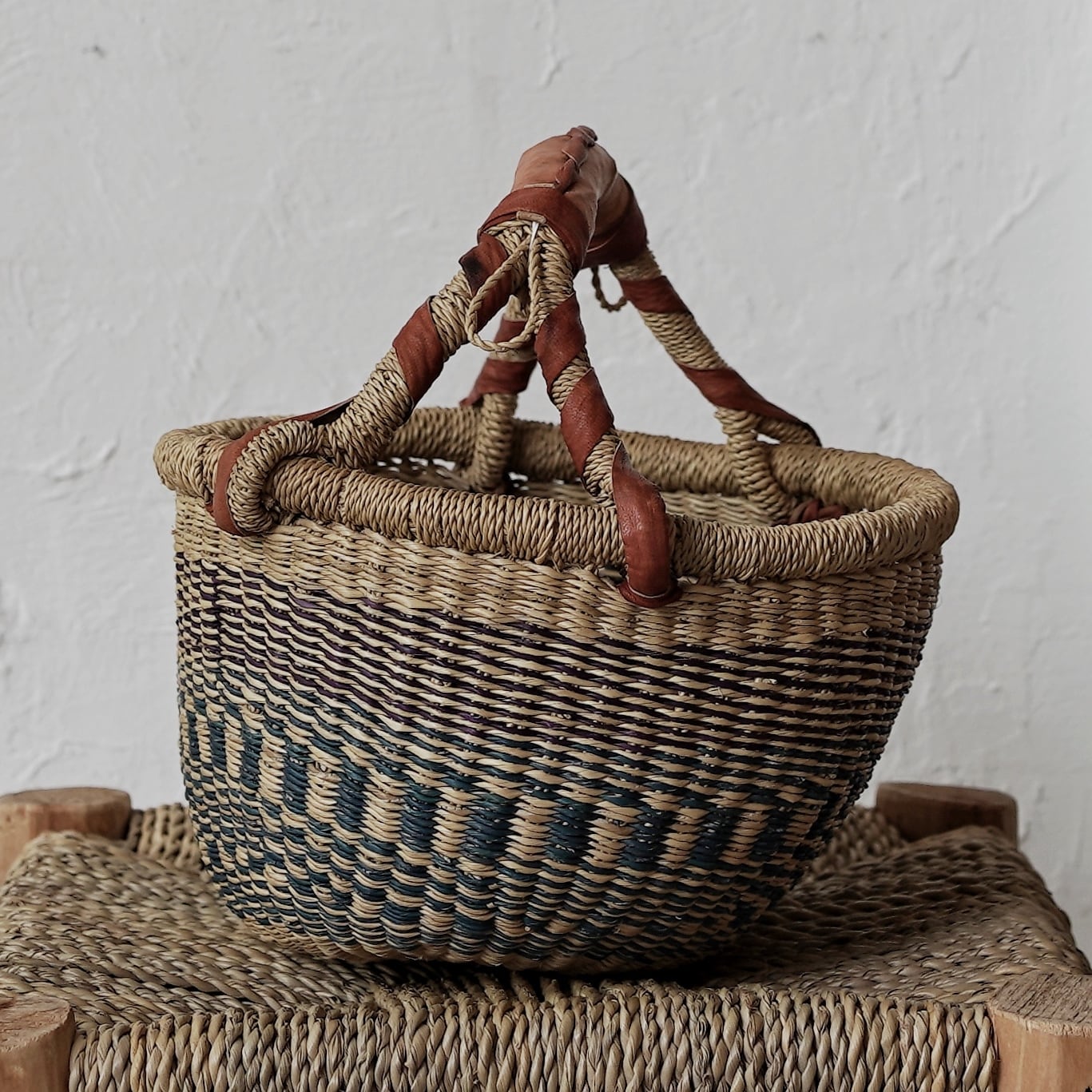 西アフリカ・ブルキナファソの職人たちが、天然の水草「エレファントグラス」を用いてひとつひとつ丁寧に編み上げたバスケット。