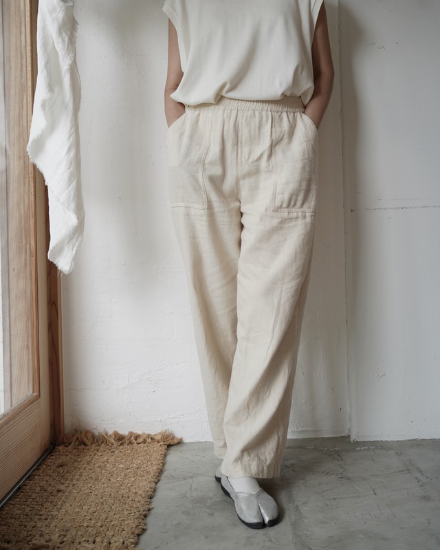 原糸は山西省の有機大麻、インド産有機綿を使用しています。(Hemp55%/Organic Cotton45%)