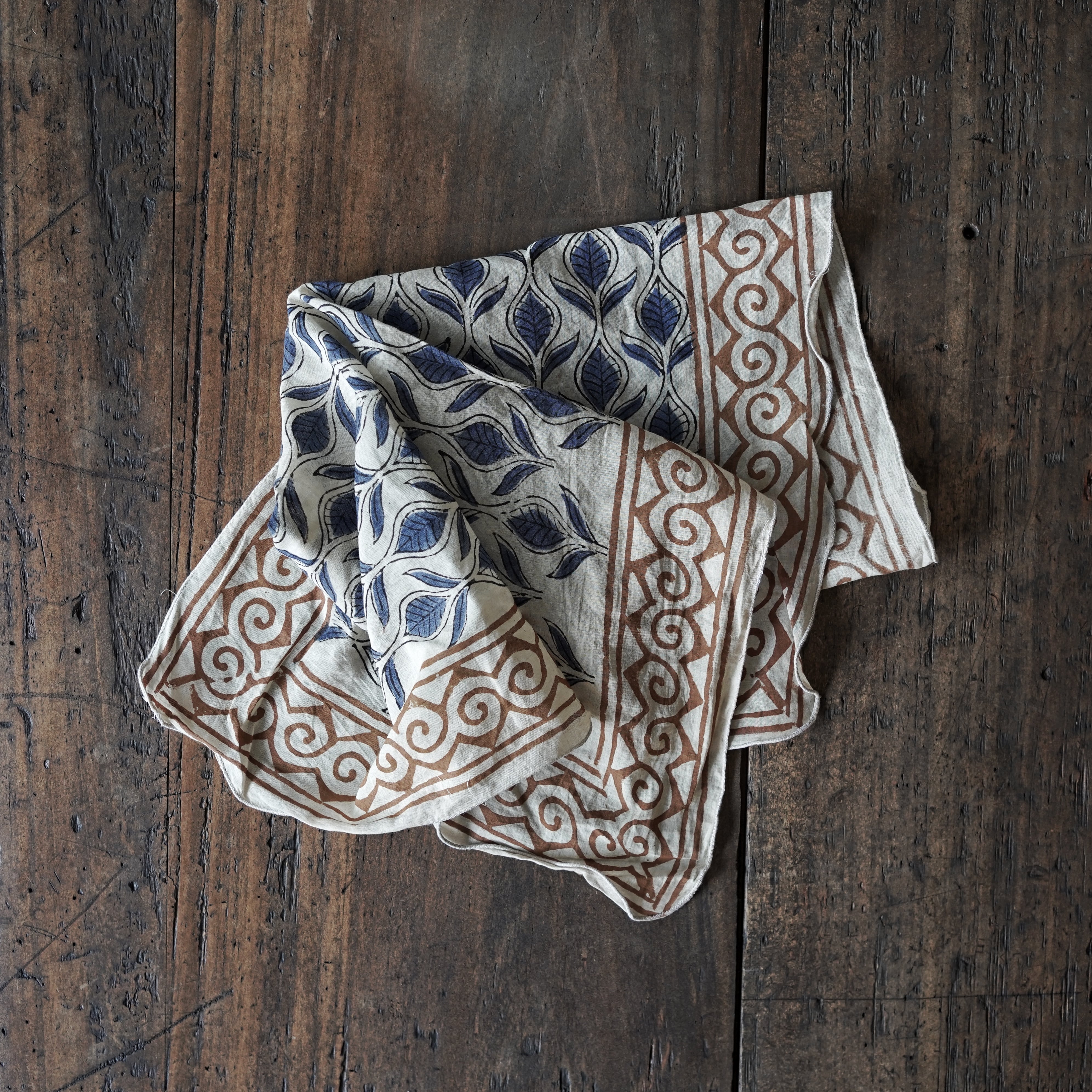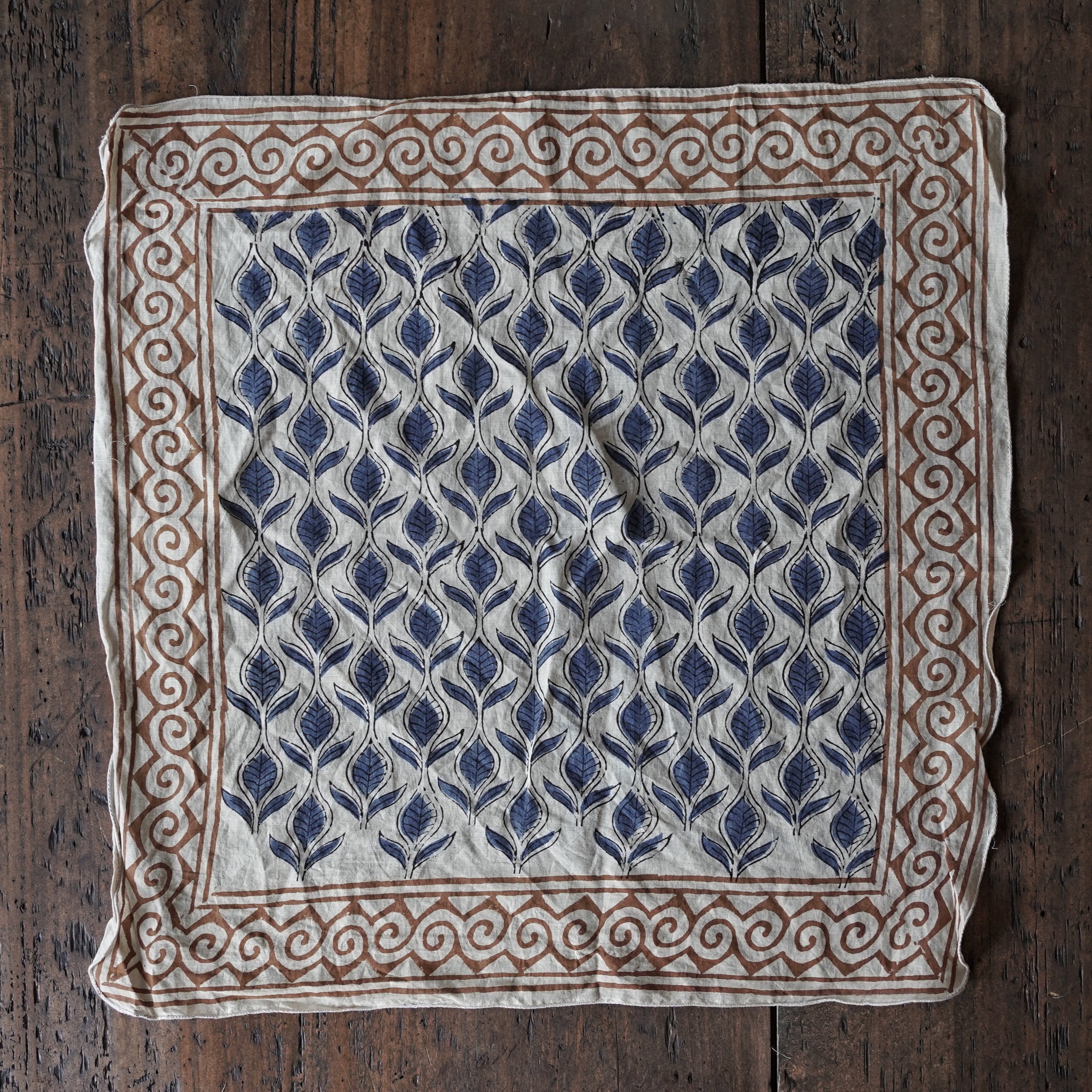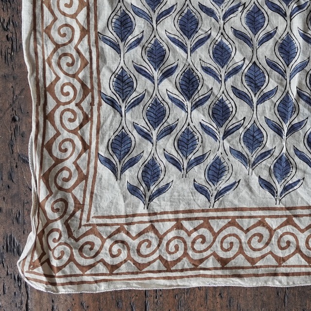 インドの職人によって、一枚一枚ていねいに木版で染め上げられたコットンバンダナ。