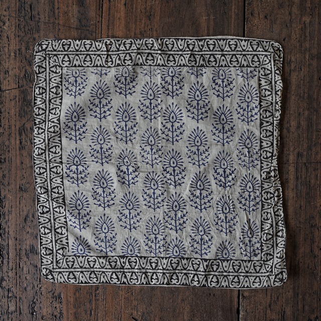 インドの職人によって、一枚一枚ていねいに木版で染め上げられたコットンバンダナ。