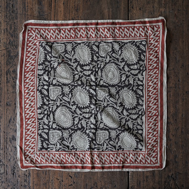 インドの職人によって、一枚一枚ていねいに木版で染め上げられたコットンバンダナ。