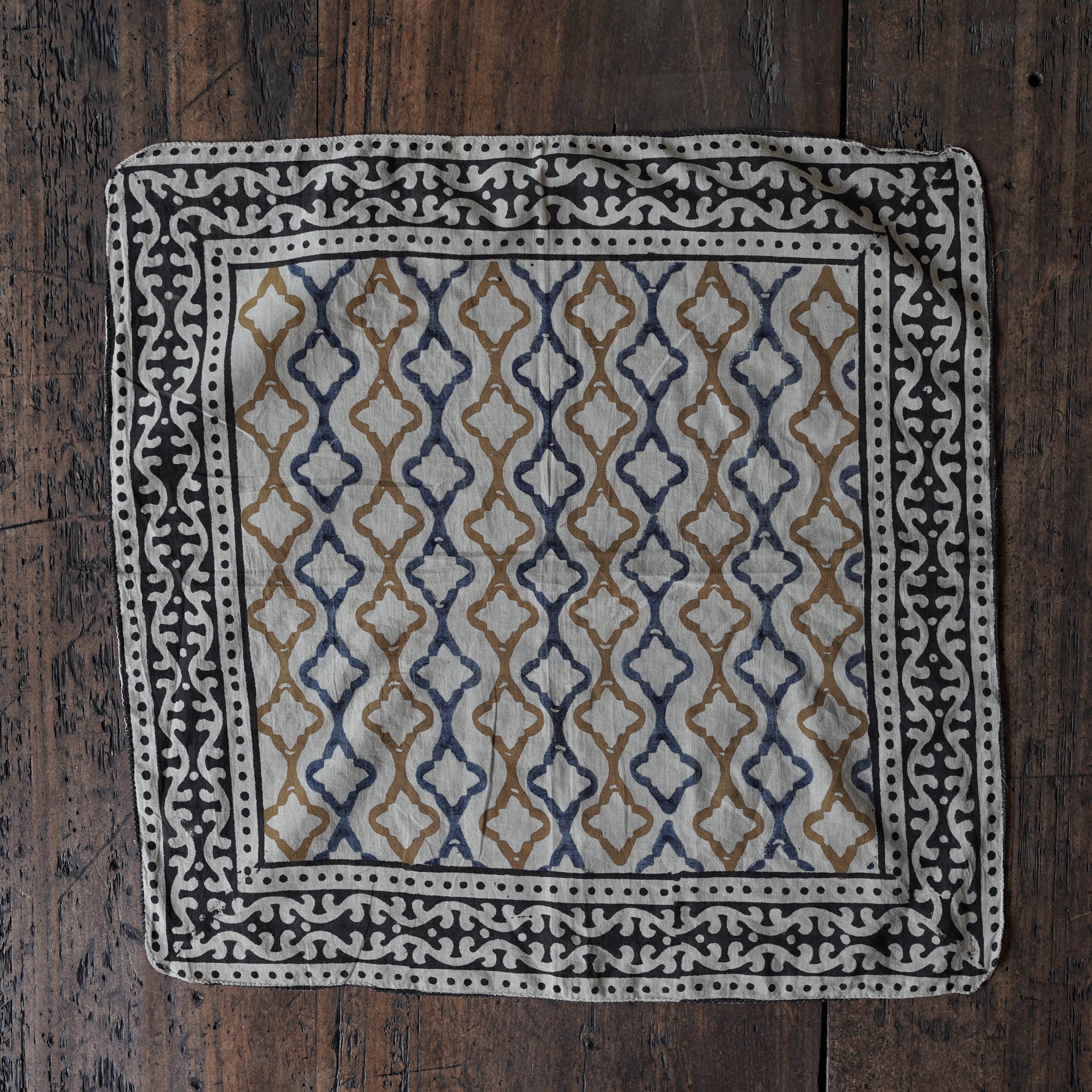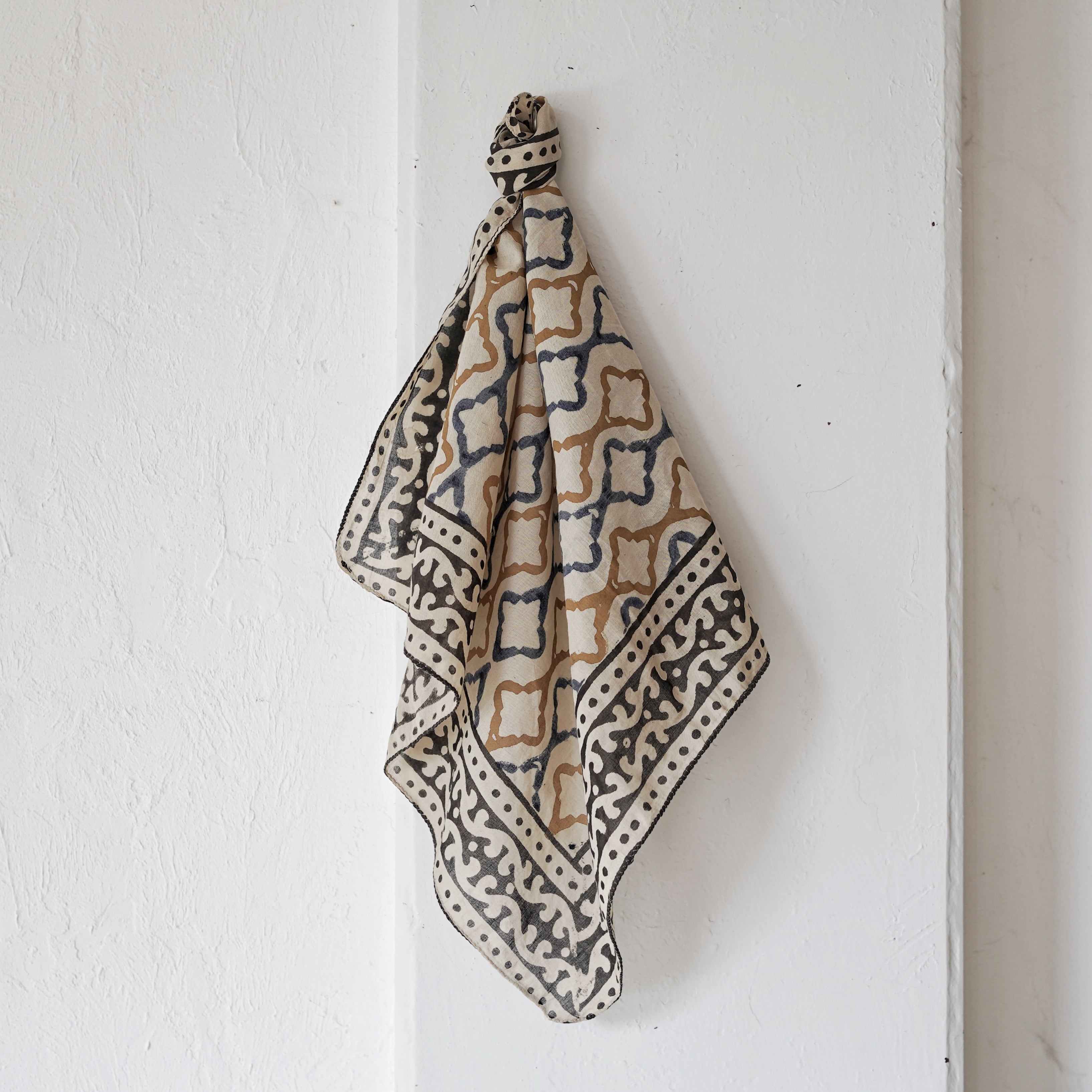 インドの職人によって、一枚一枚ていねいに木版で染め上げられたコットンバンダナ。
