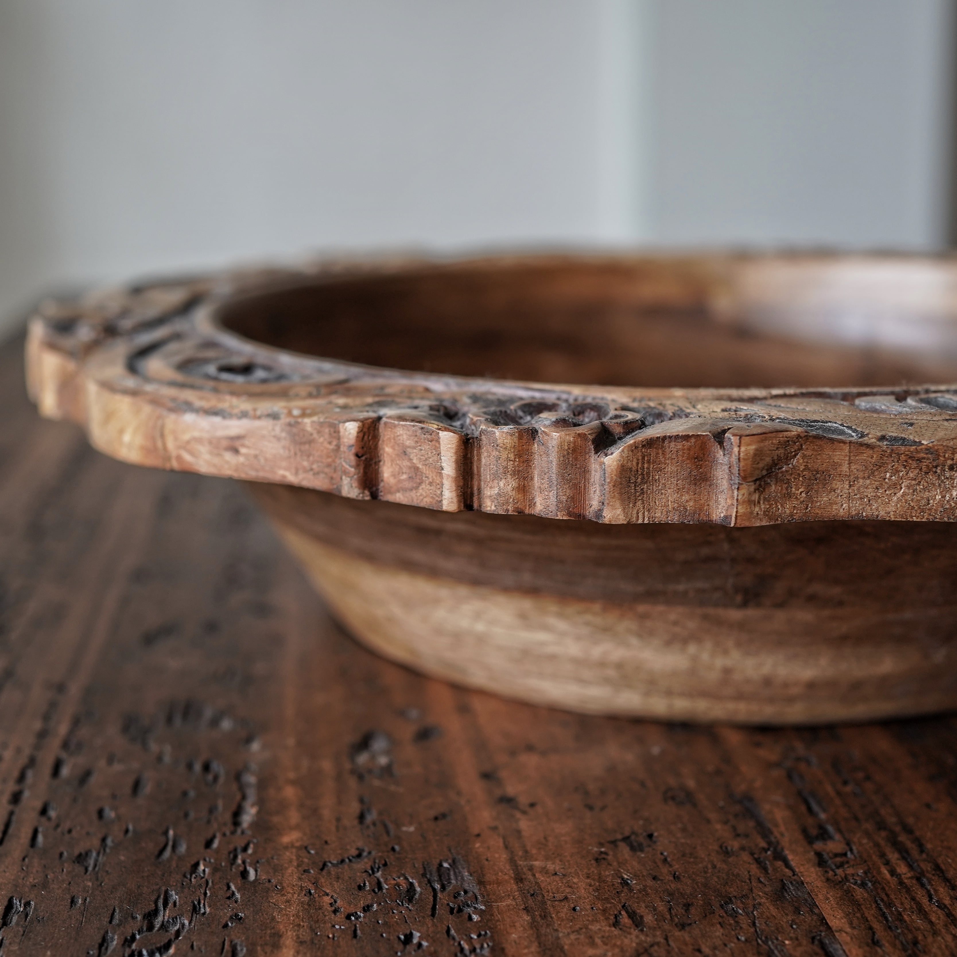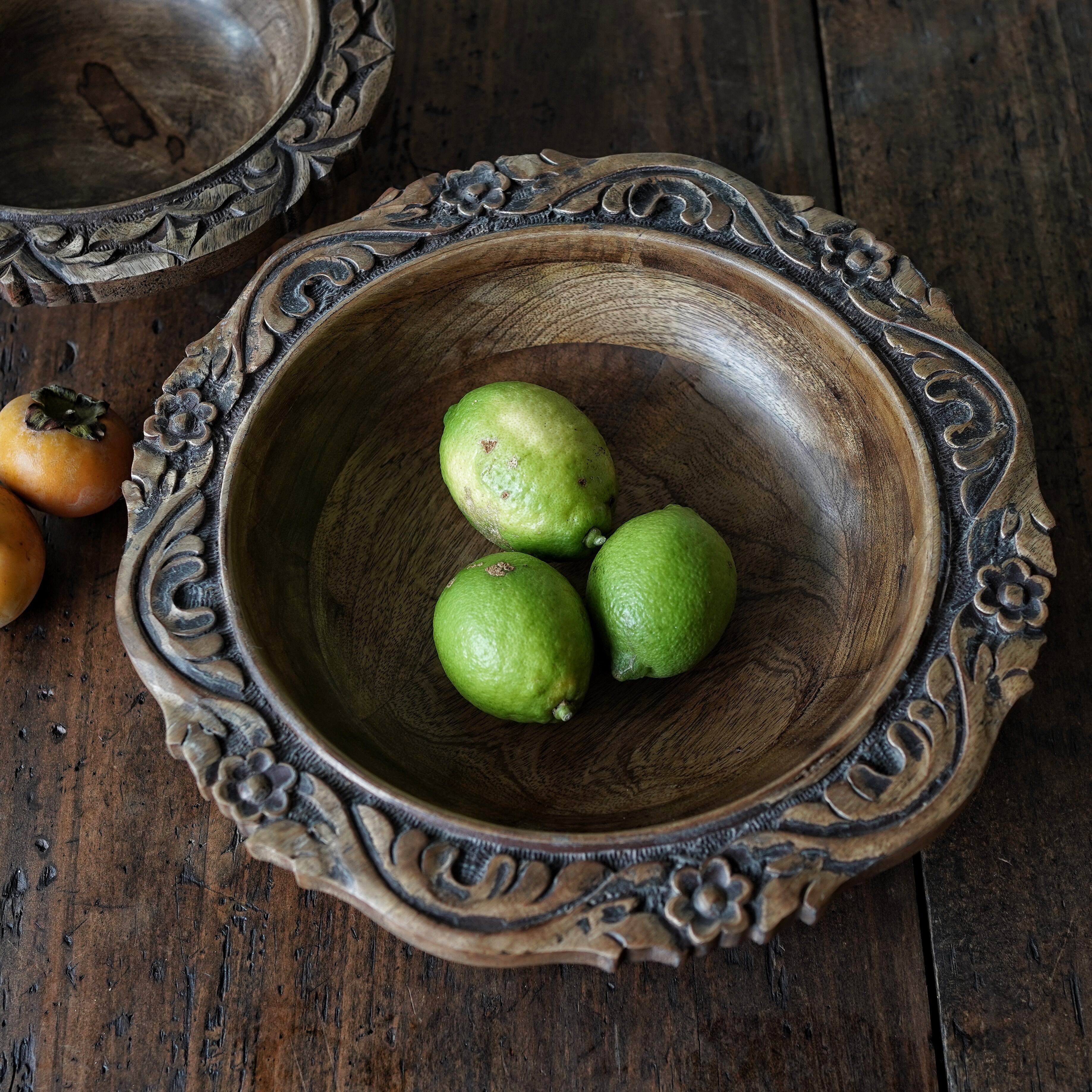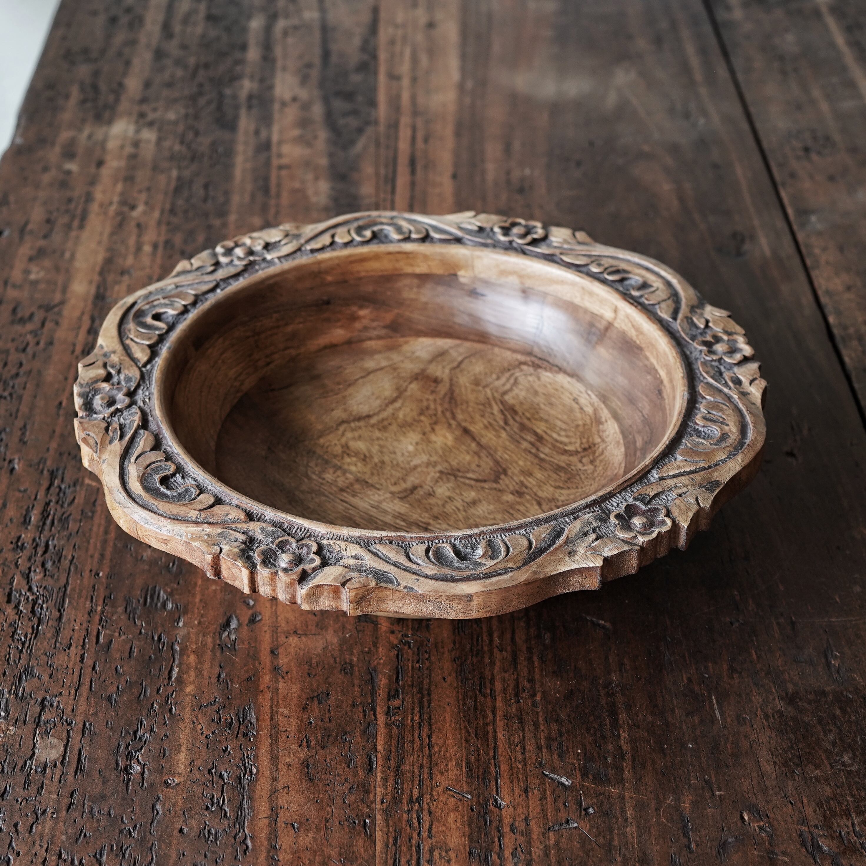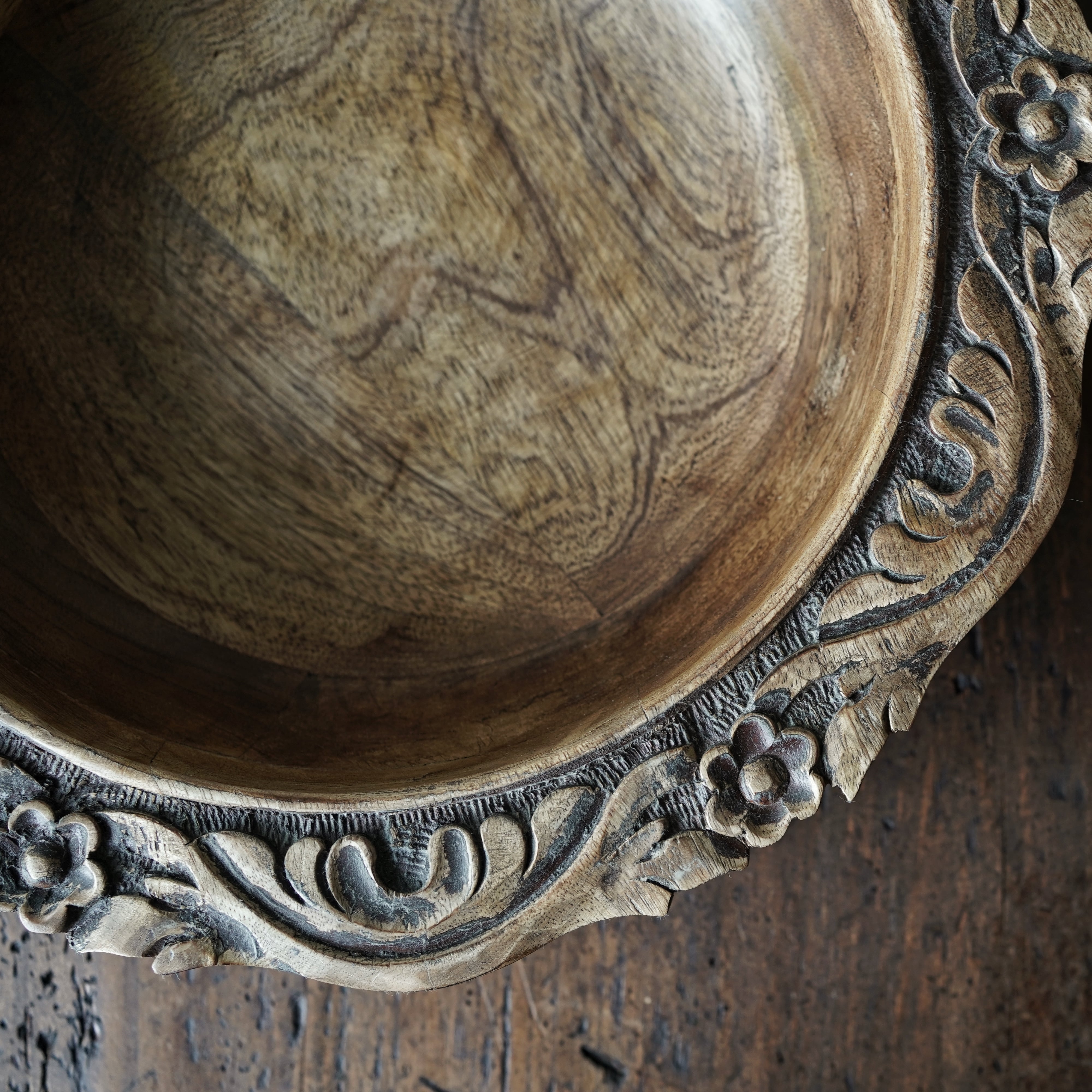 インドの職人によって丁寧に手彫りされた、マンゴーウッドのカービングボウル。
