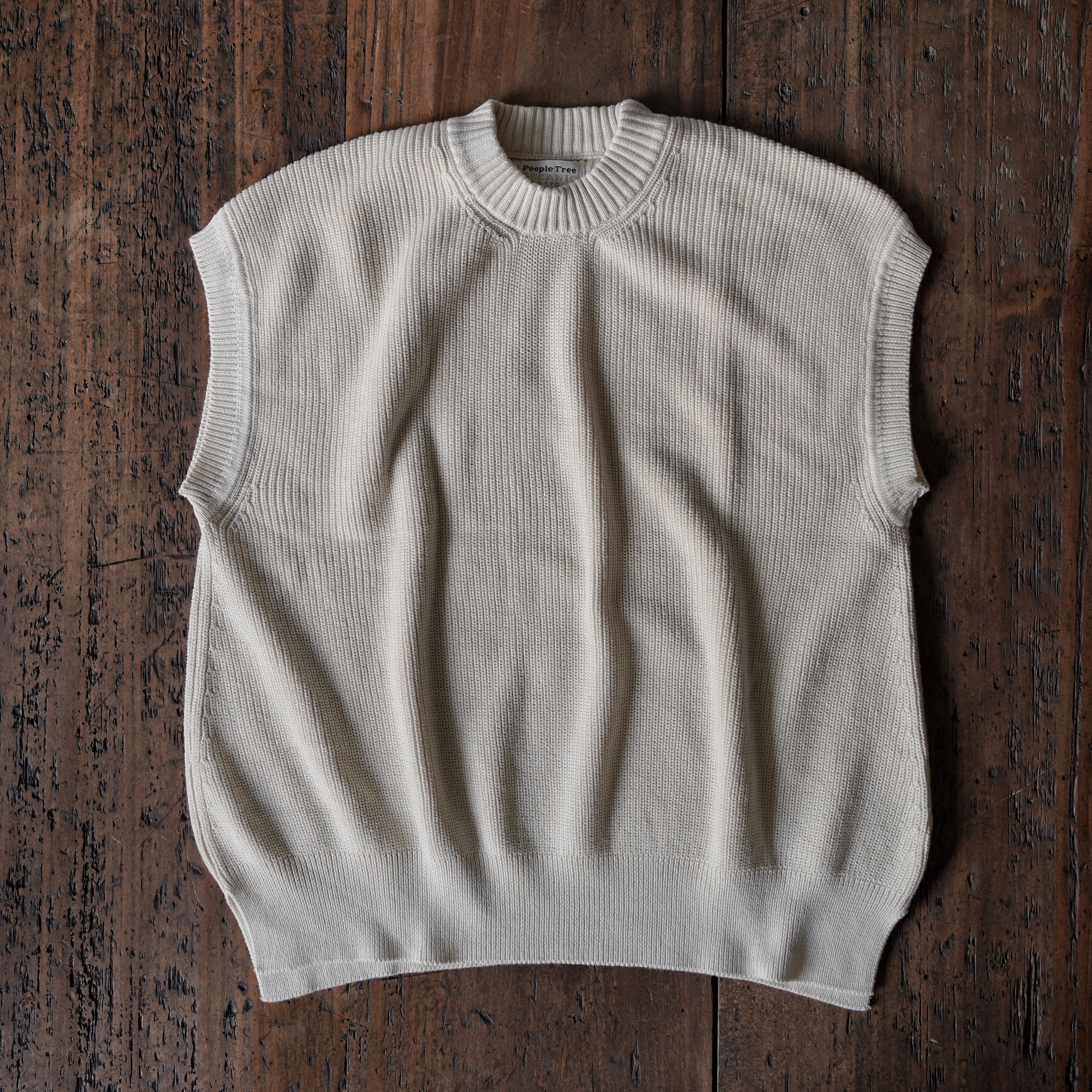 オーガニックコットンニット 片あぜクルーネックベスト/People Tree