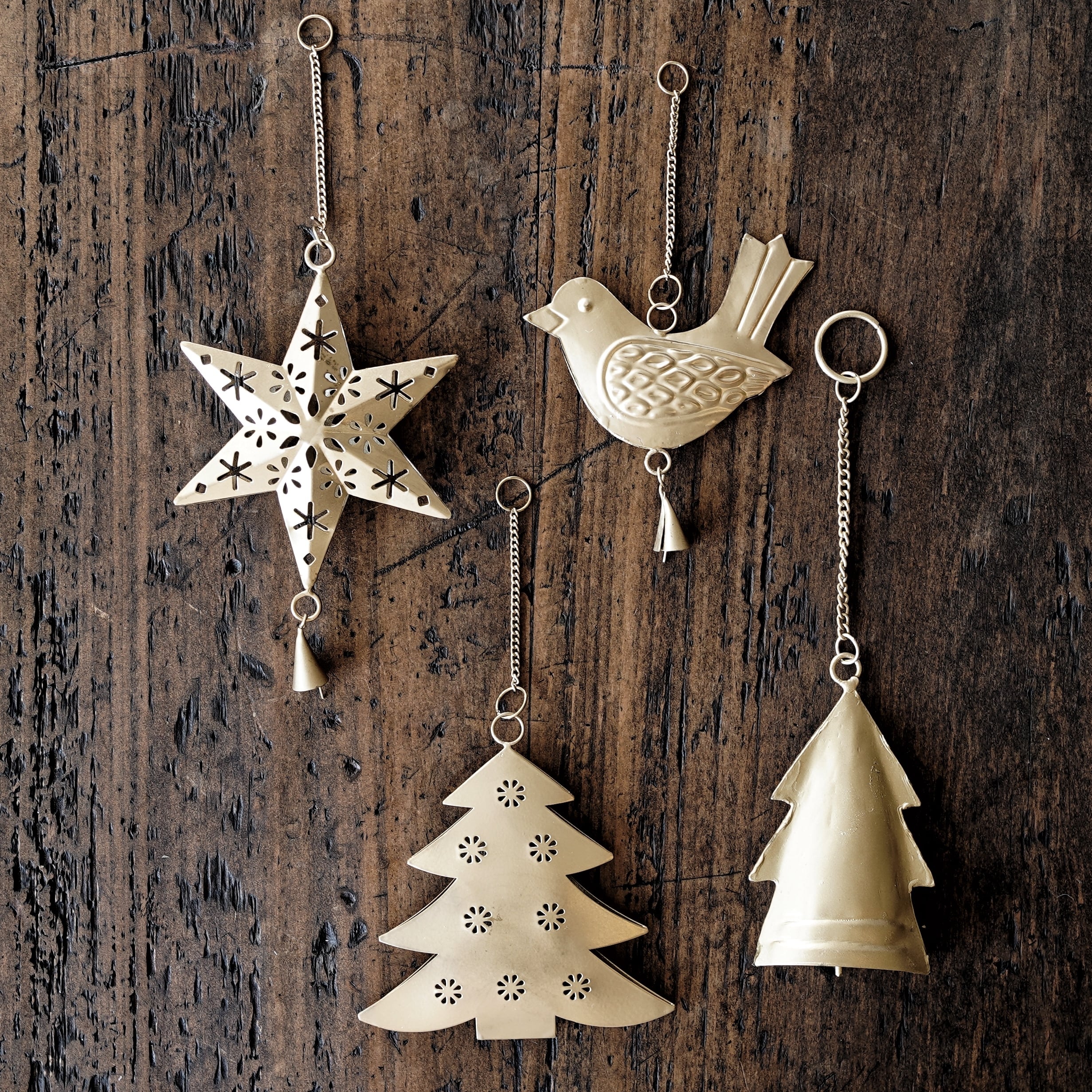 優しい光にふわりと溶け込む、マットゴールドのオーナメント。
