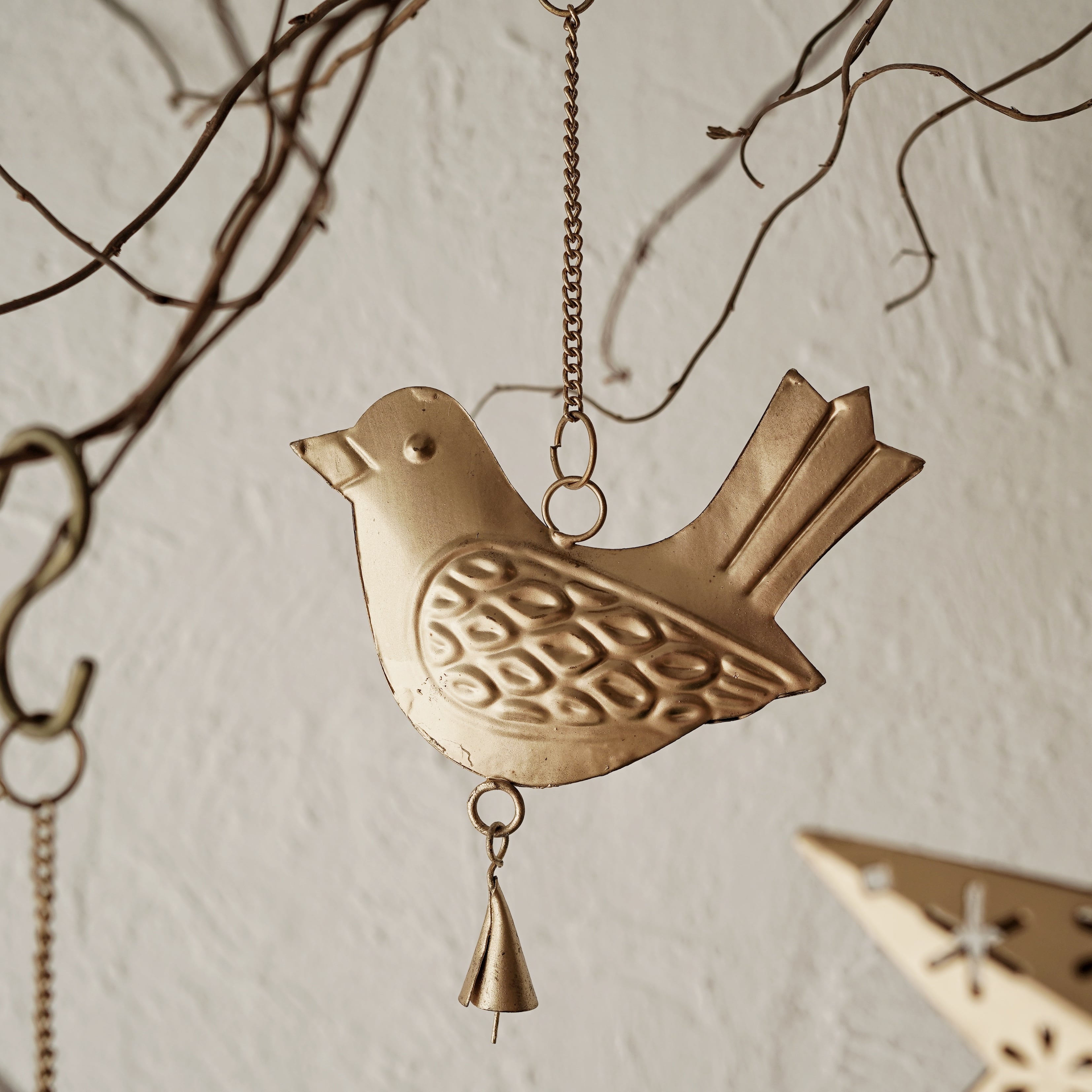 優しい光にふわりと溶け込む、マットゴールドのオーナメント。
