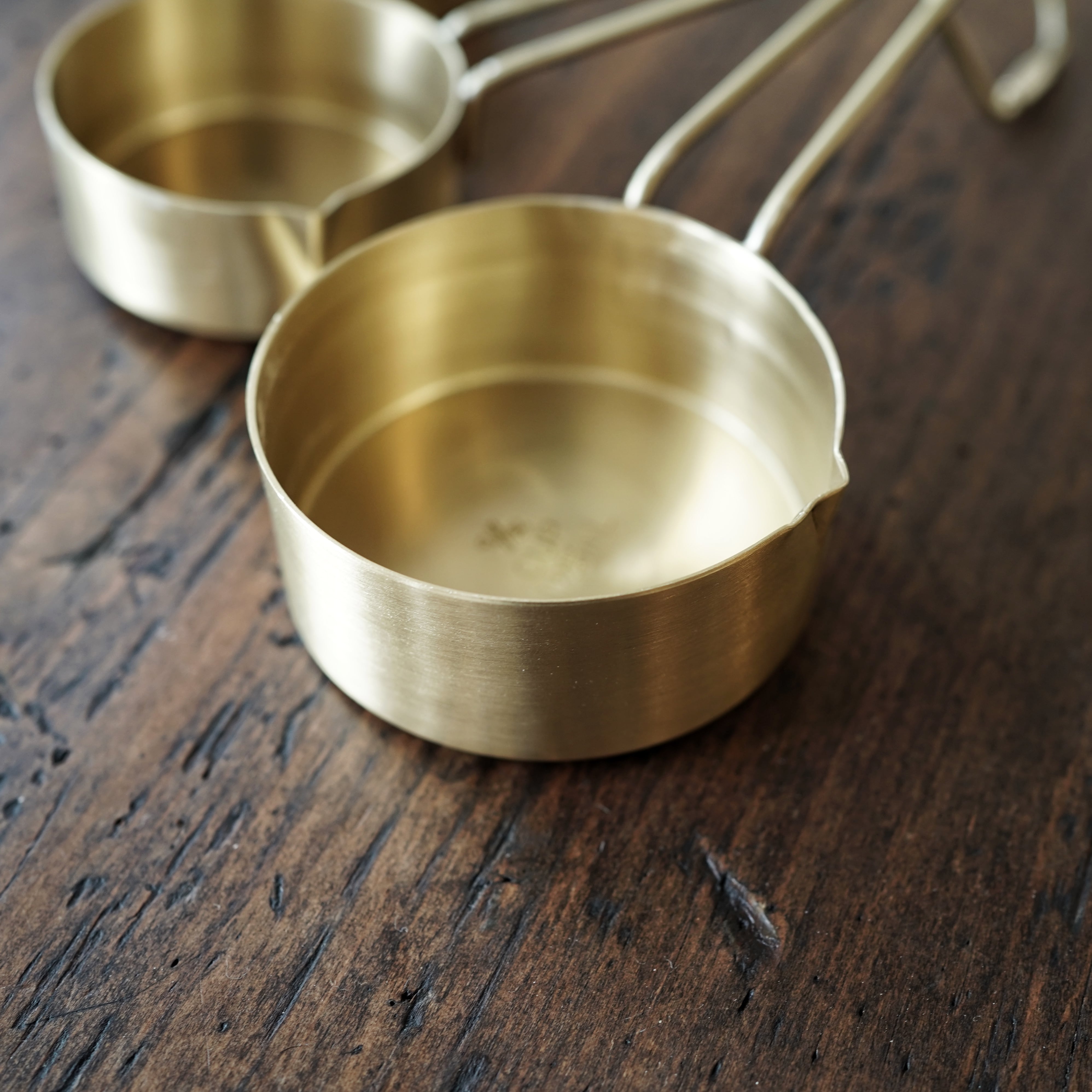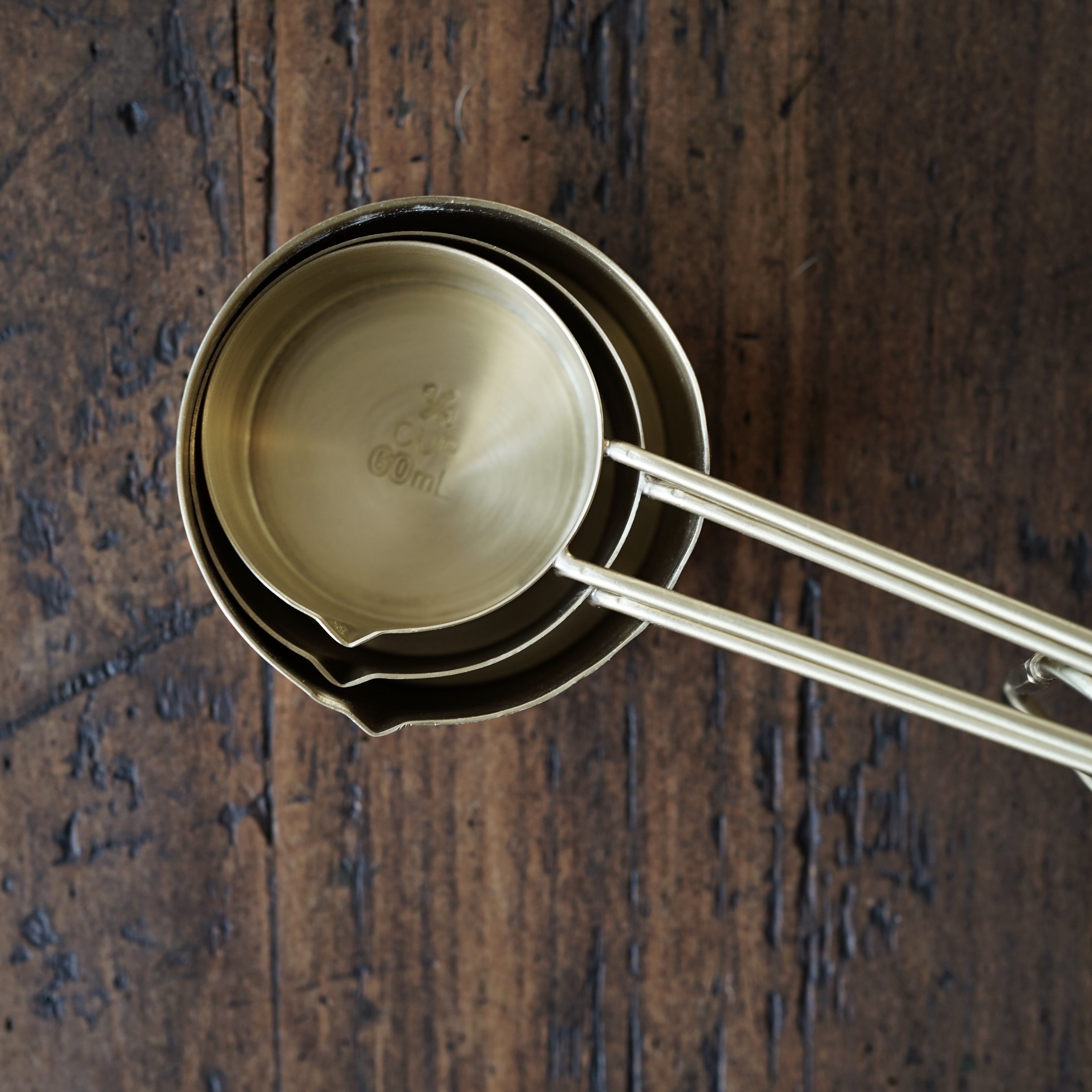 「日々のごはん作り」が、ちょっとだけ豊かになるように。調味料の計量や、一手間かけたい料理の準備など、ささやかな日常をこの真鍮のカップといっしょに、ゆるやかに楽しんでいただければ。