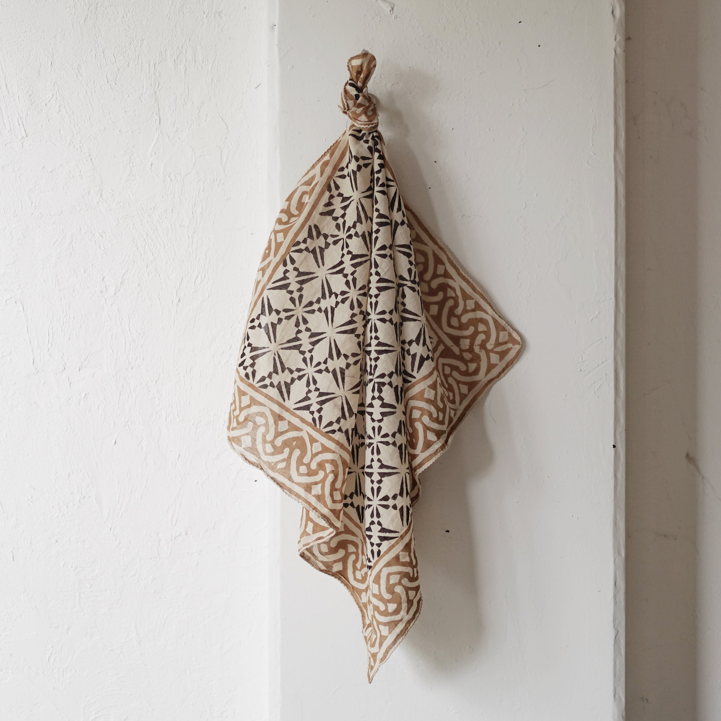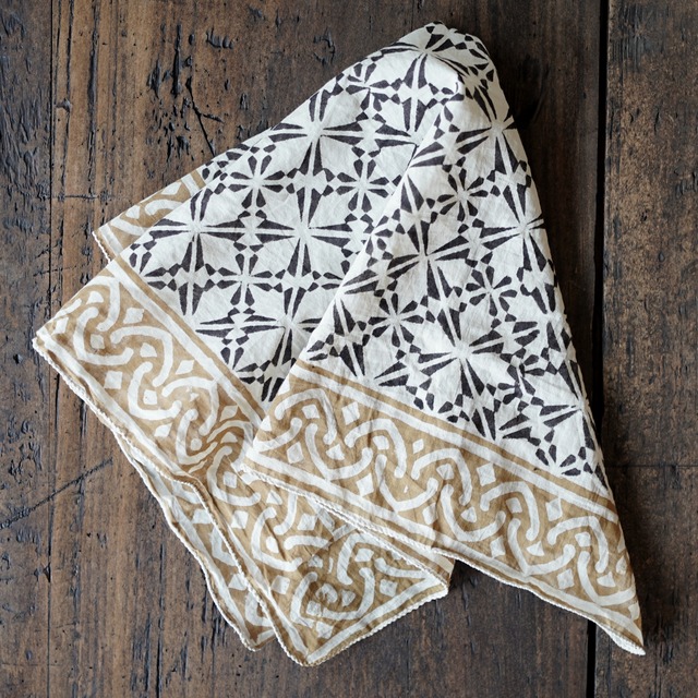 インドの職人によって、一枚一枚ていねいに木版で染め上げられたコットンバンダナ。