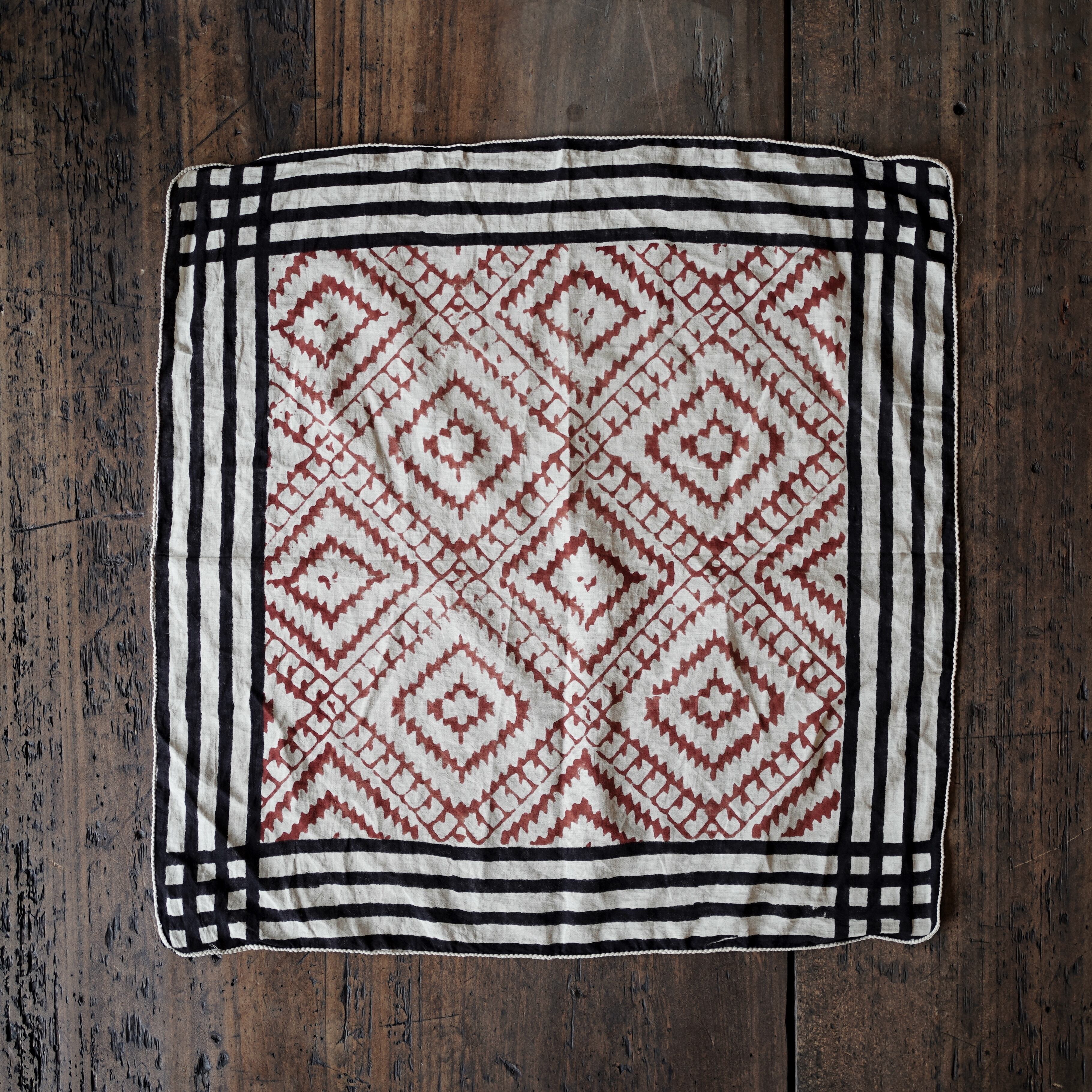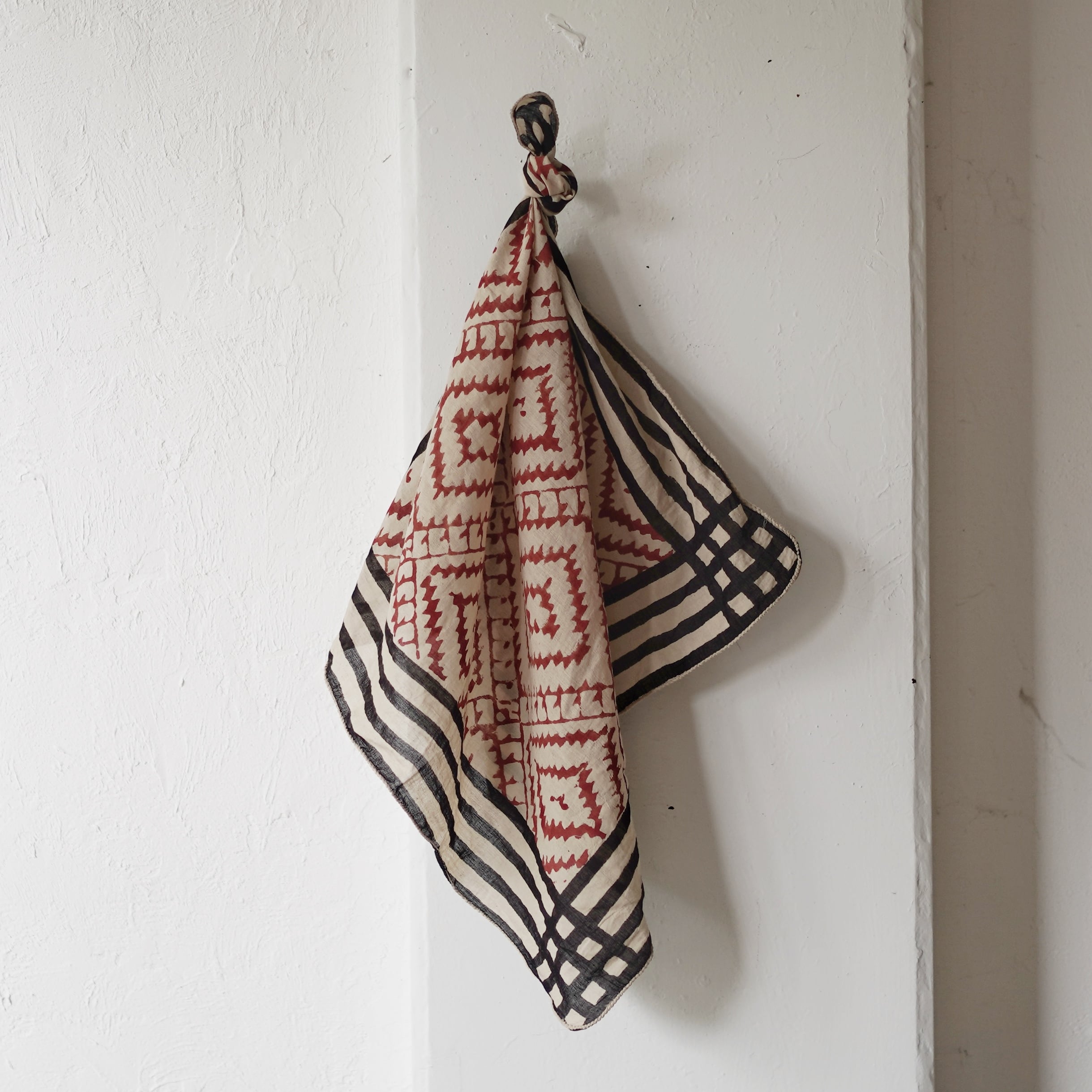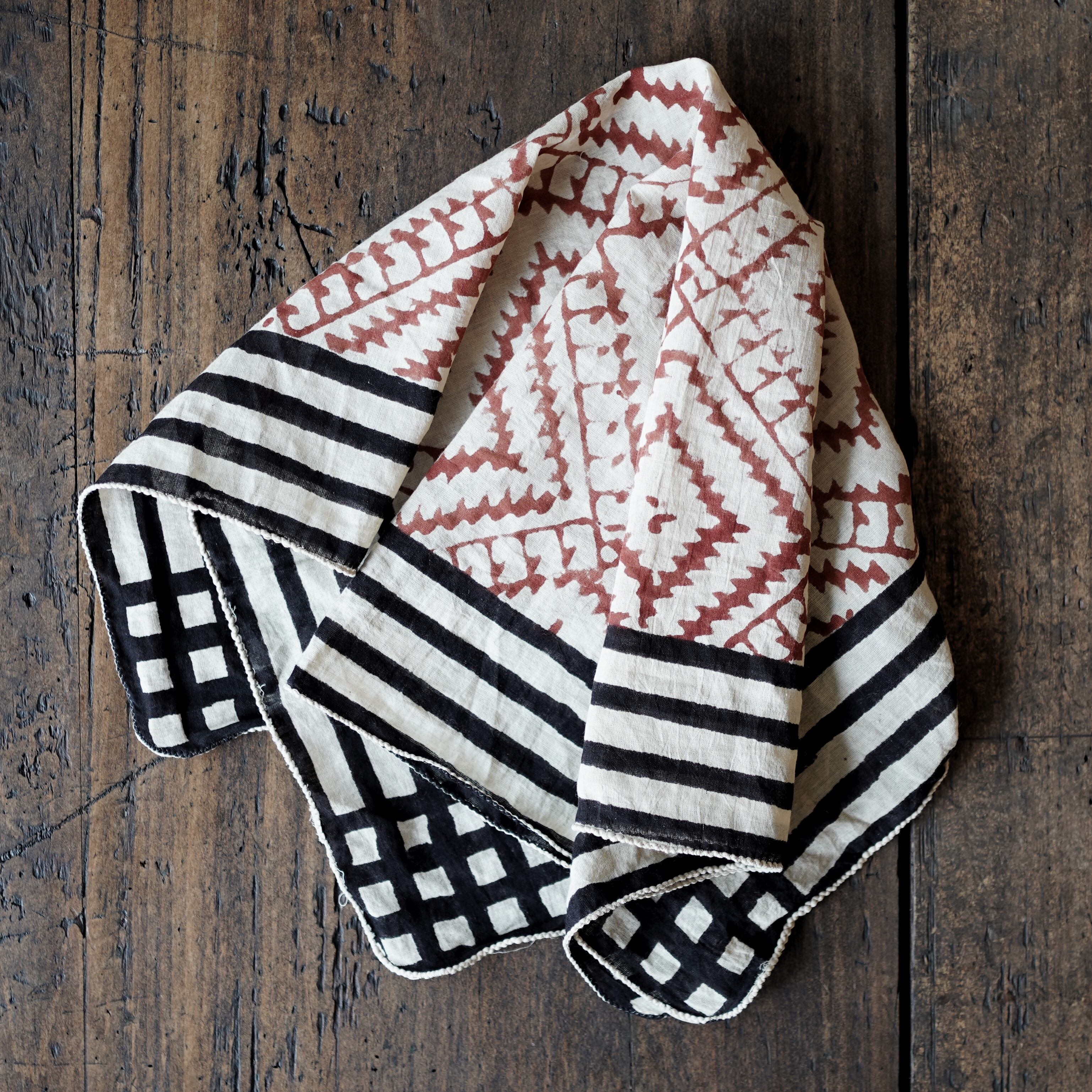インドの職人によって、一枚一枚ていねいに木版で染め上げられたコットンバンダナ。