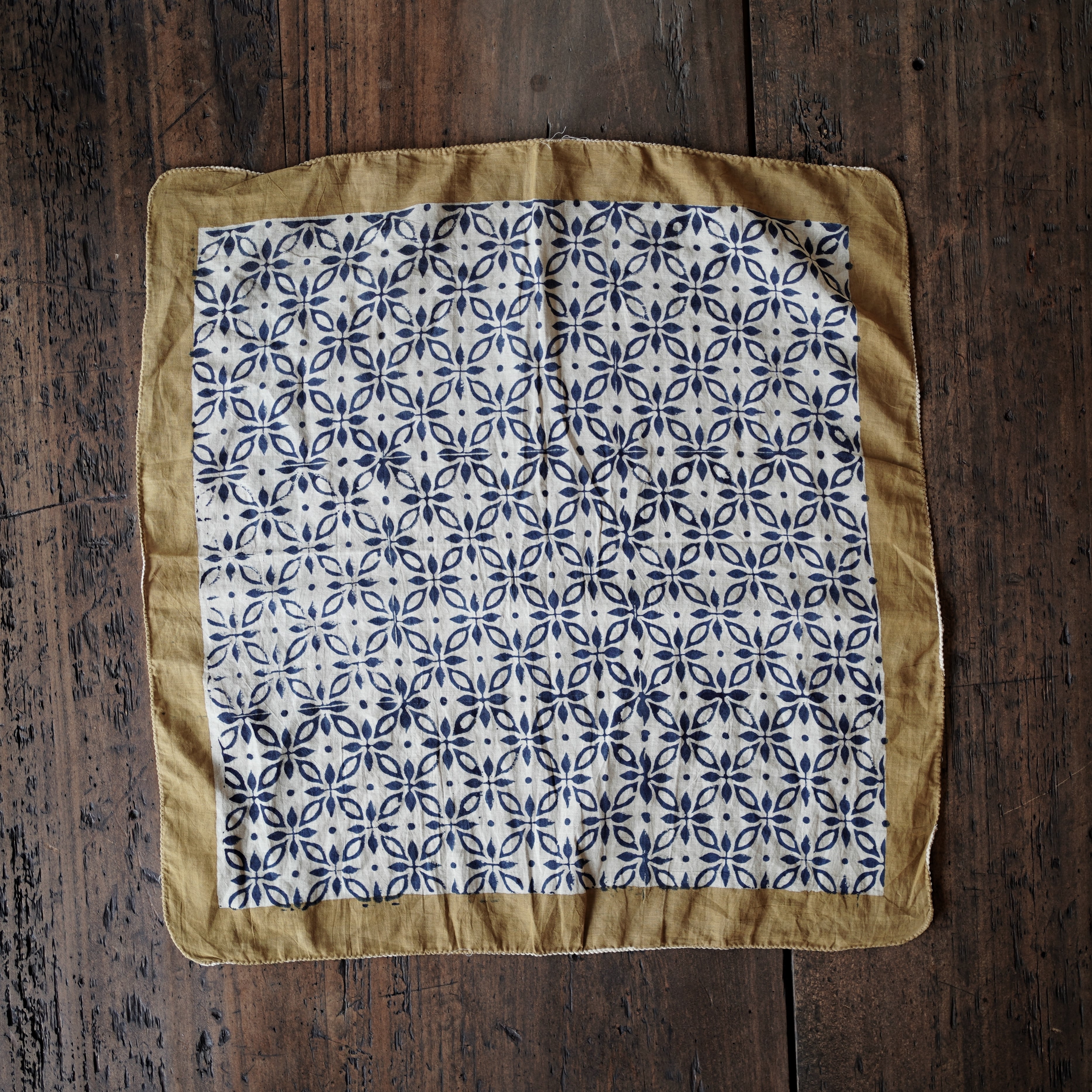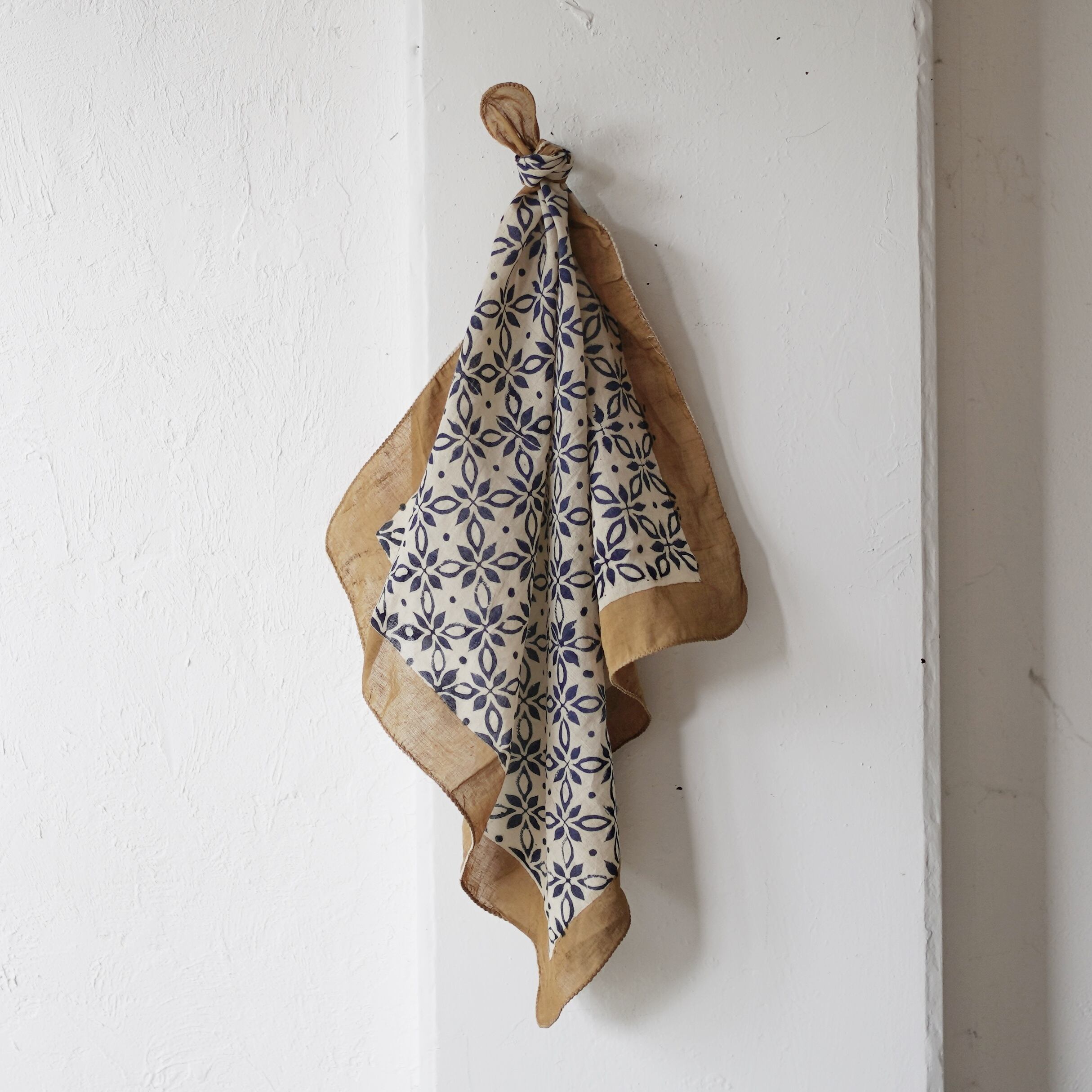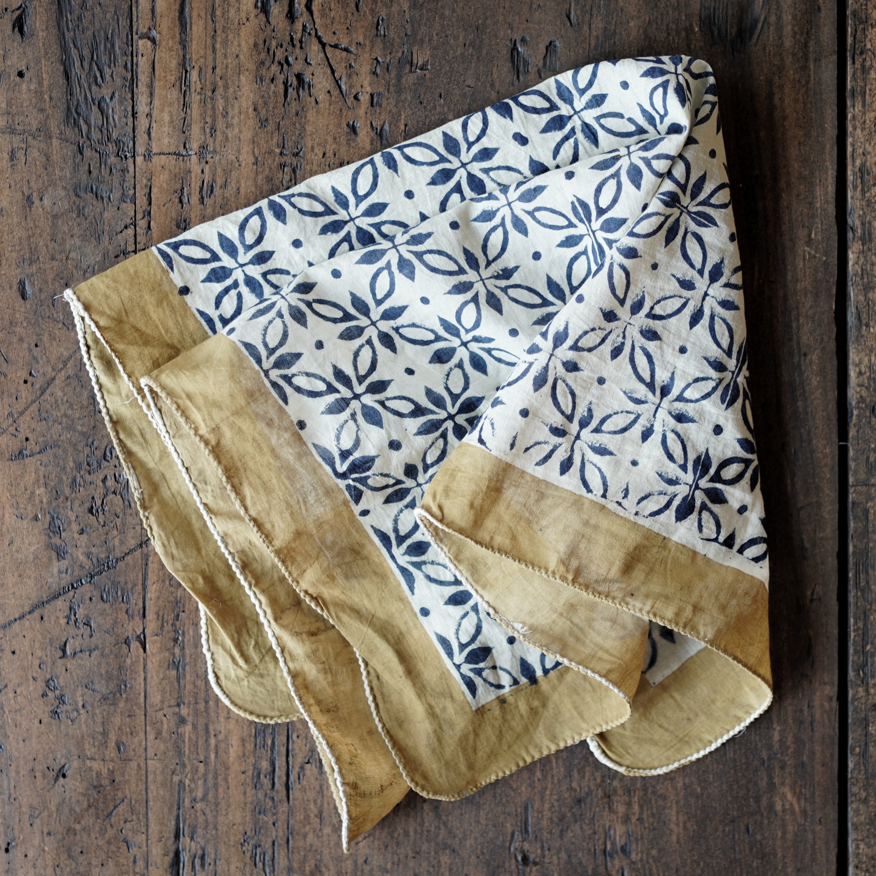 インドの職人によって、一枚一枚ていねいに木版で染め上げられたコットンバンダナ。