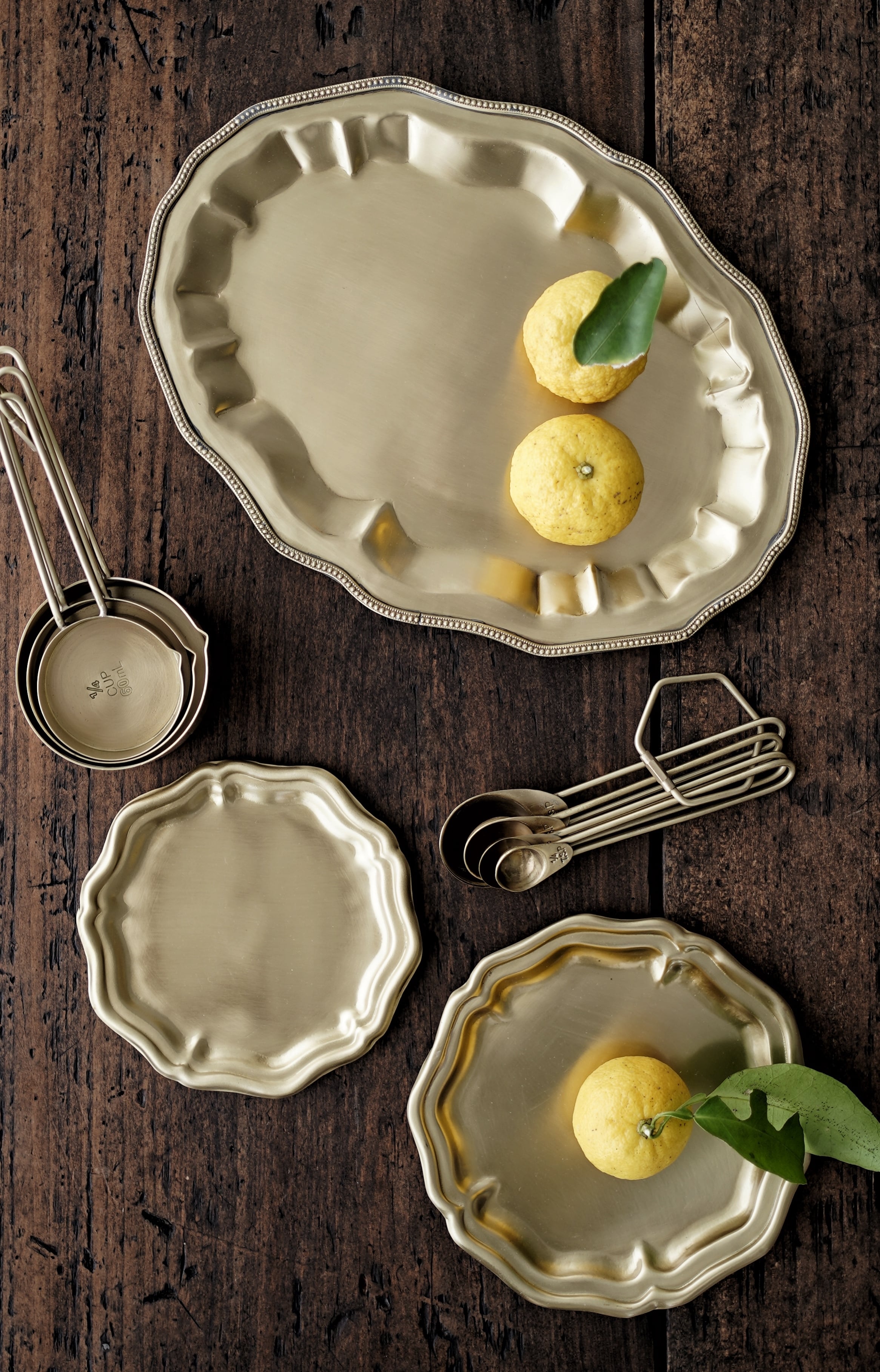 やわらかな光をまとった、ブラス(真鍮)素材のラウンドトレイ。