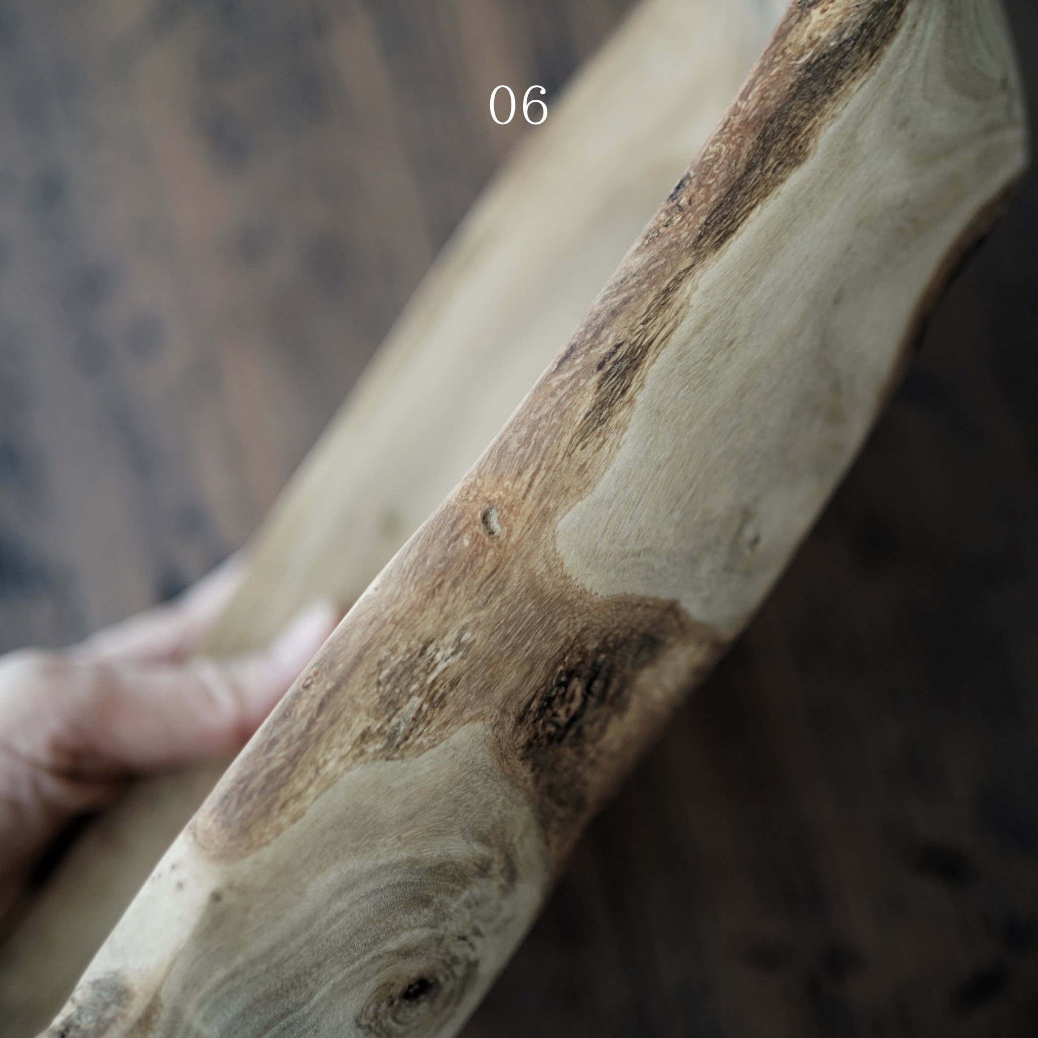 表面にオリーブオイルなどの油分を塗布すると、ヒビ割れを防ぎながら木肌の艶が増し、使うほどに深みのある風合いへと育っていきます。