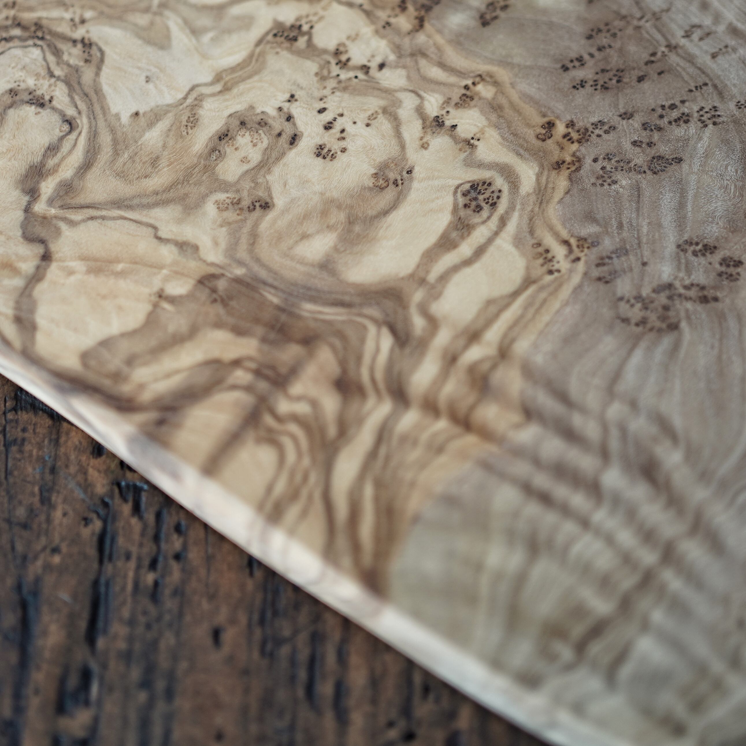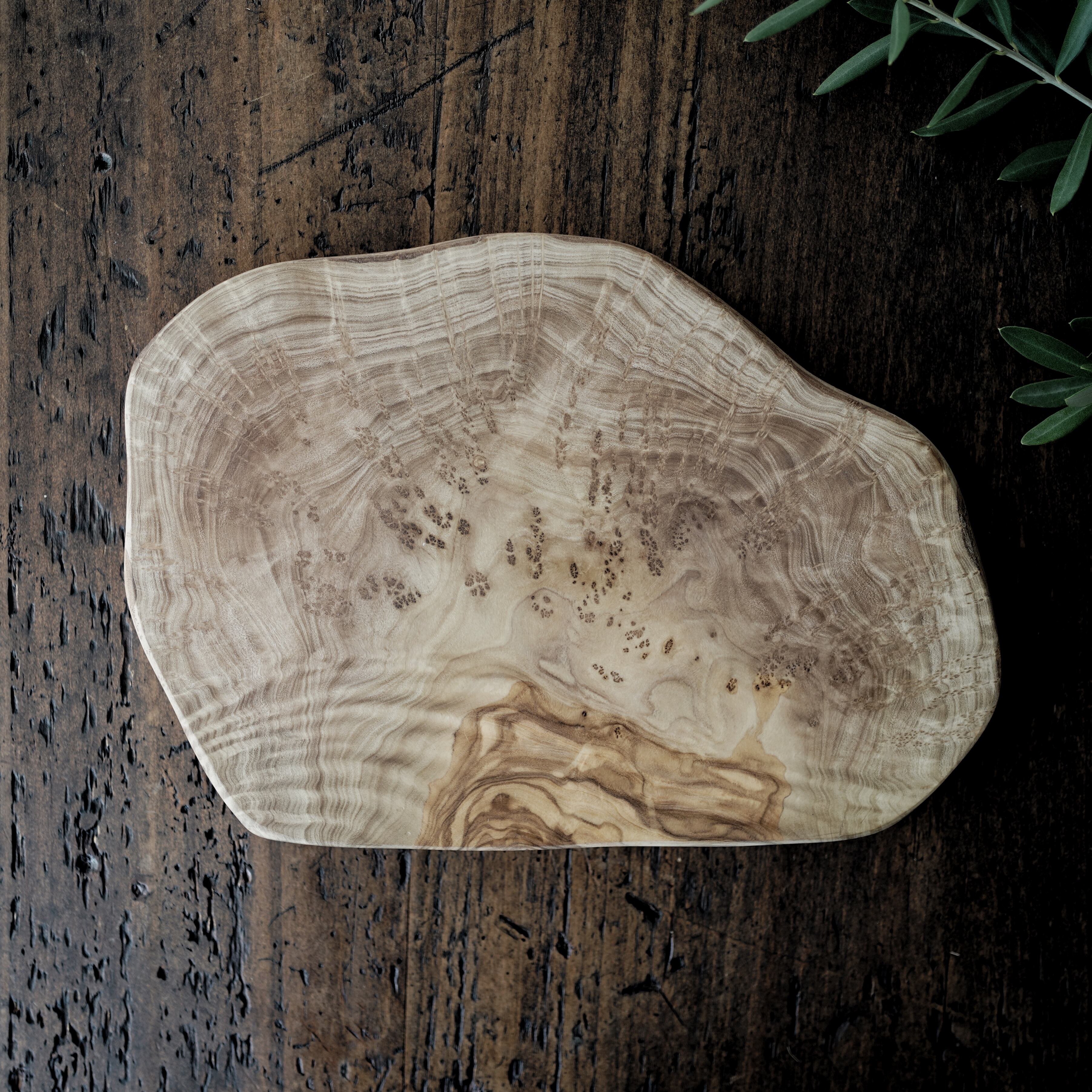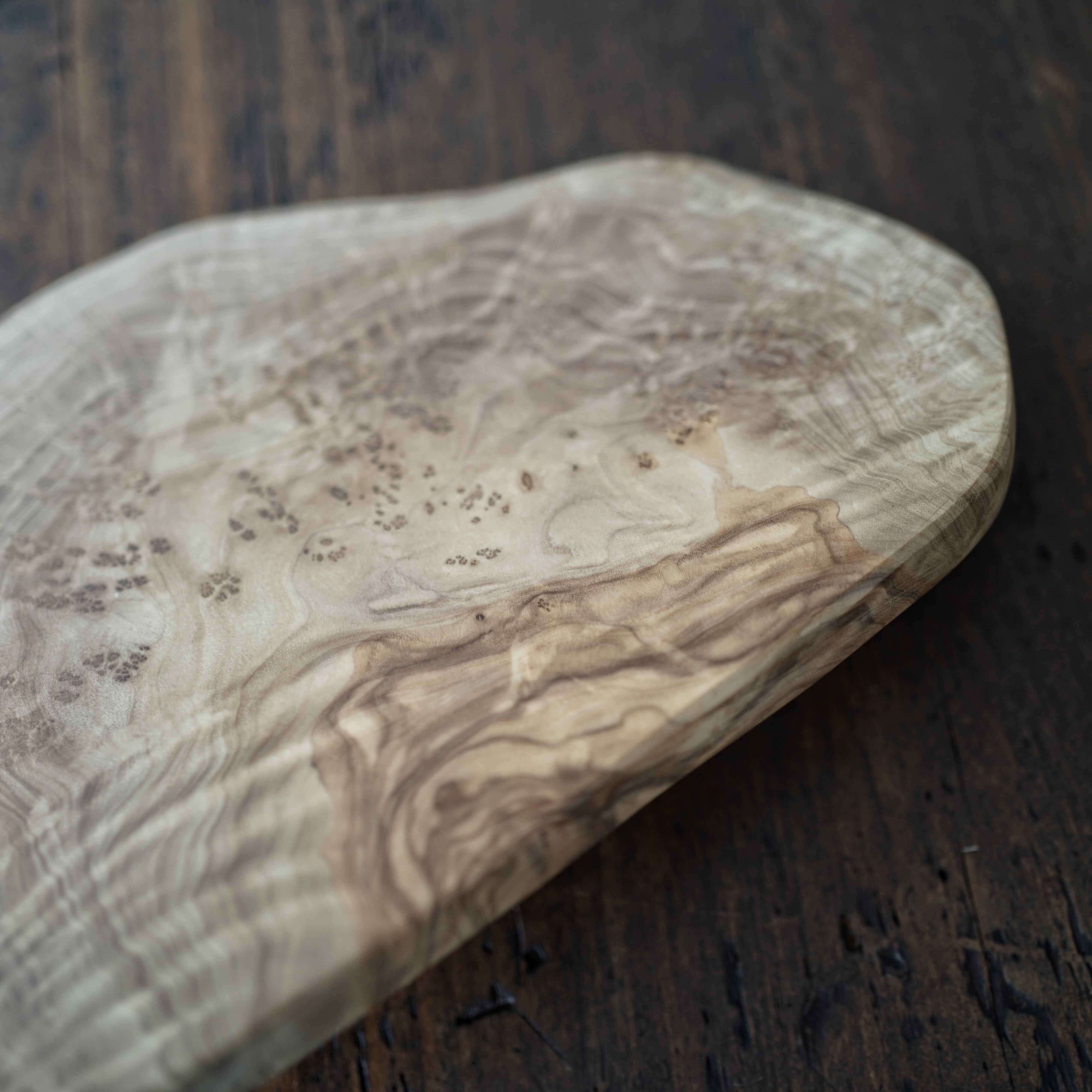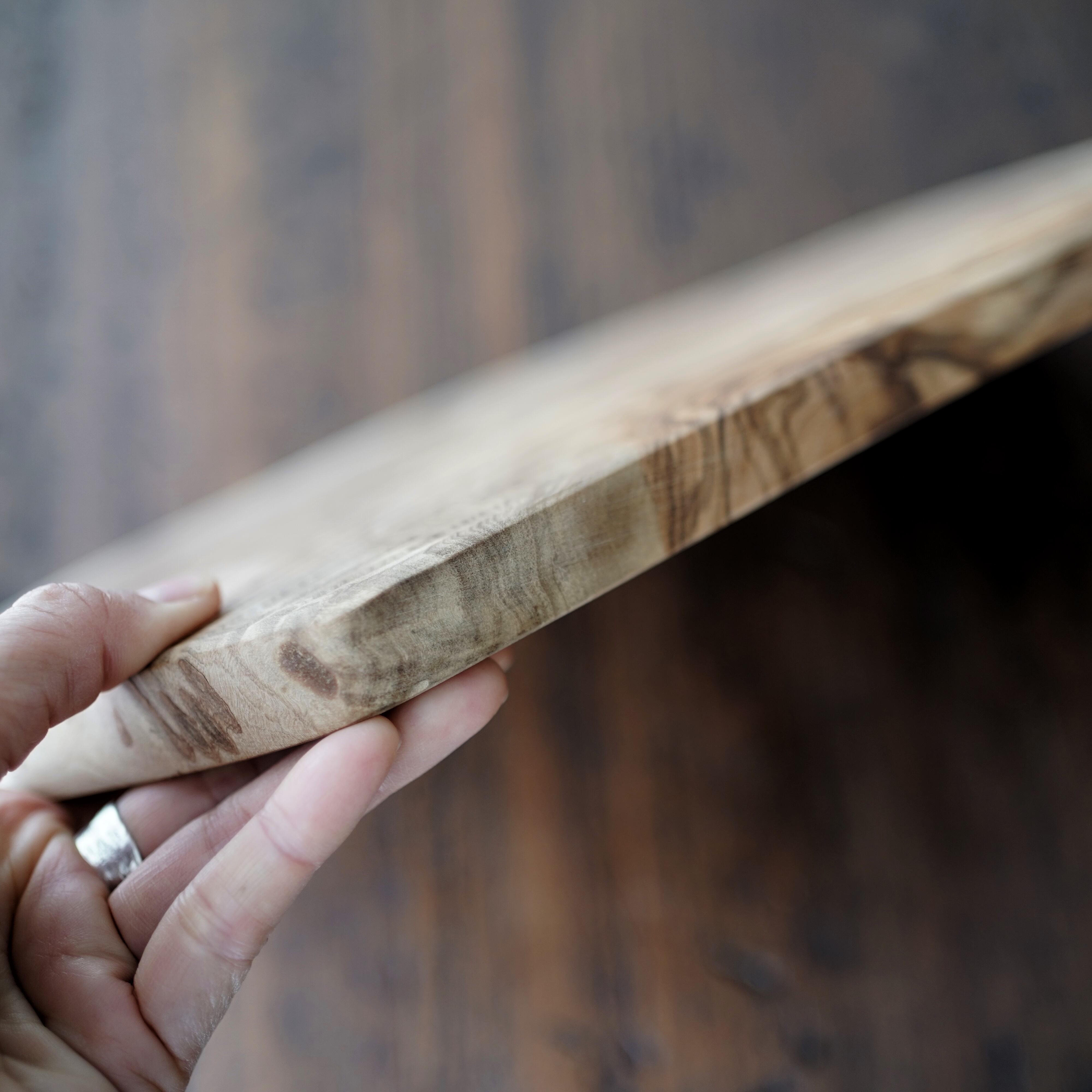 硬くて丈夫、美しい木目が特徴のオリーブでハンドメイドされたカッティングボード。