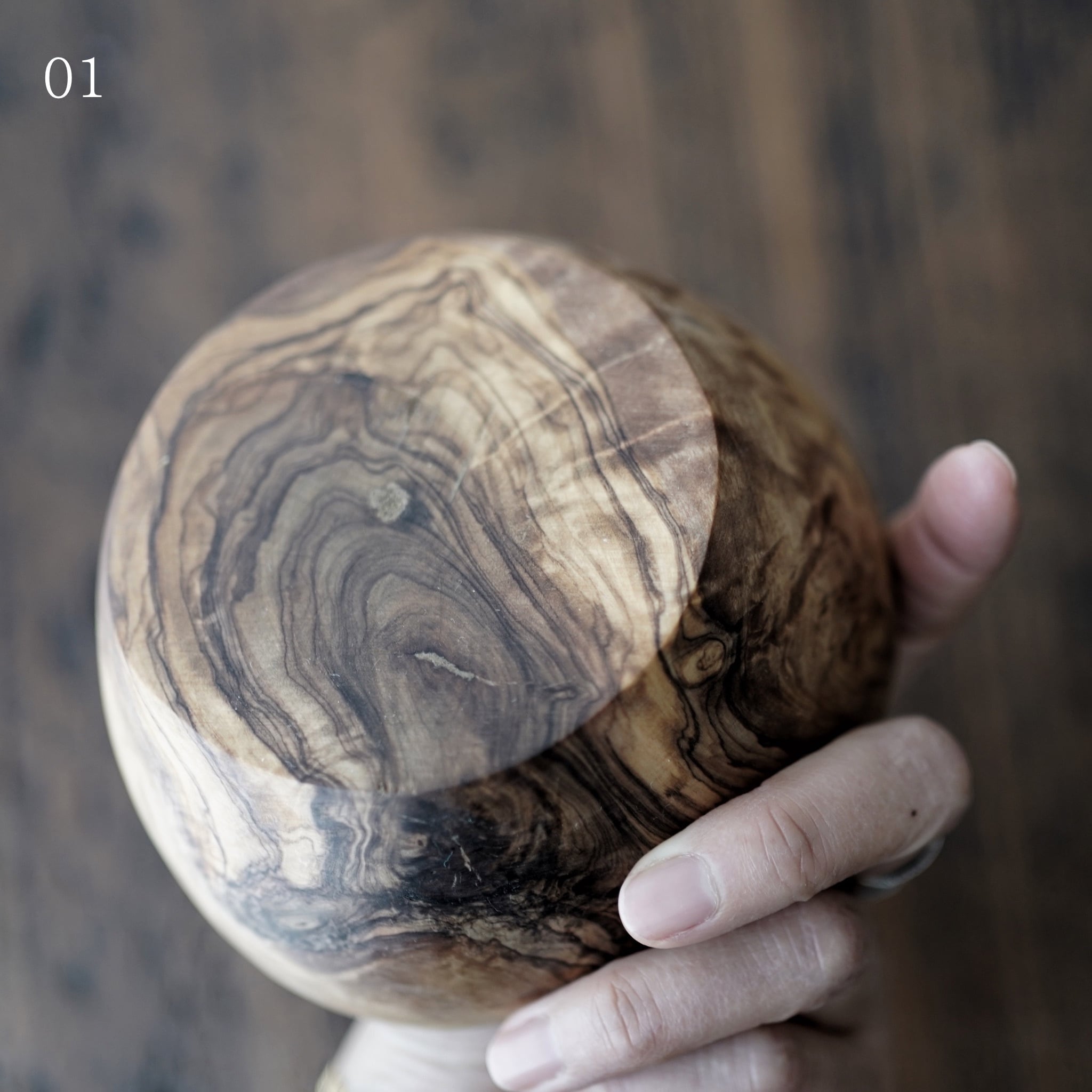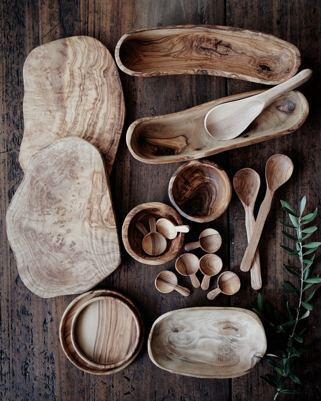 使用されているオリーブは剪定された枝や老木を利用し、自然な形を生かしてハンドメイドされています。