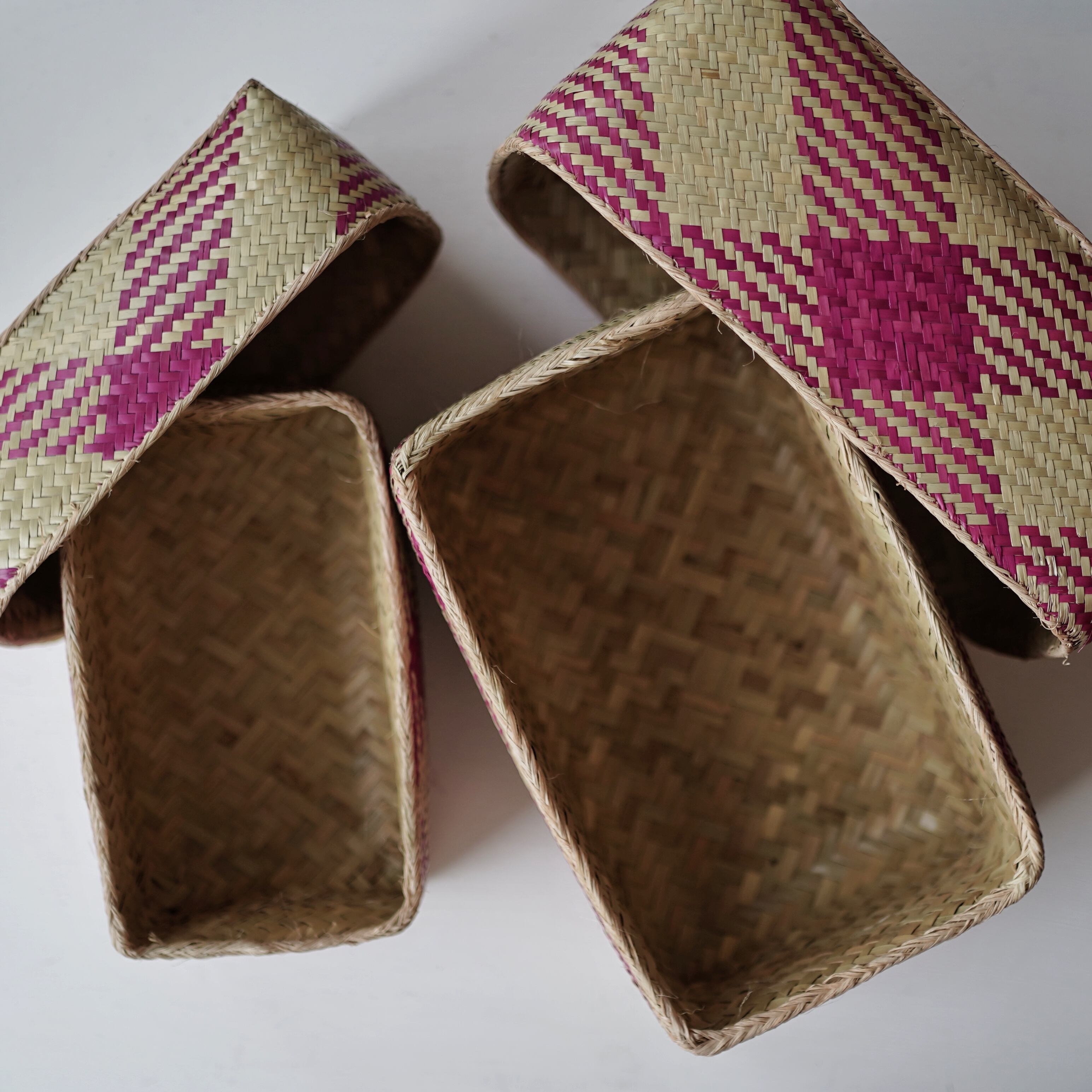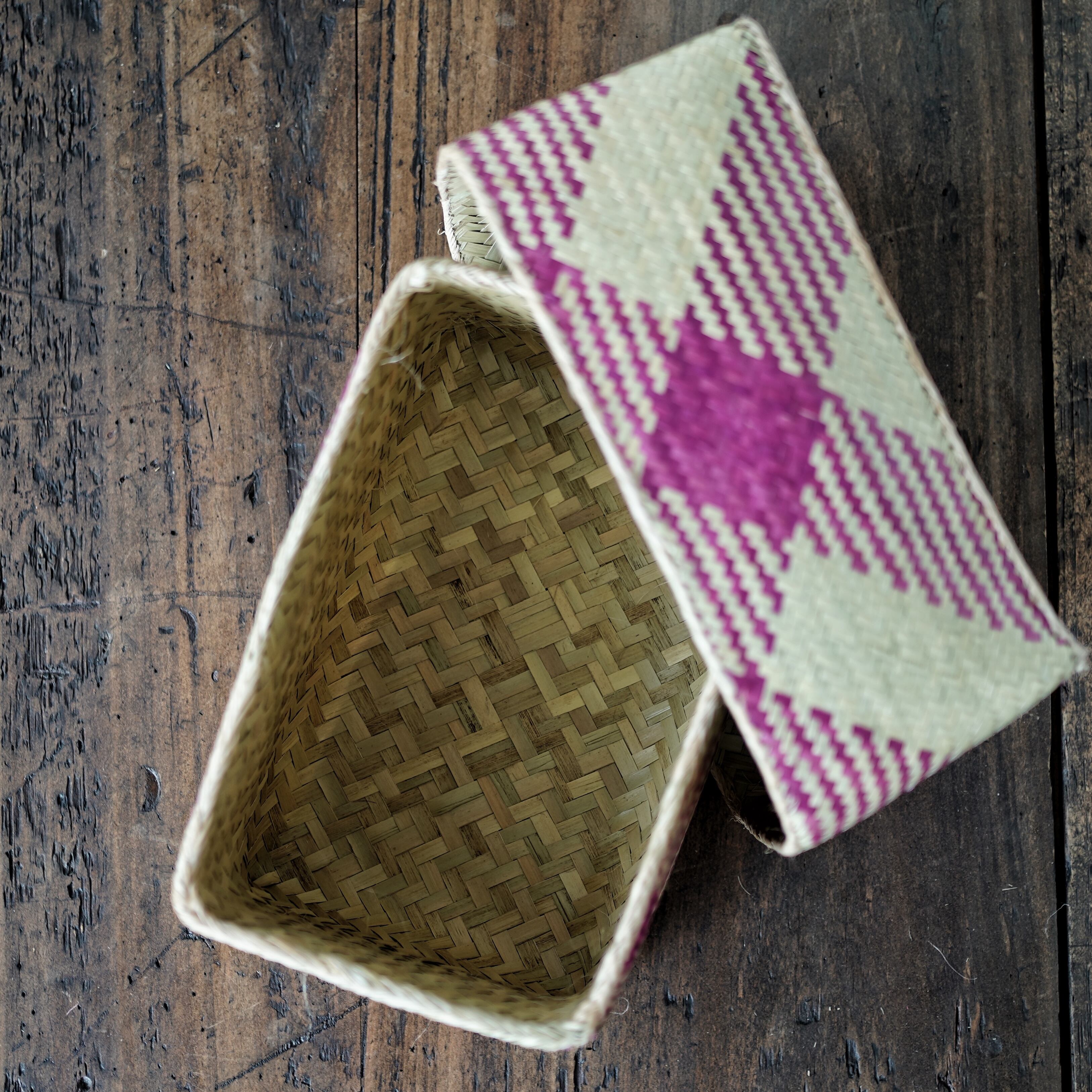天然の水草を丁寧に編み上げた、チヒ編みのボックス。