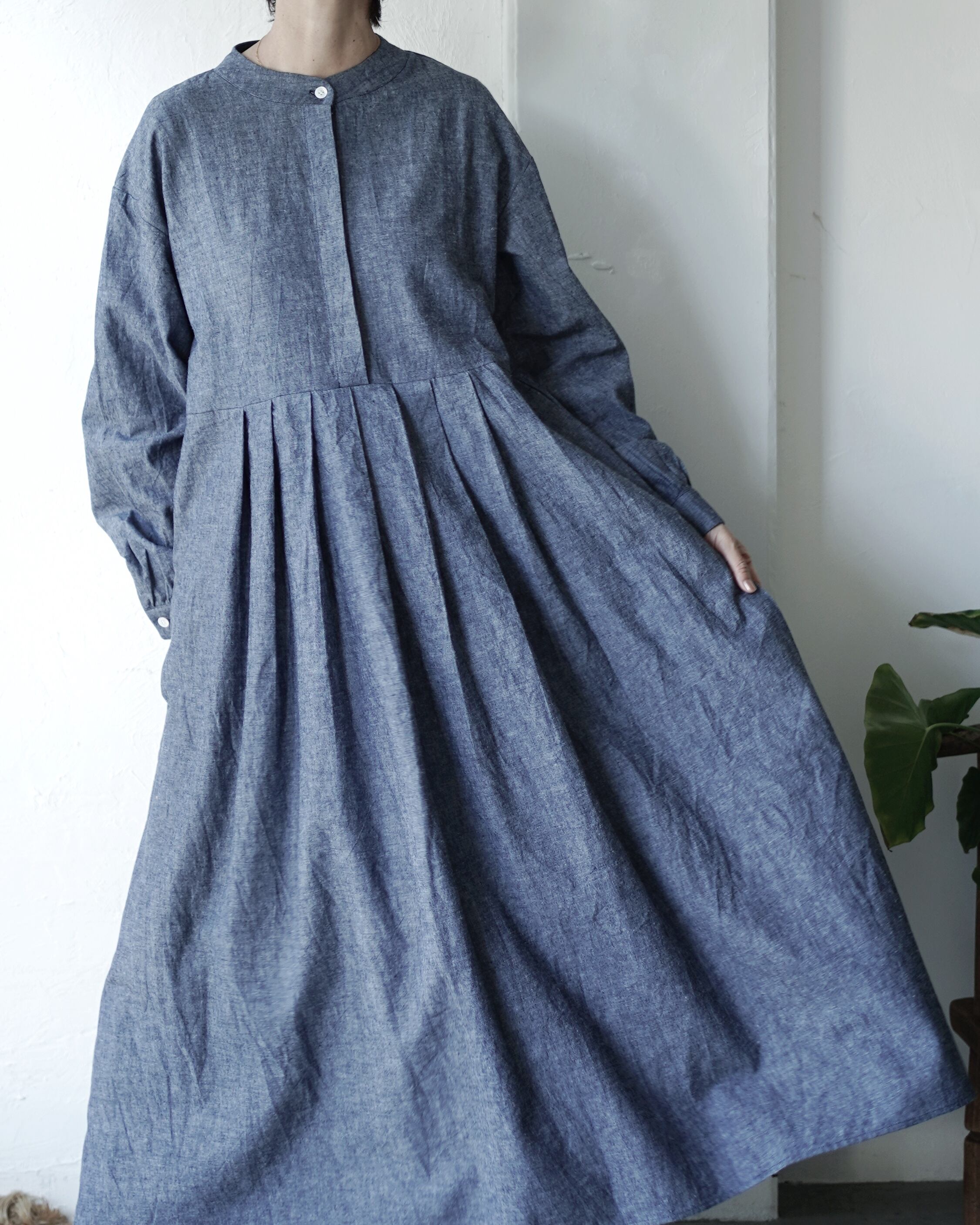ハーフボタンボリュームシャツワンピース[ インディゴ染めシャンブレー]/A HOPE HEMP