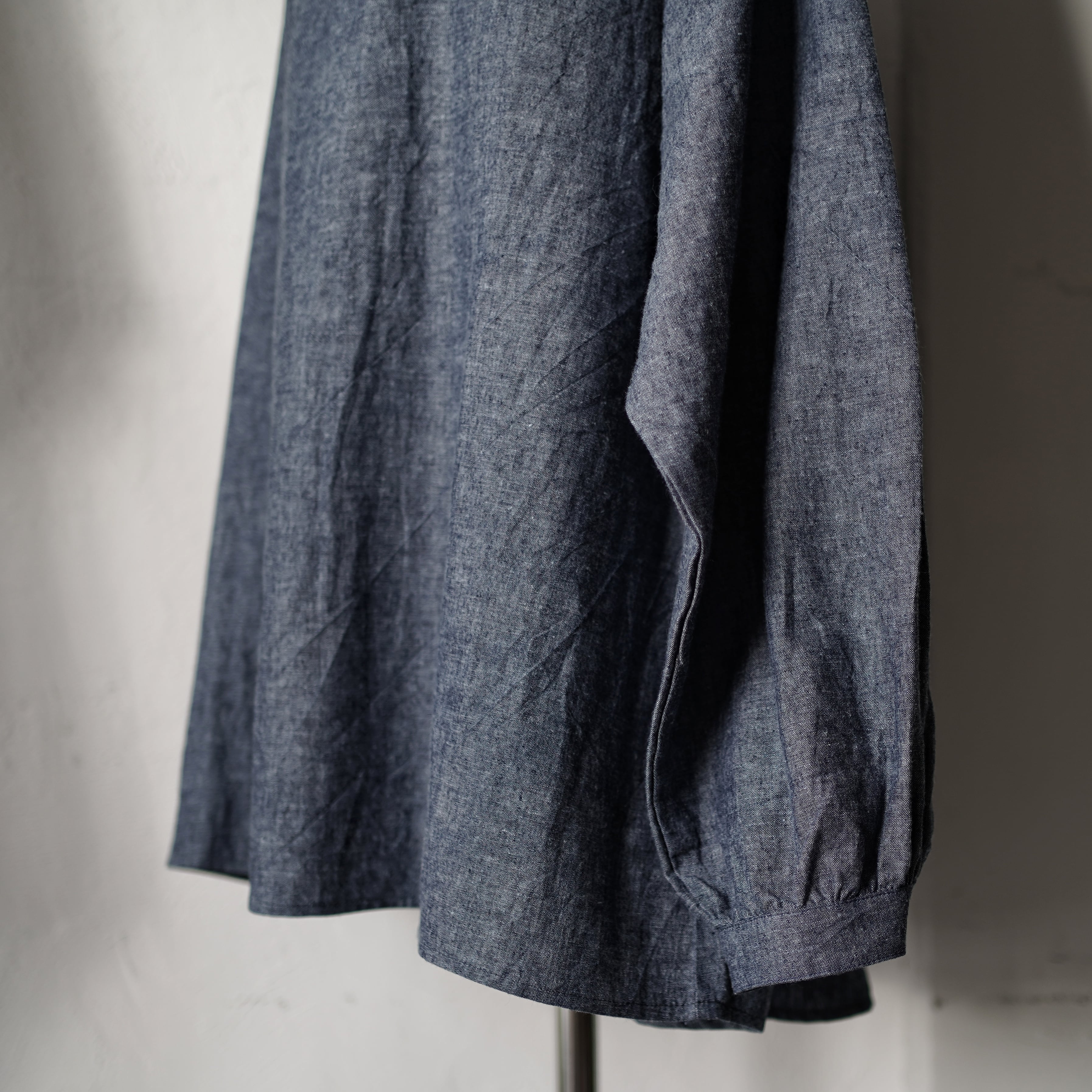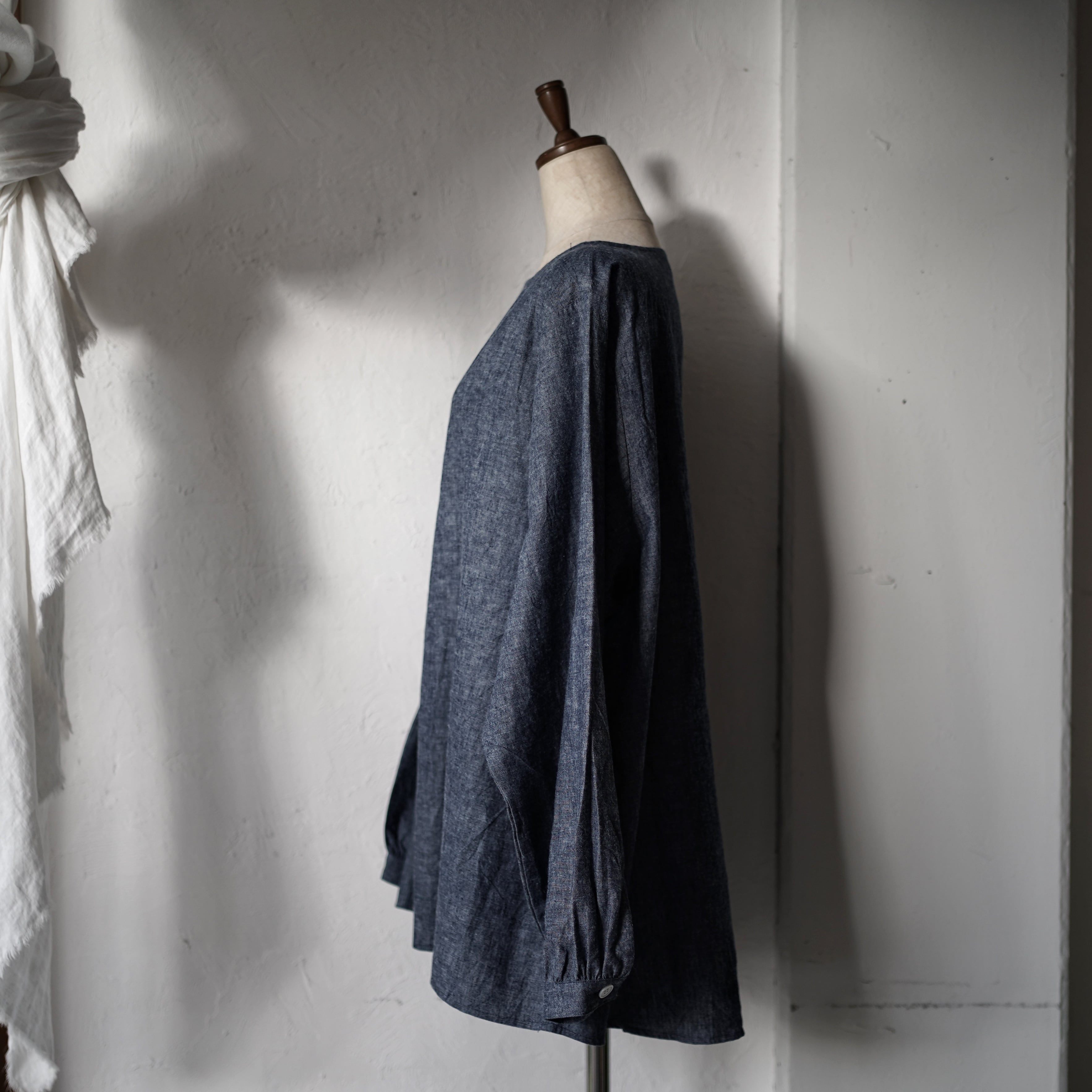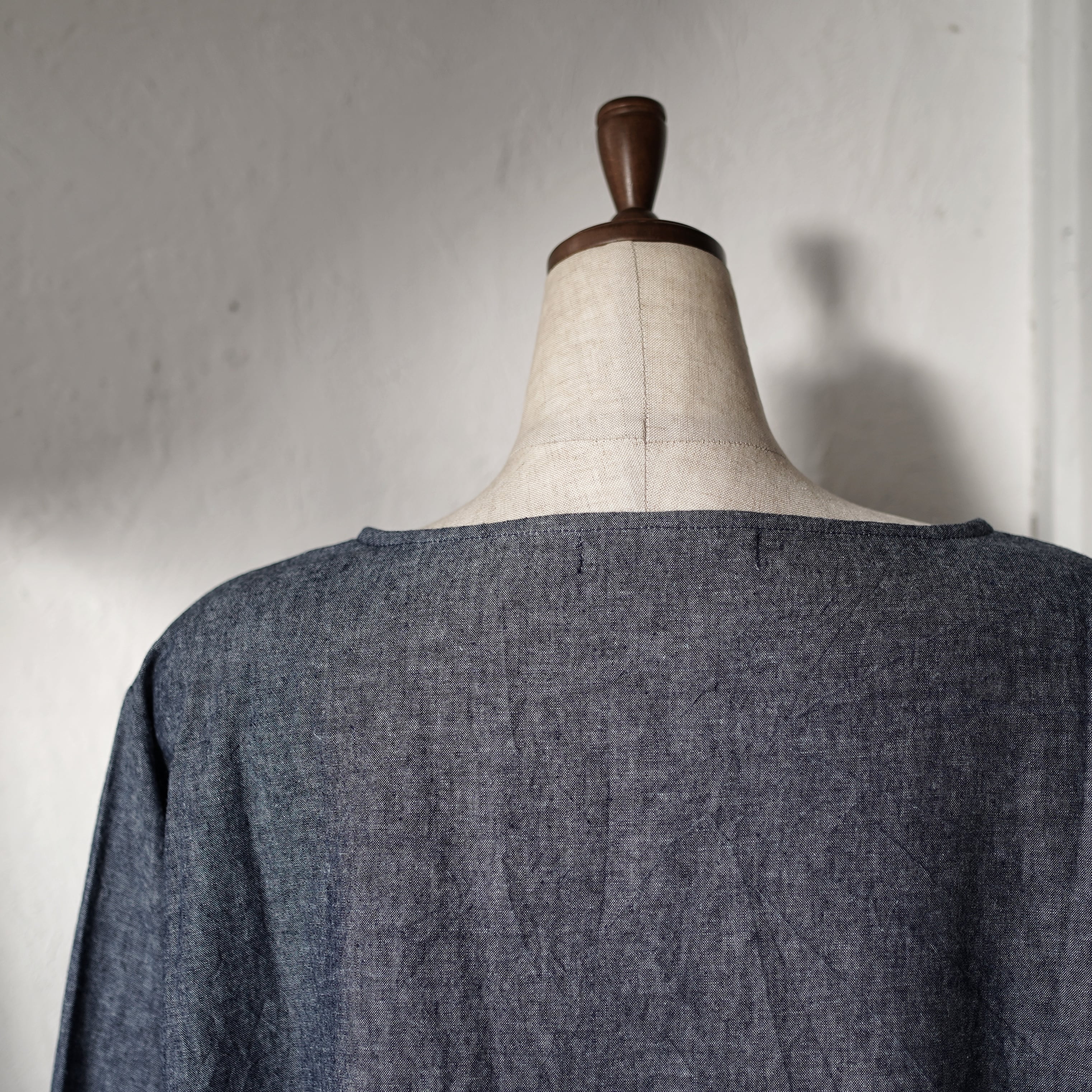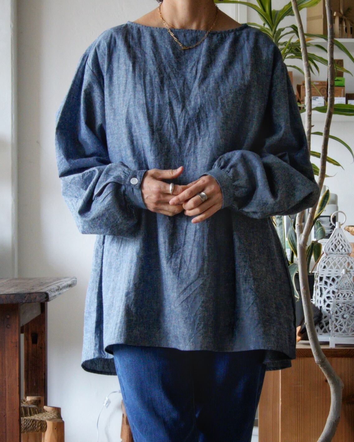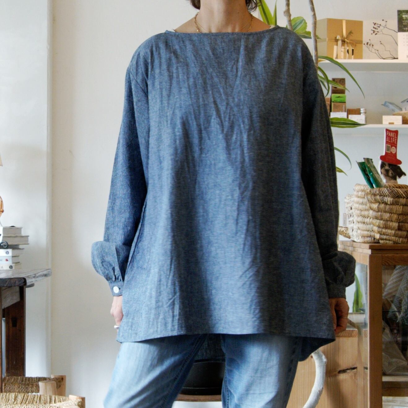 ボートネックブラウス[ インディゴ染めシャンブレー]/A HOPE HEMP