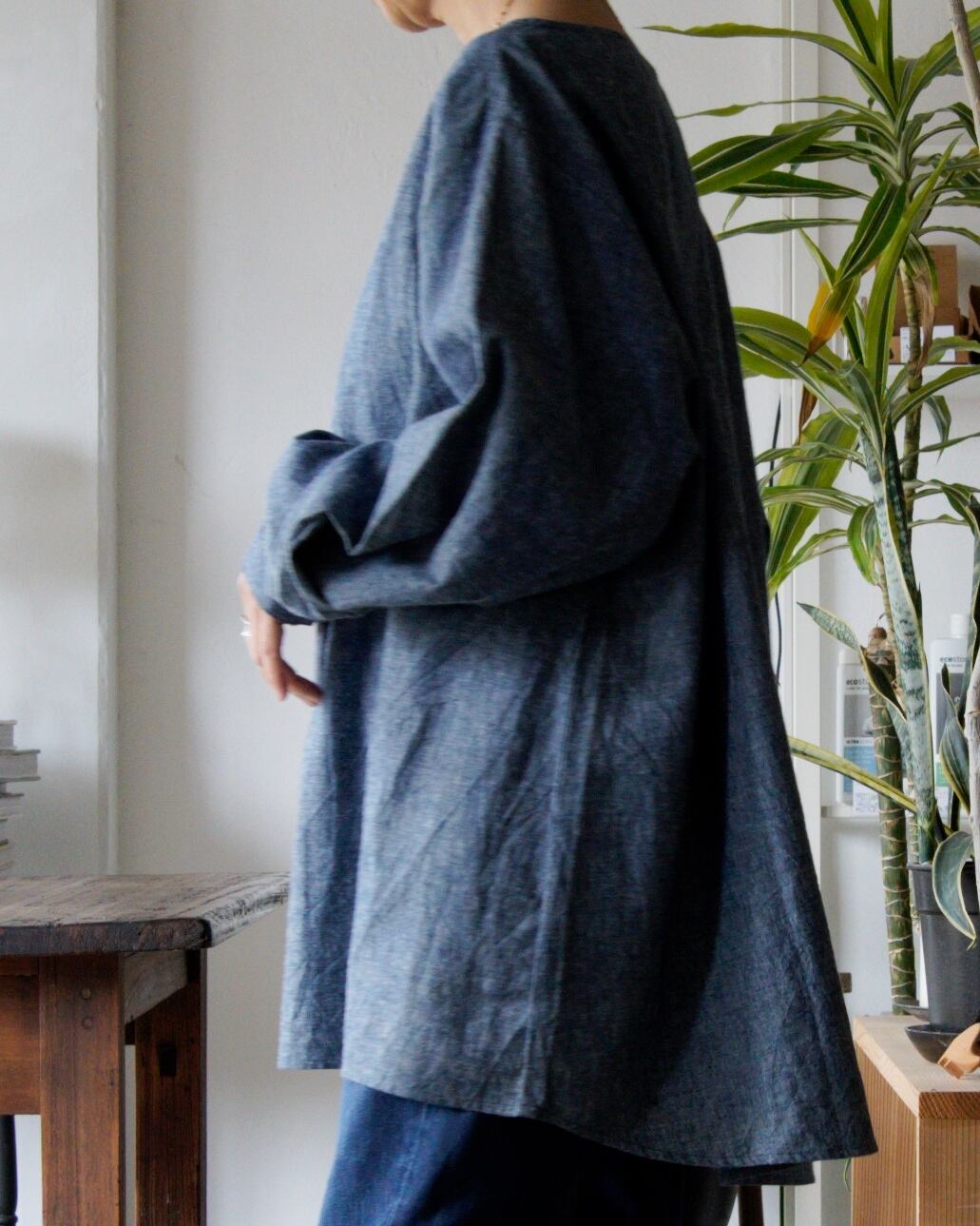 シンプルでありながら存在感のあるフォルムは、一枚でさらりと着るのはもちろん、季節の羽織りとしても活躍。