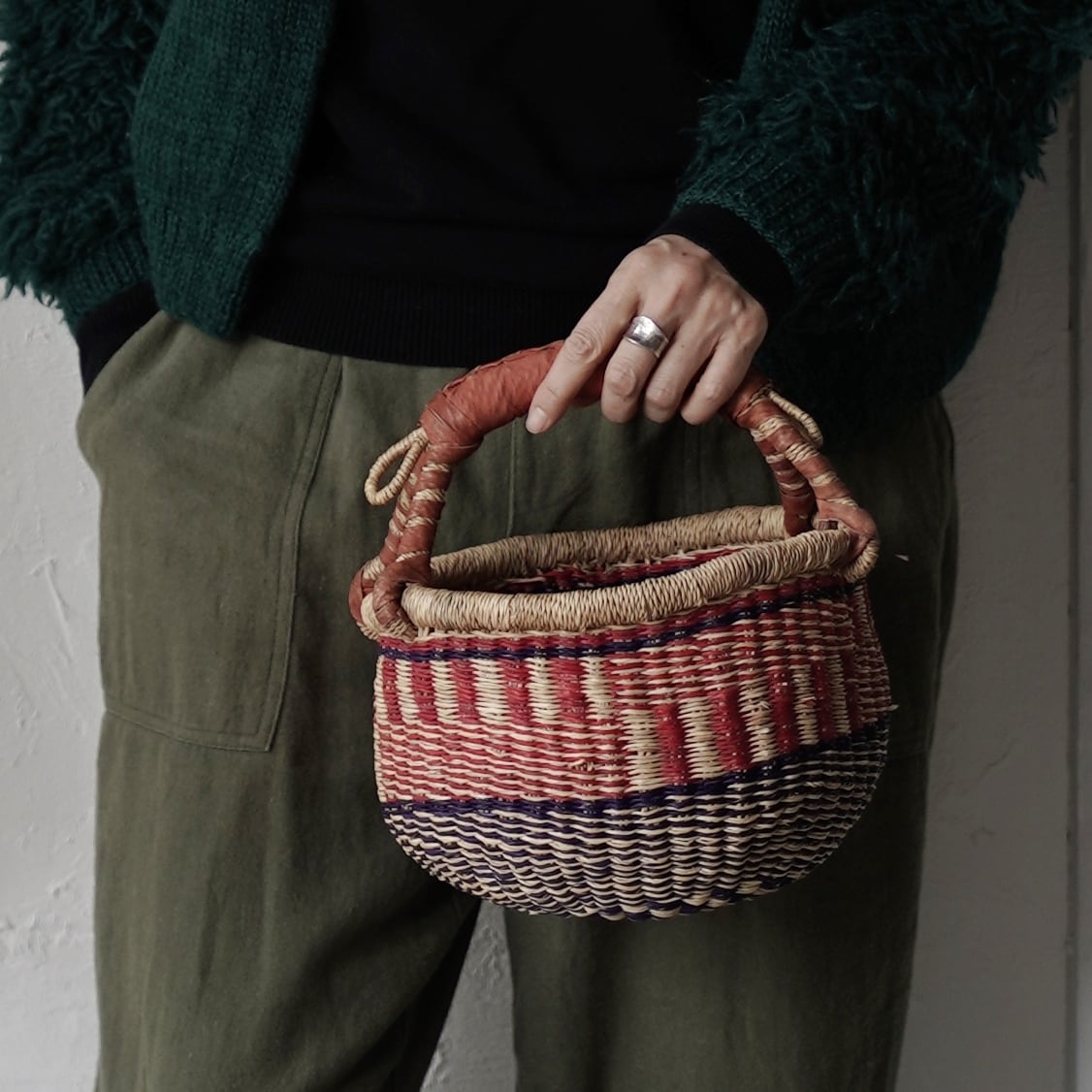 西アフリカ・ブルキナファソの職人たちが、天然の水草「エレファントグラス」を用いてひとつひとつ丁寧に編み上げたバスケット。