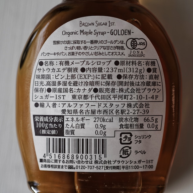 有機メープルシロップ ゴールデン(237ml)/BROWN SUGERA 1ST.