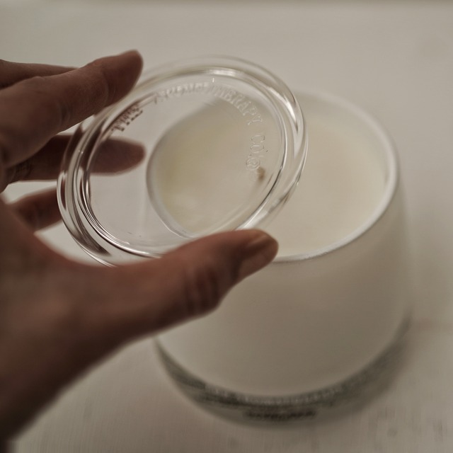ガラス容器は蓋付きで、使い終わった後も小物入れなどとして再利用可能。