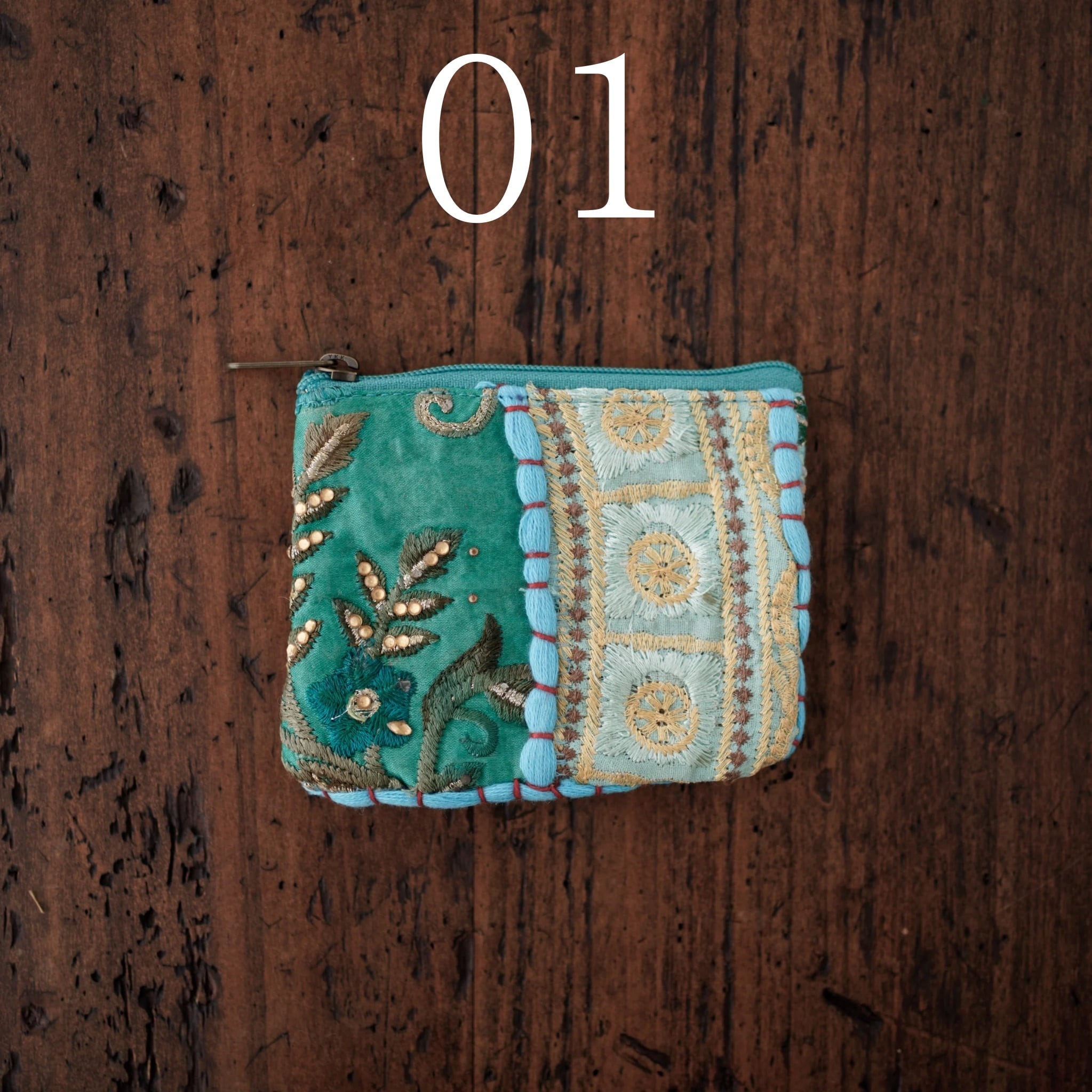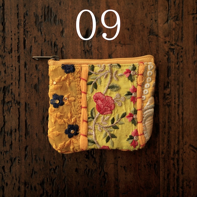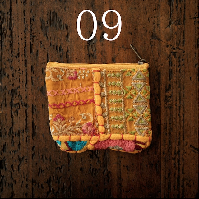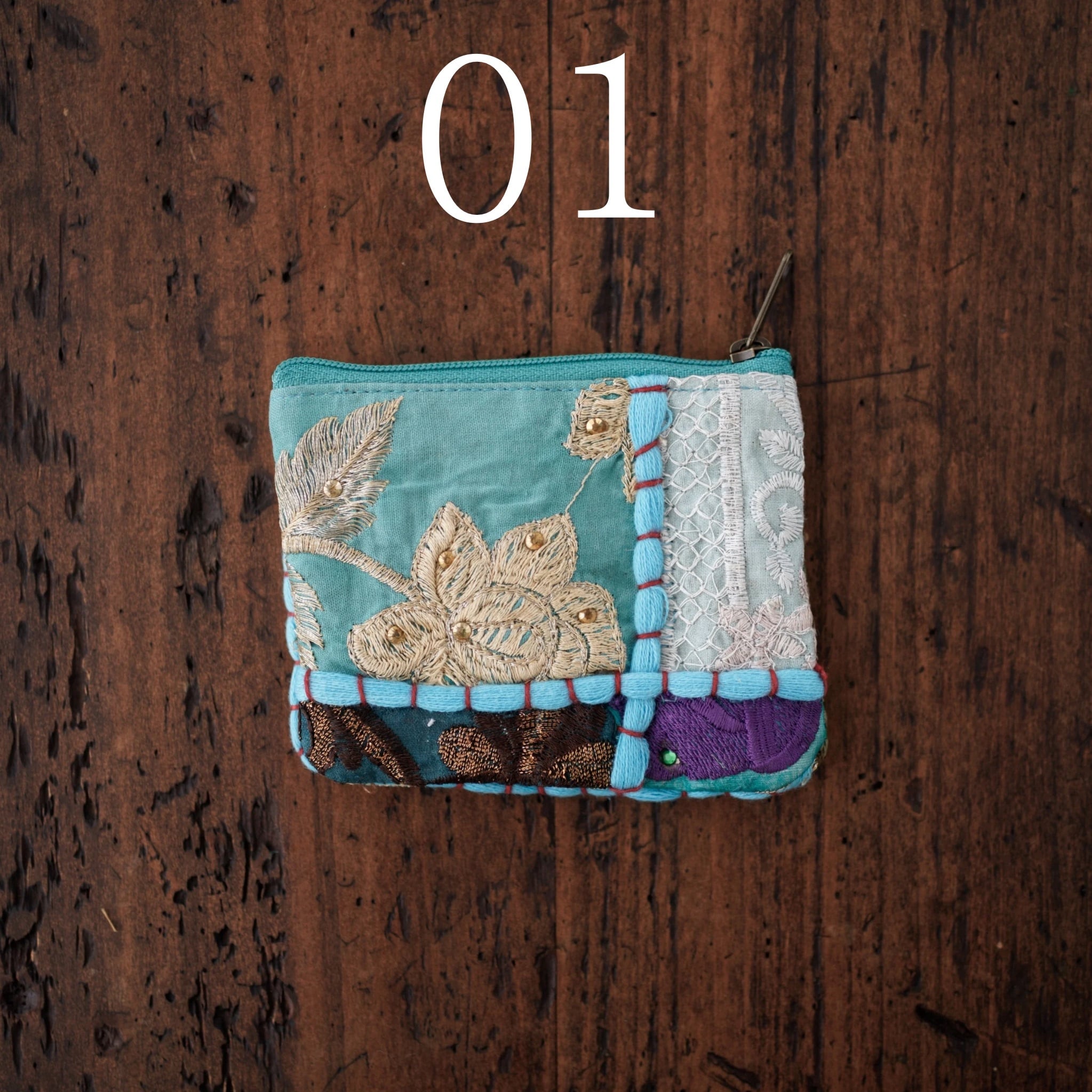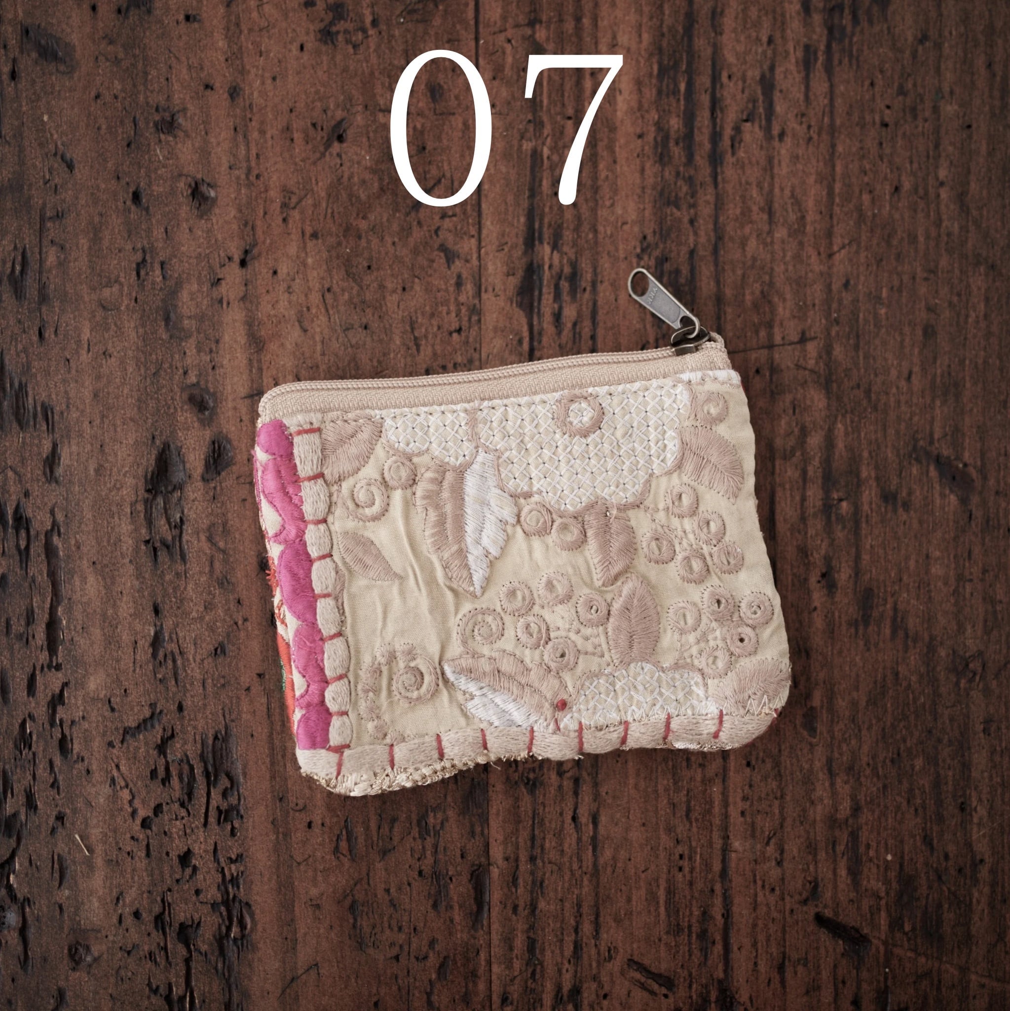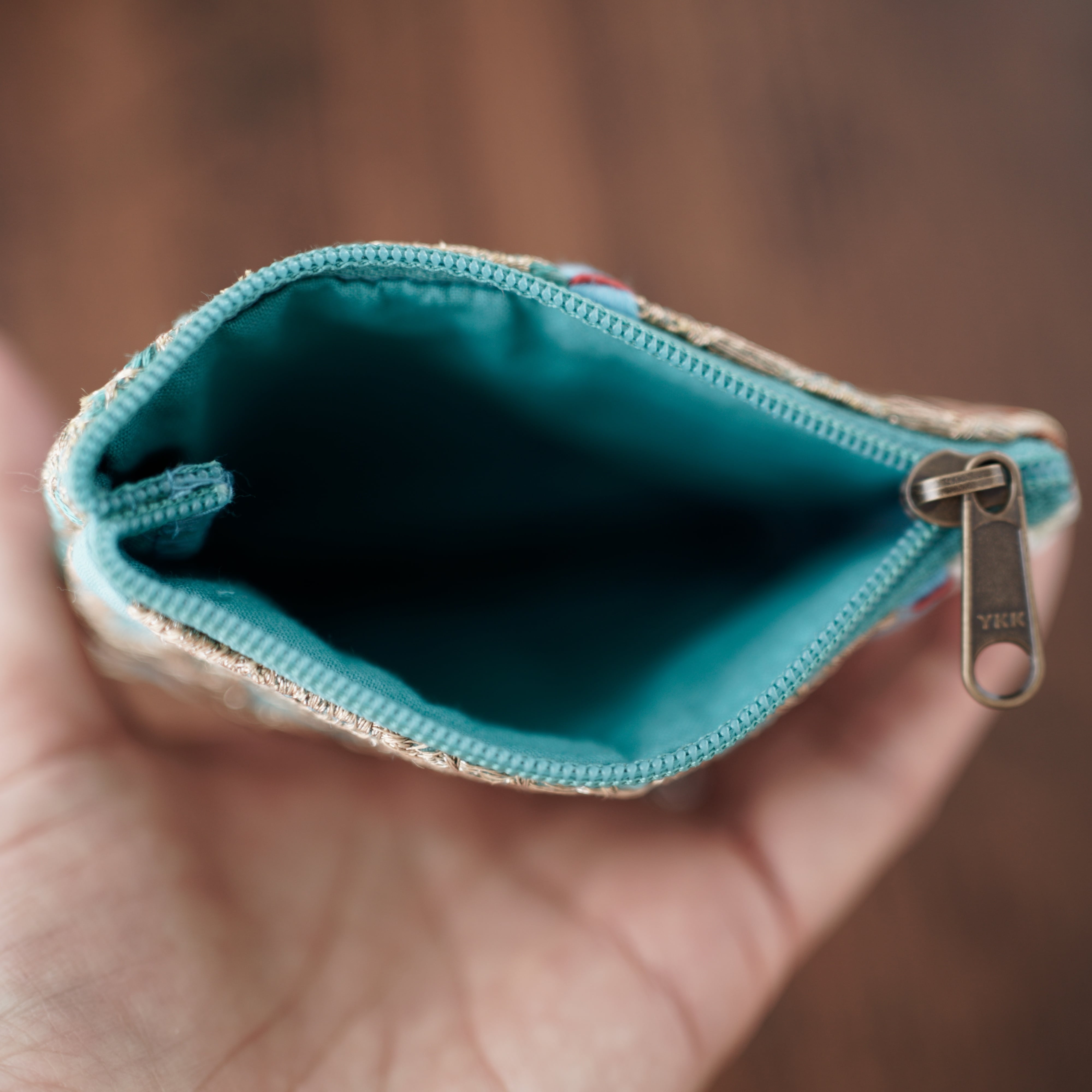 オールドテキスタイル(古布)を使った手の平サイズのシンプルなフラットポーチ。