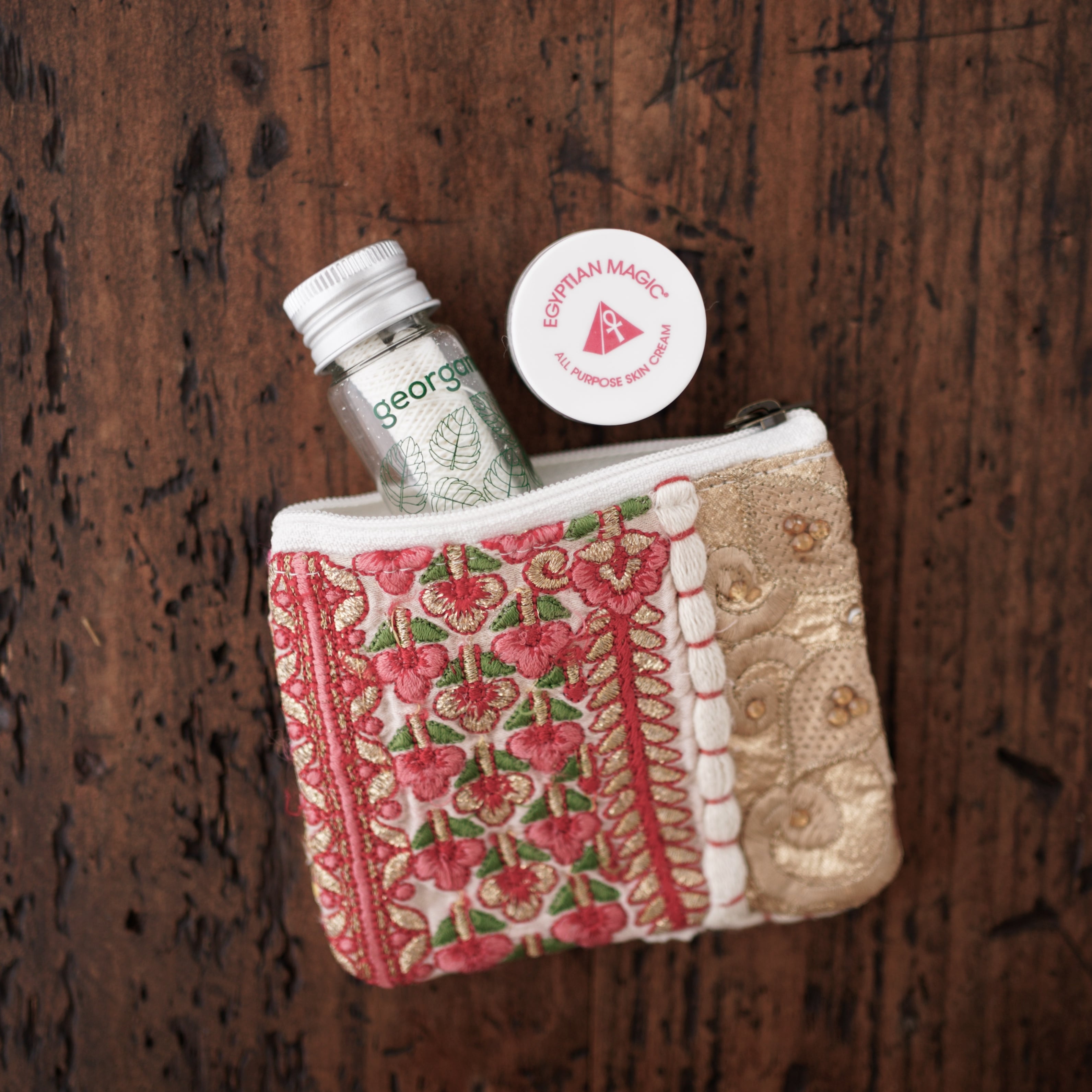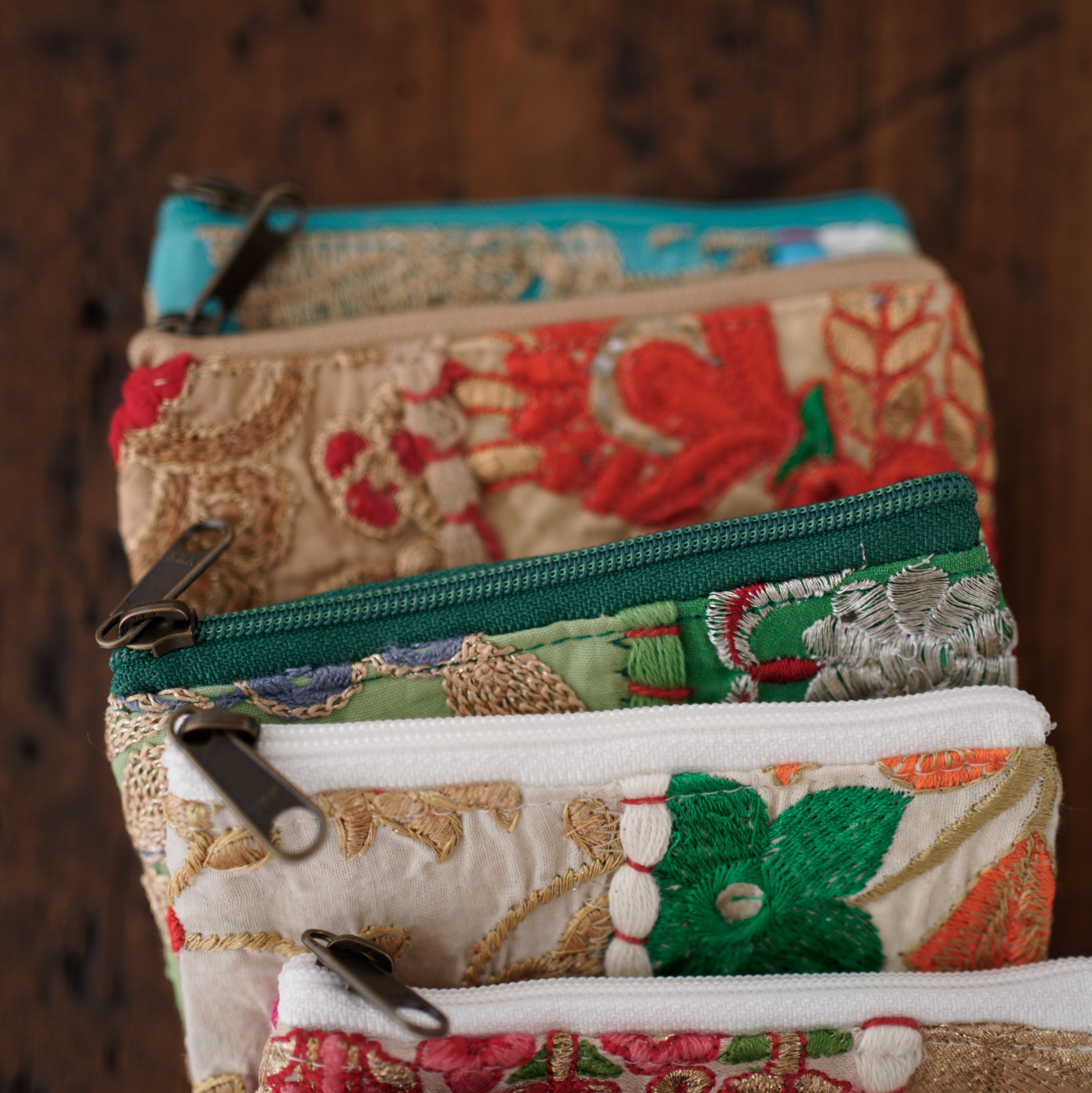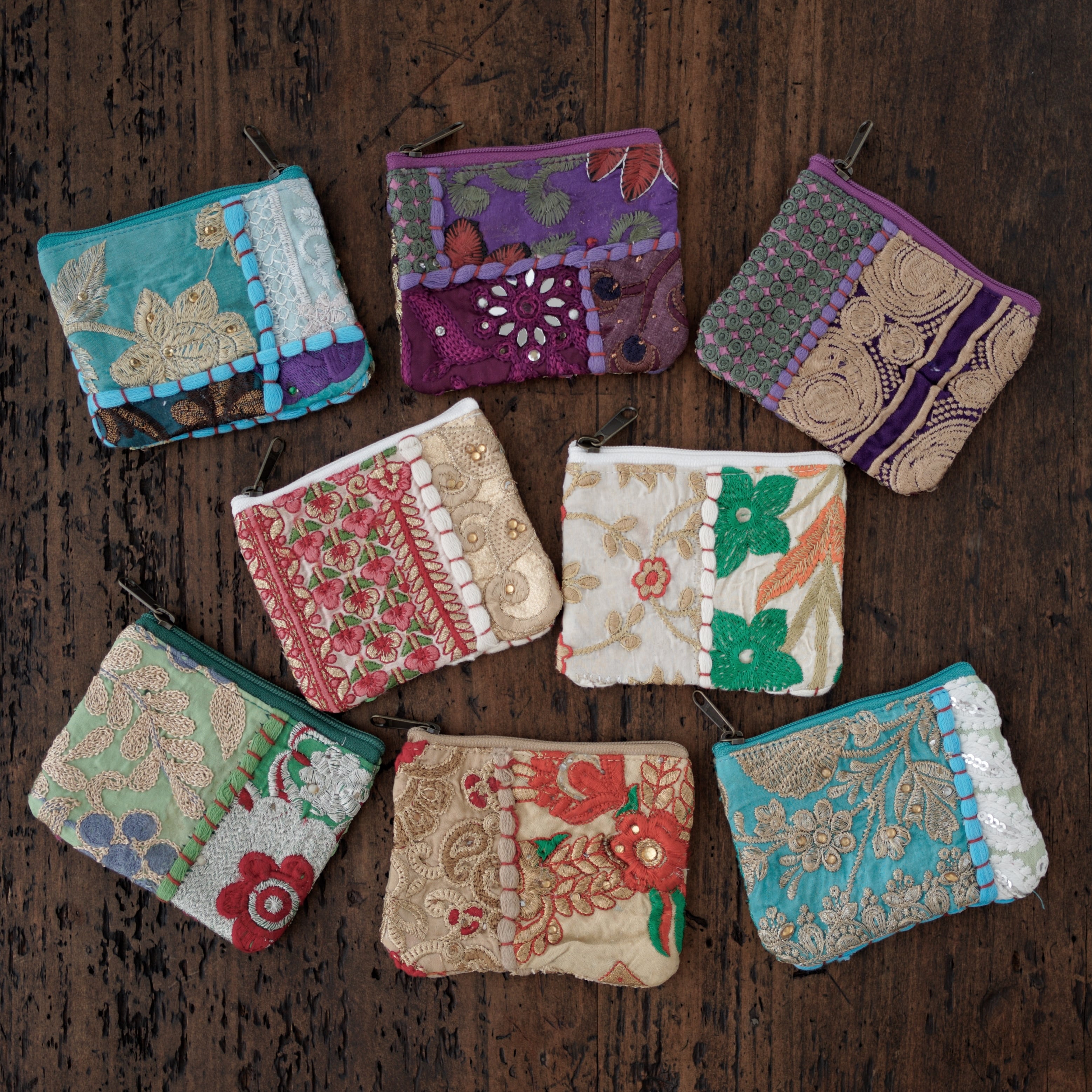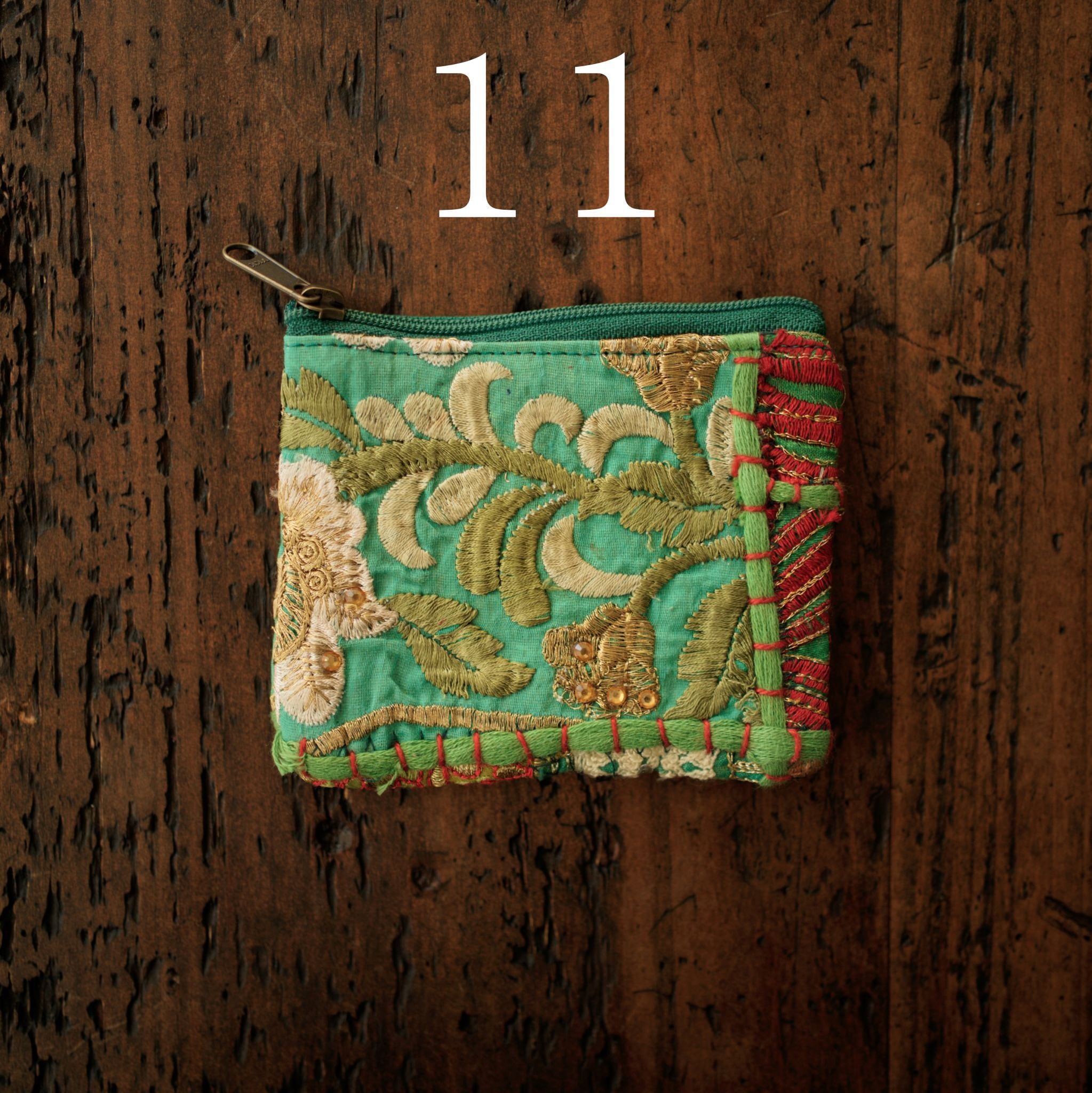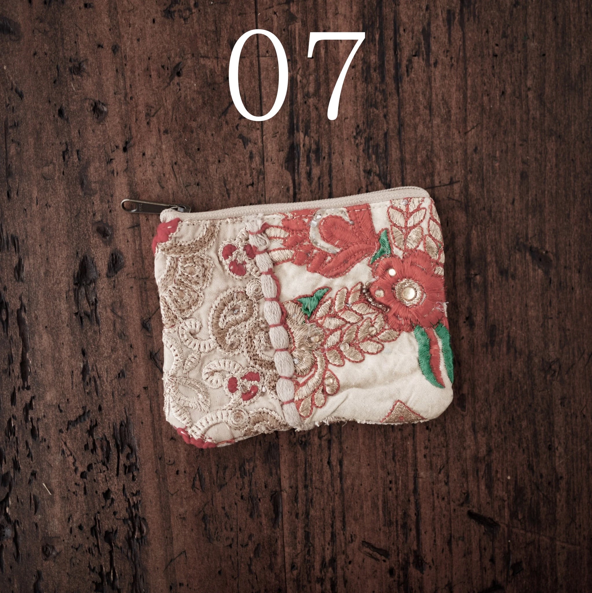 オールドテキスタイル(古布)を使った手の平サイズのシンプルなフラットポーチ。
