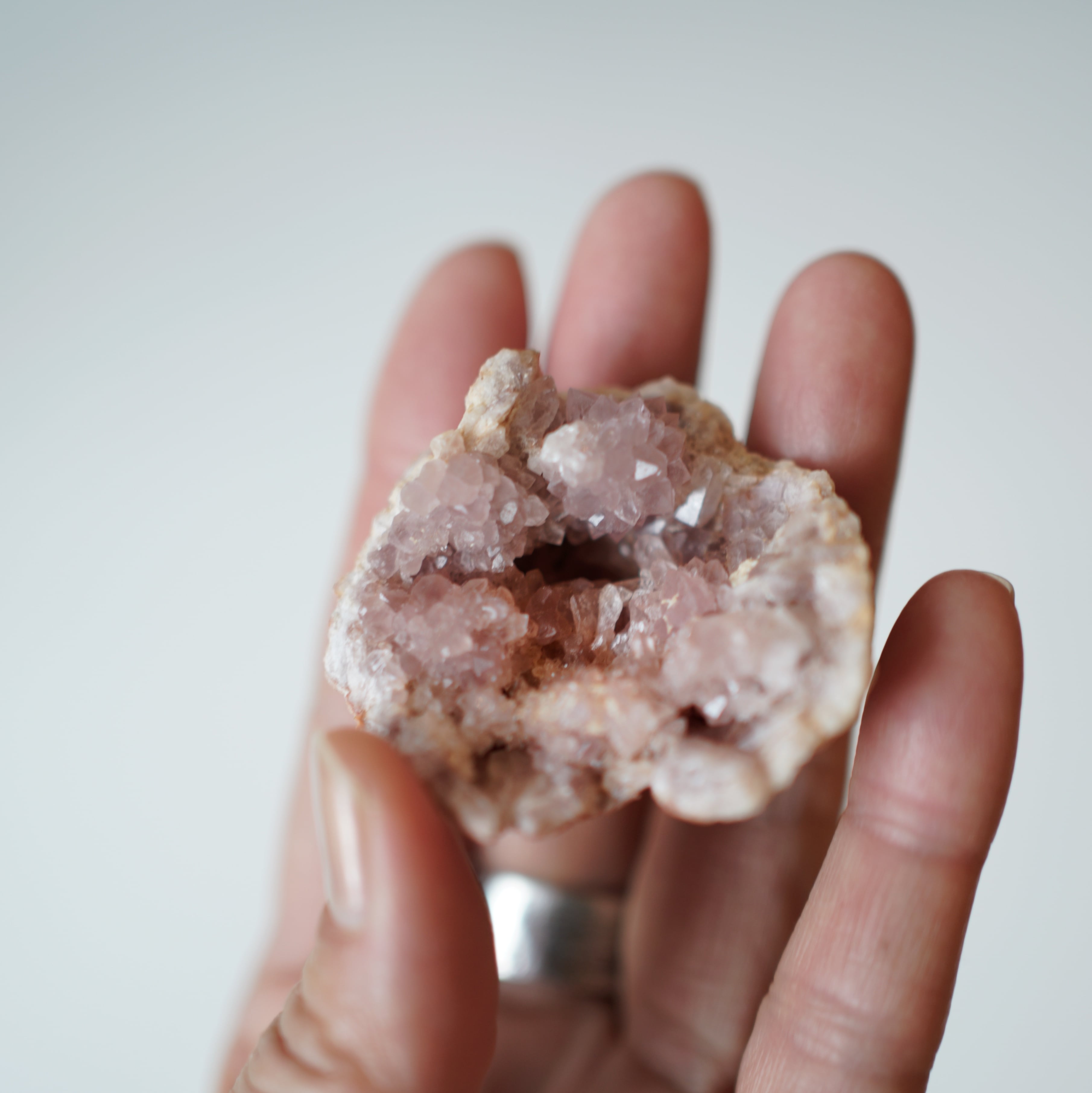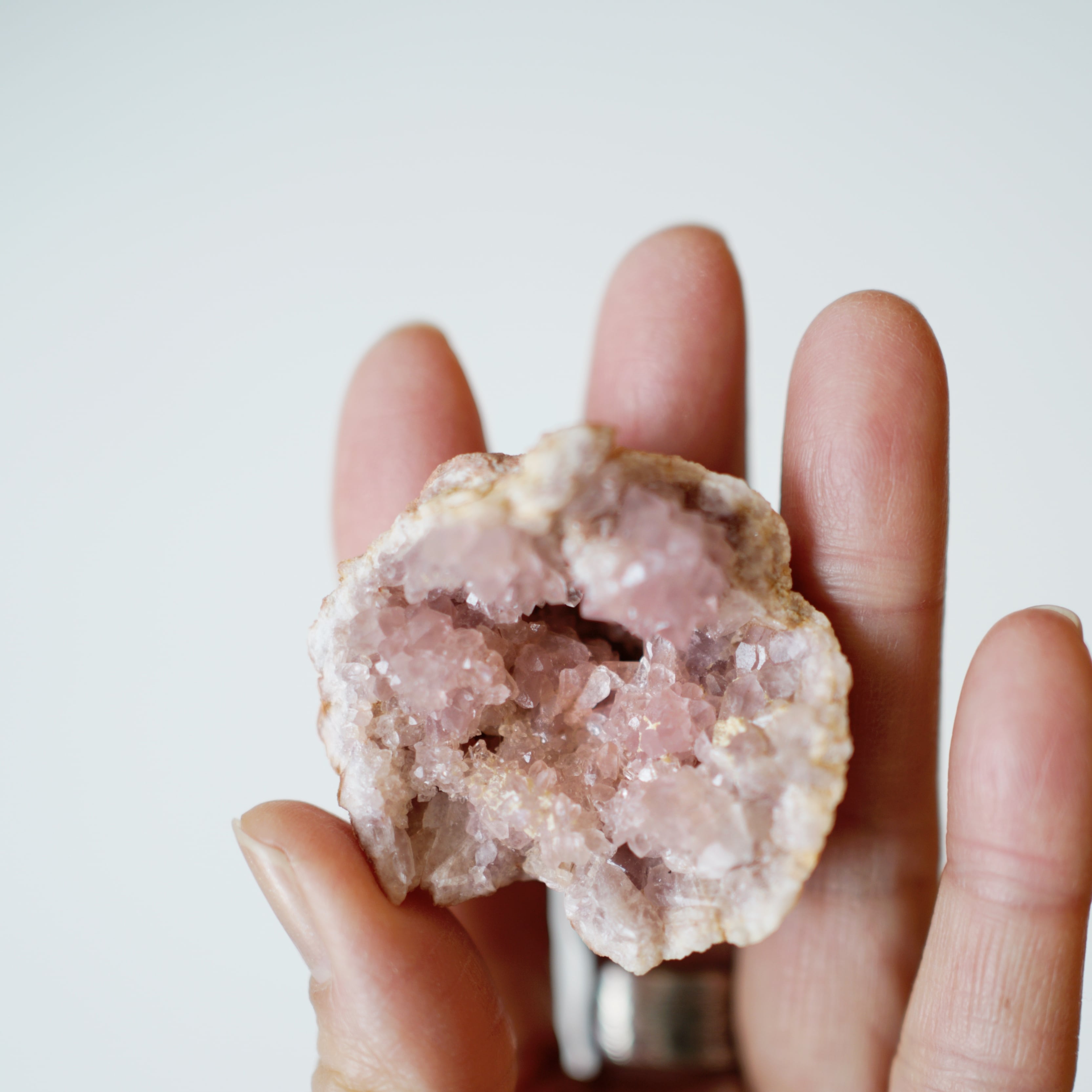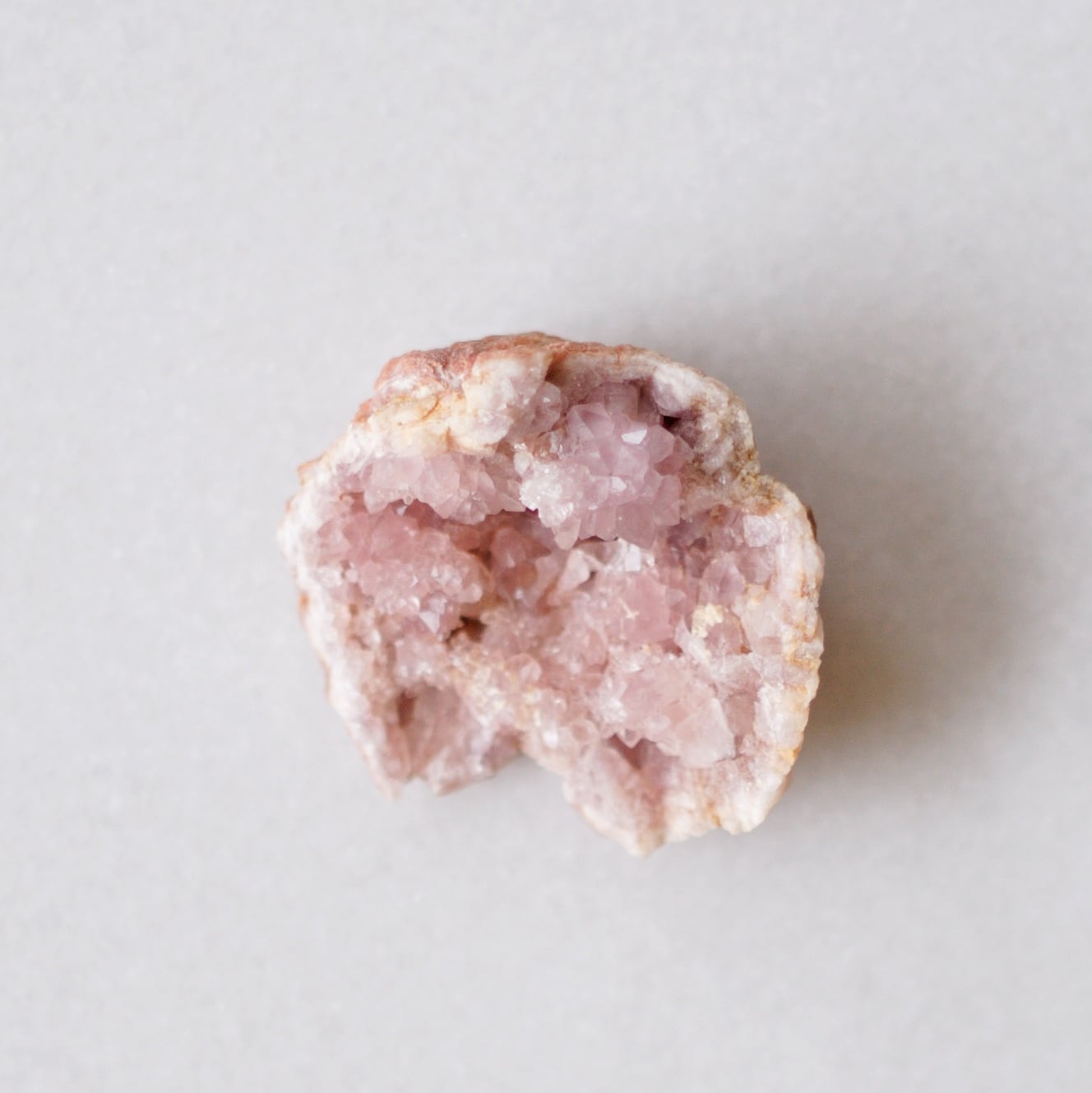 淡くやさしいピンク色が印象的な、希少性の高いジオードです。