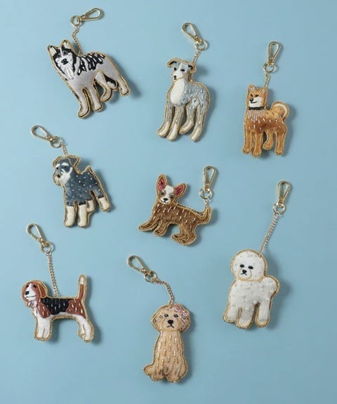 思わず笑顔になってしまう愛らしい表情の犬モチーフのキーホルダー。
