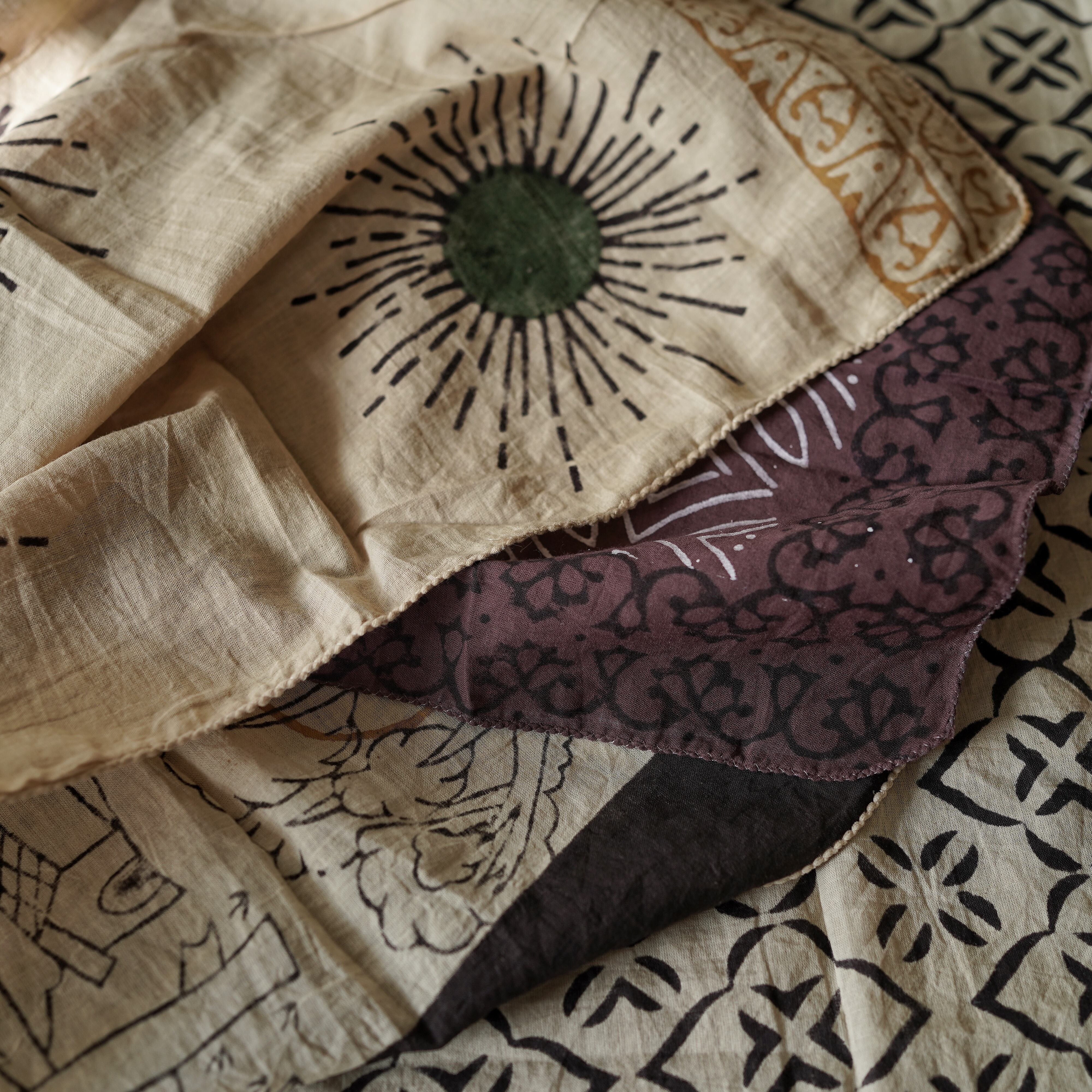 植物由来のやさしい染料と伝統的なブロックプリント技法から生まれる模様は、どれも世界にひとつだけの表情を持っています。