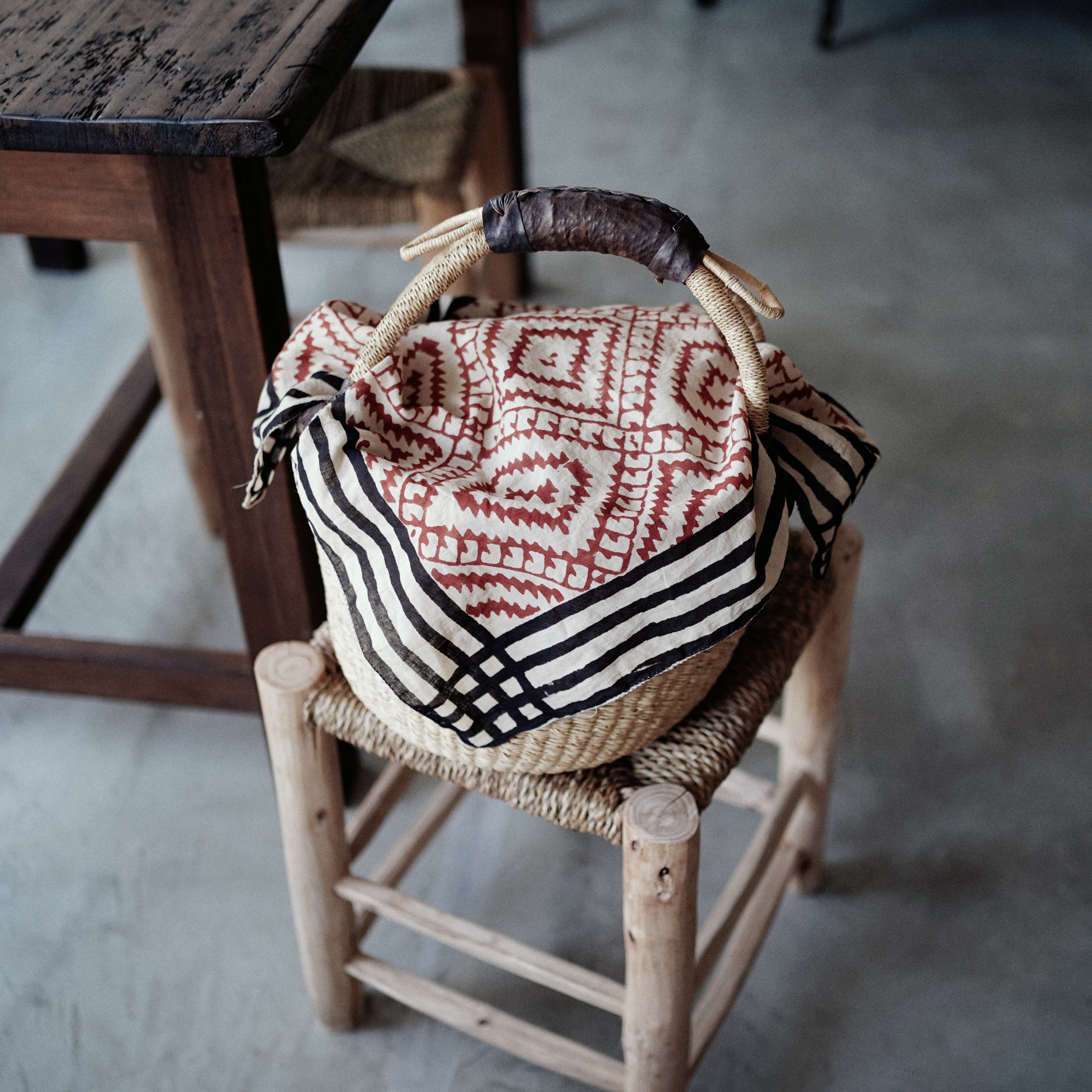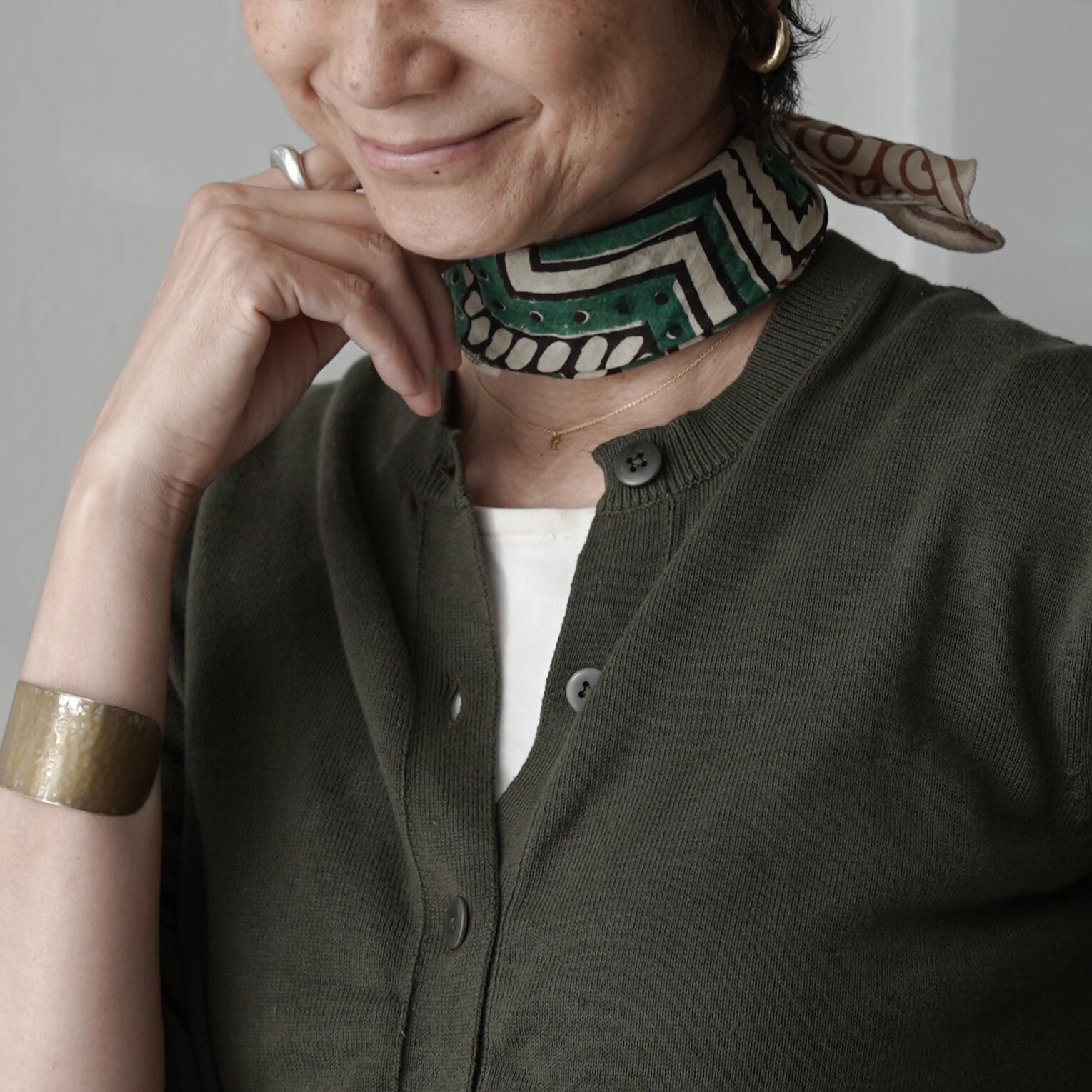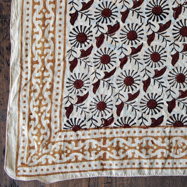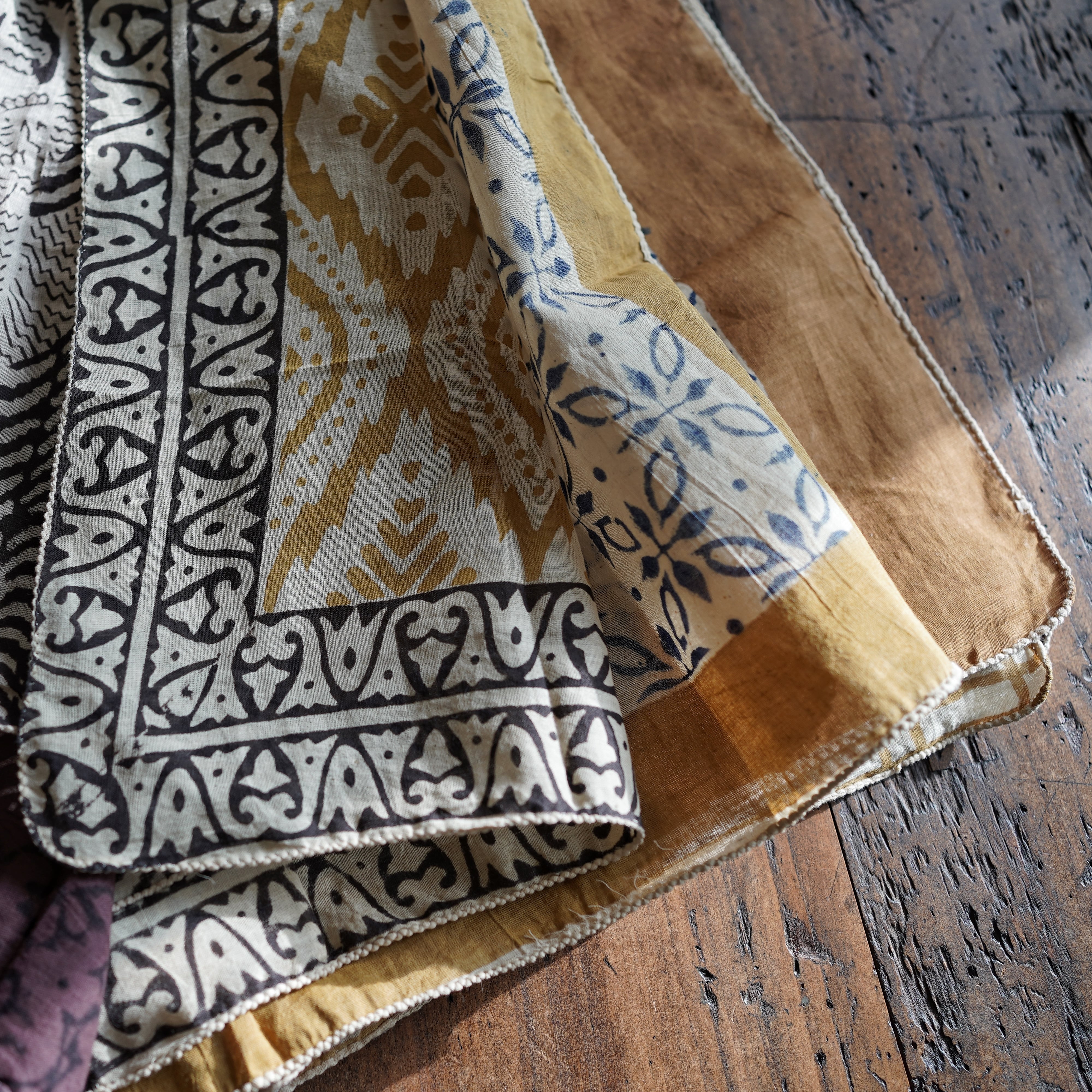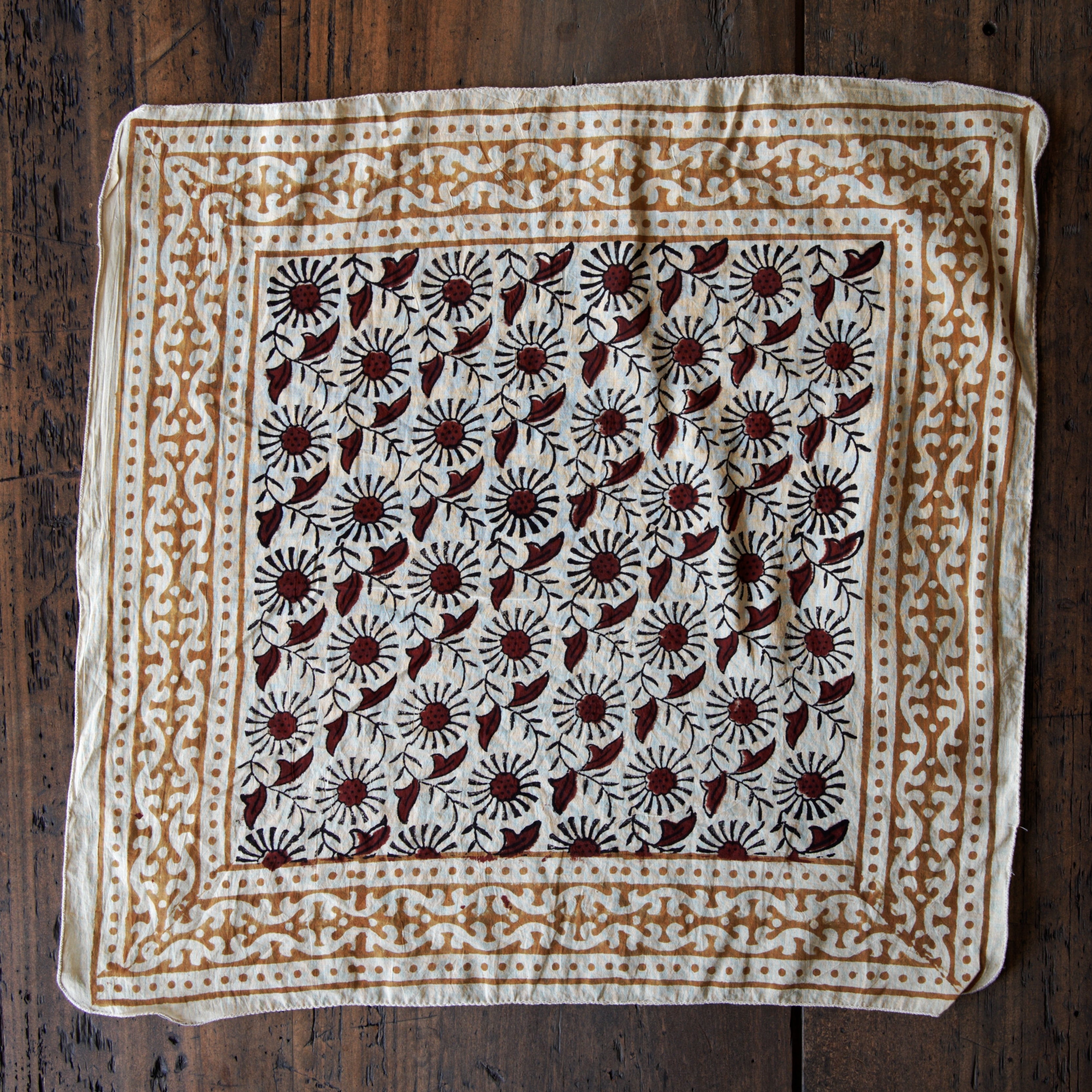 インドの職人によって、一枚一枚ていねいに木版で染め上げられたコットンバンダナ。