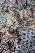 植物由来のやさしい染料と伝統的なブロックプリント技法から生まれる模様は、どれも世界にひとつだけの表情を持っています。
