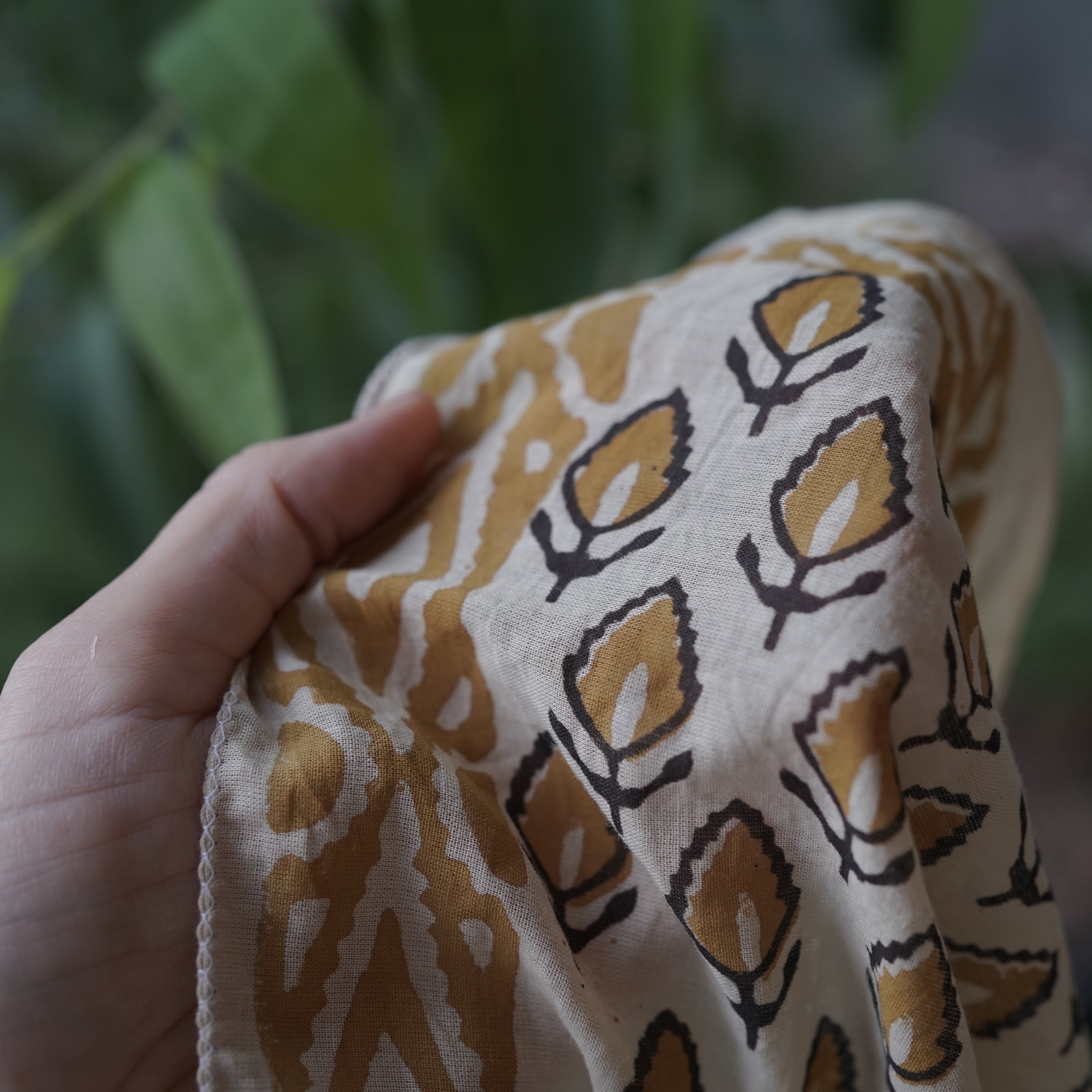 植物由来のやさしい染料と伝統的なブロックプリント技法から生まれる模様は、どれも世界にひとつだけの表情を持っています。