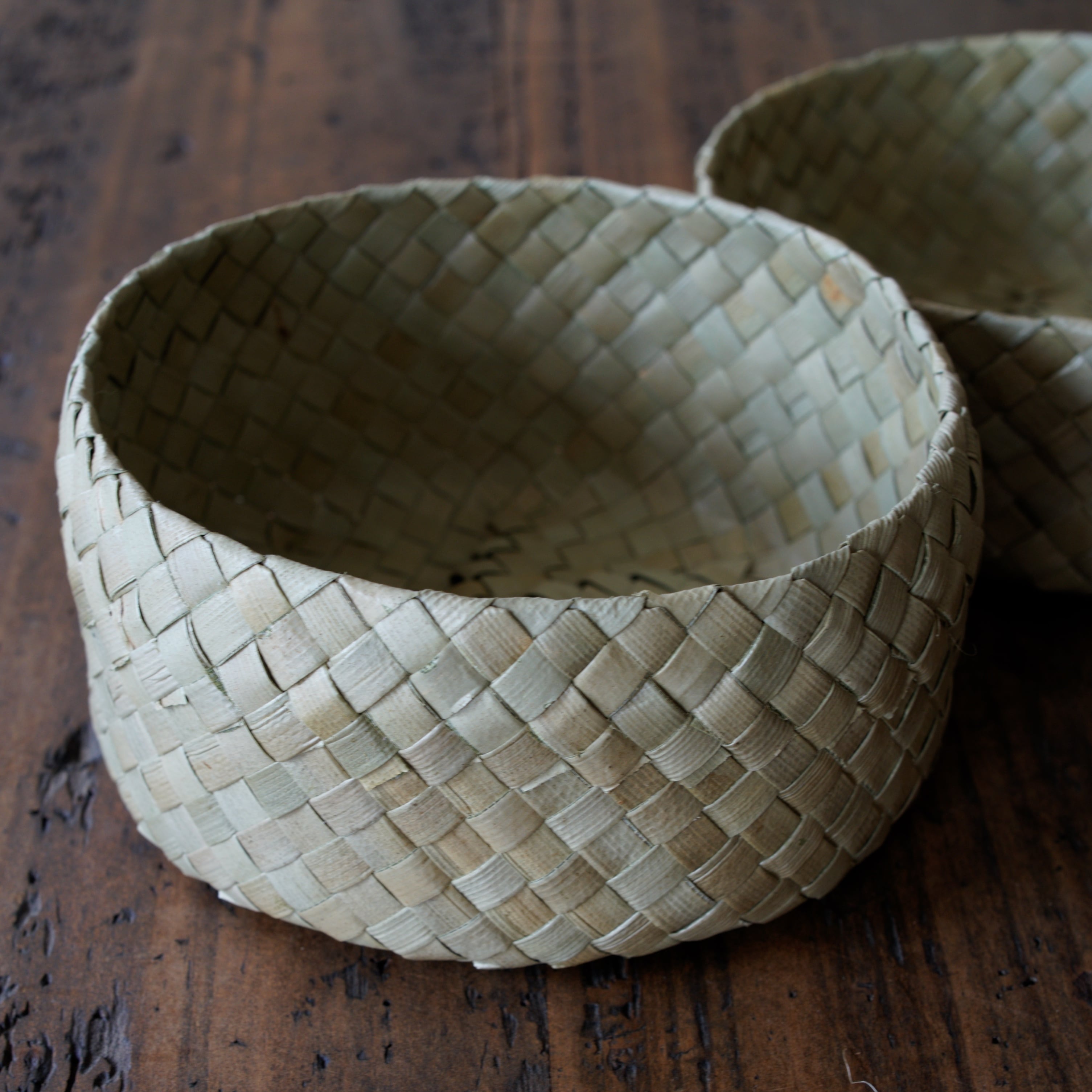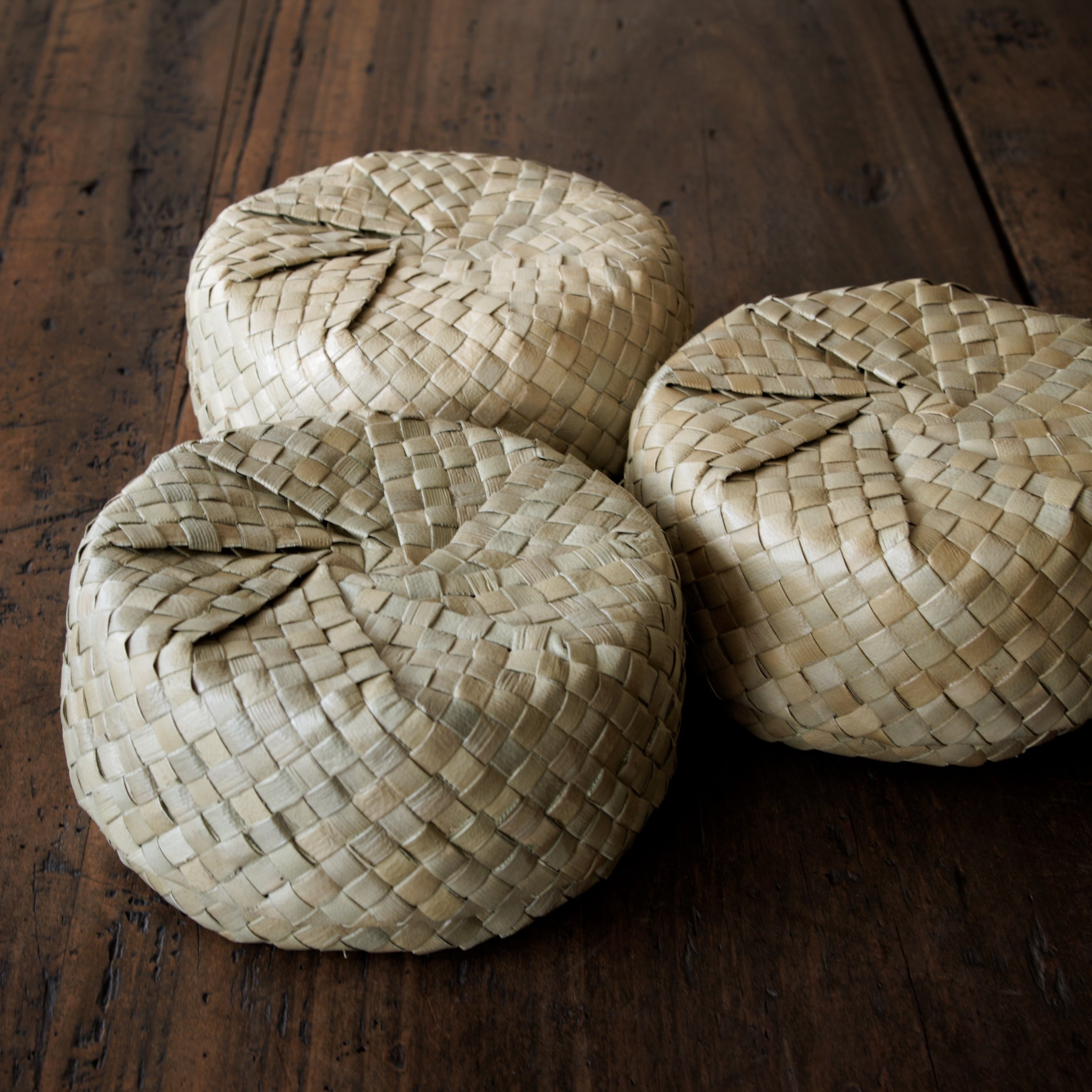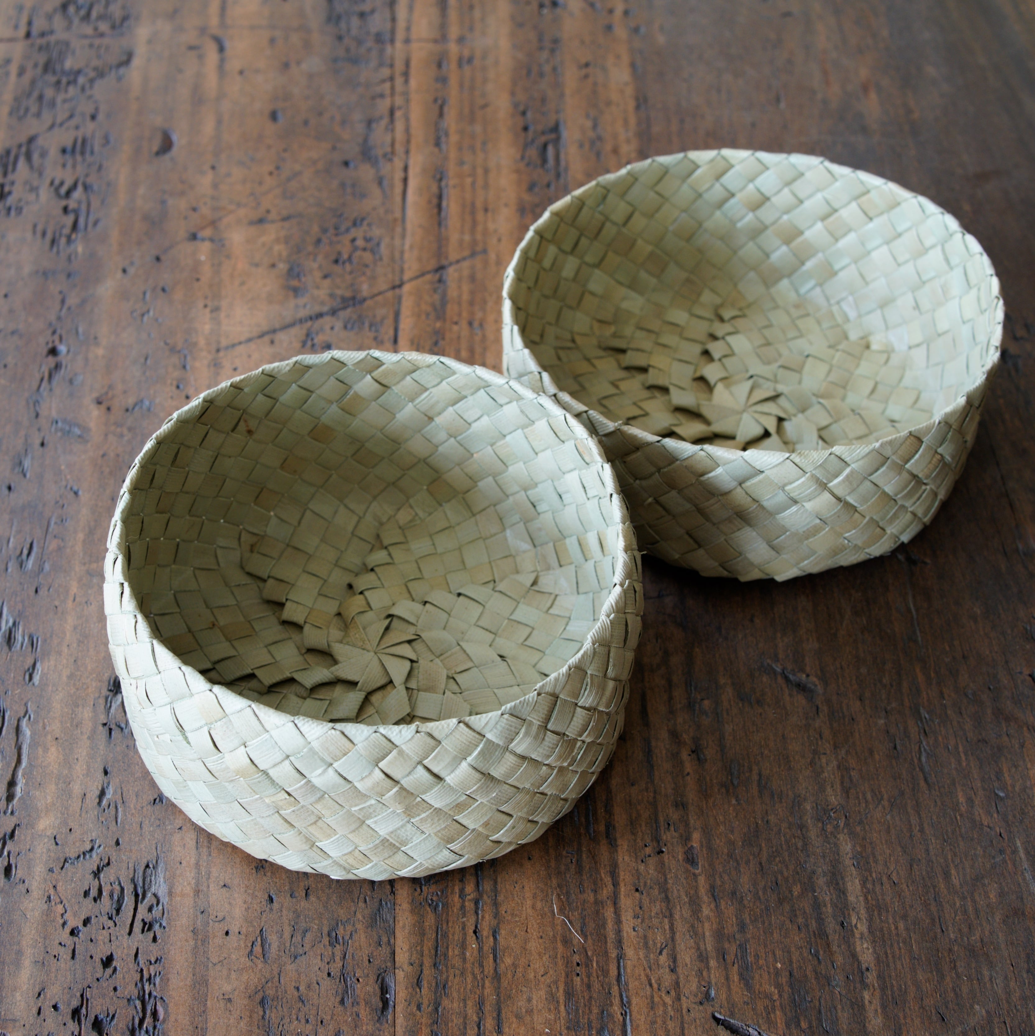 艶のある葉の表皮を細く裂き、ひとつひとつ丁寧に編み上げられています。