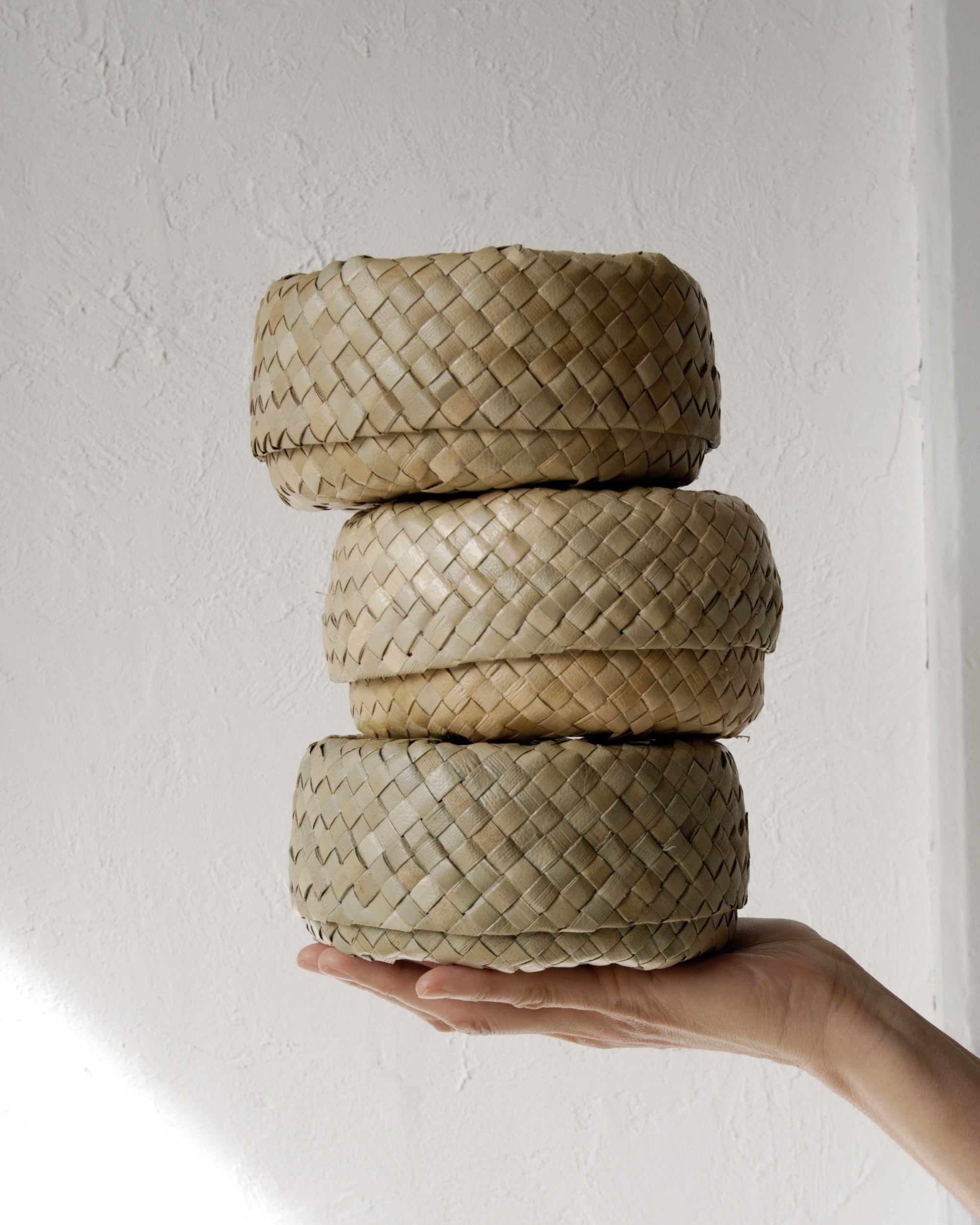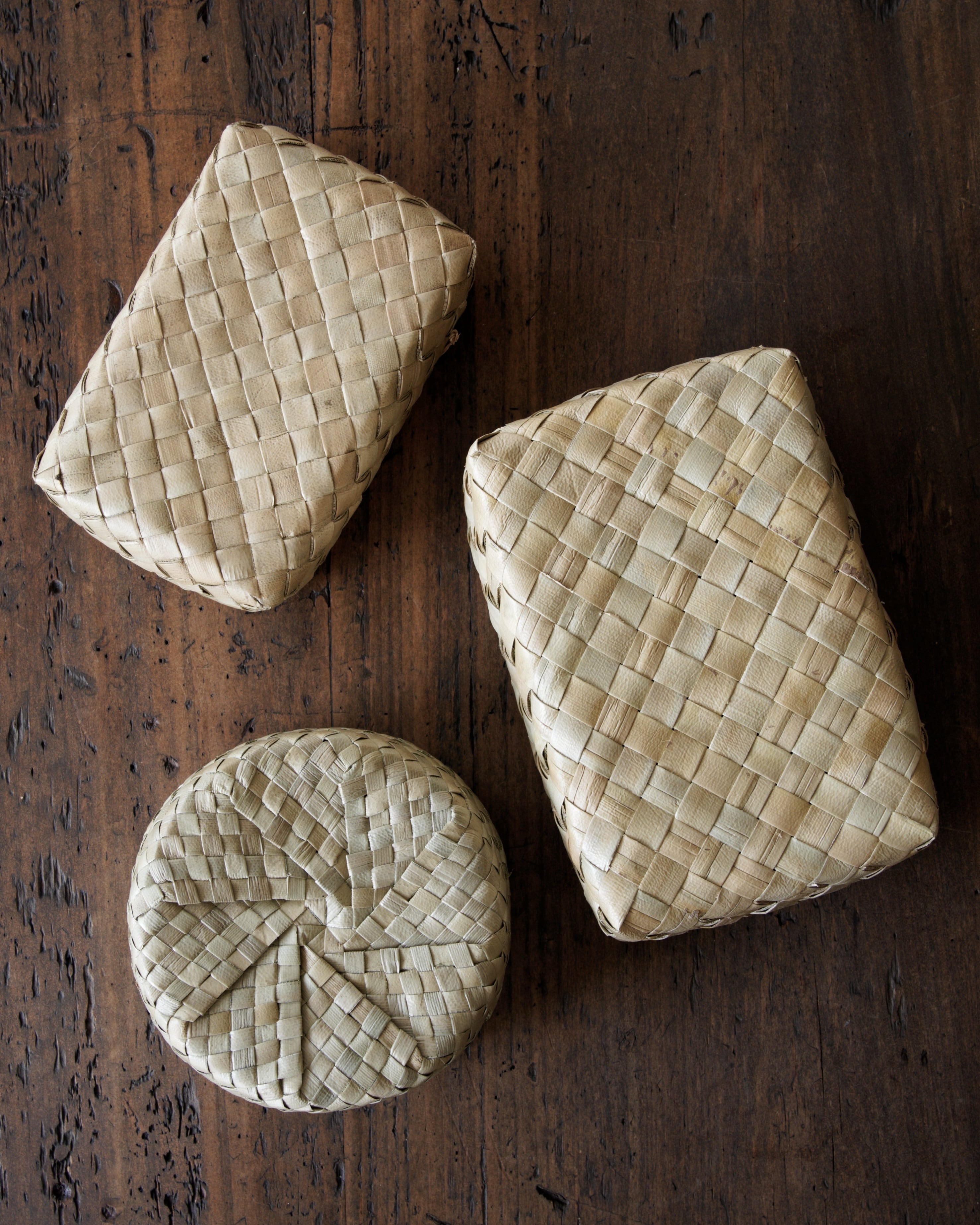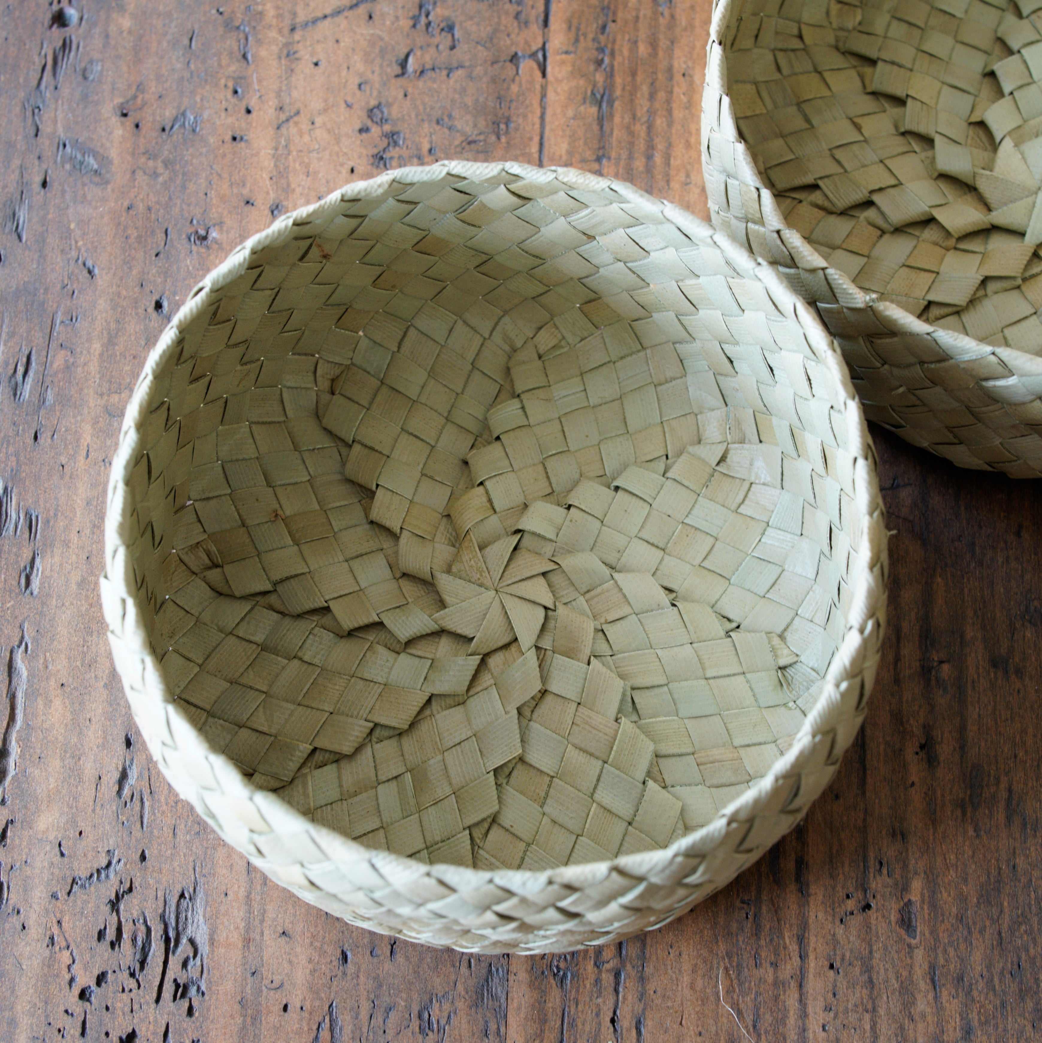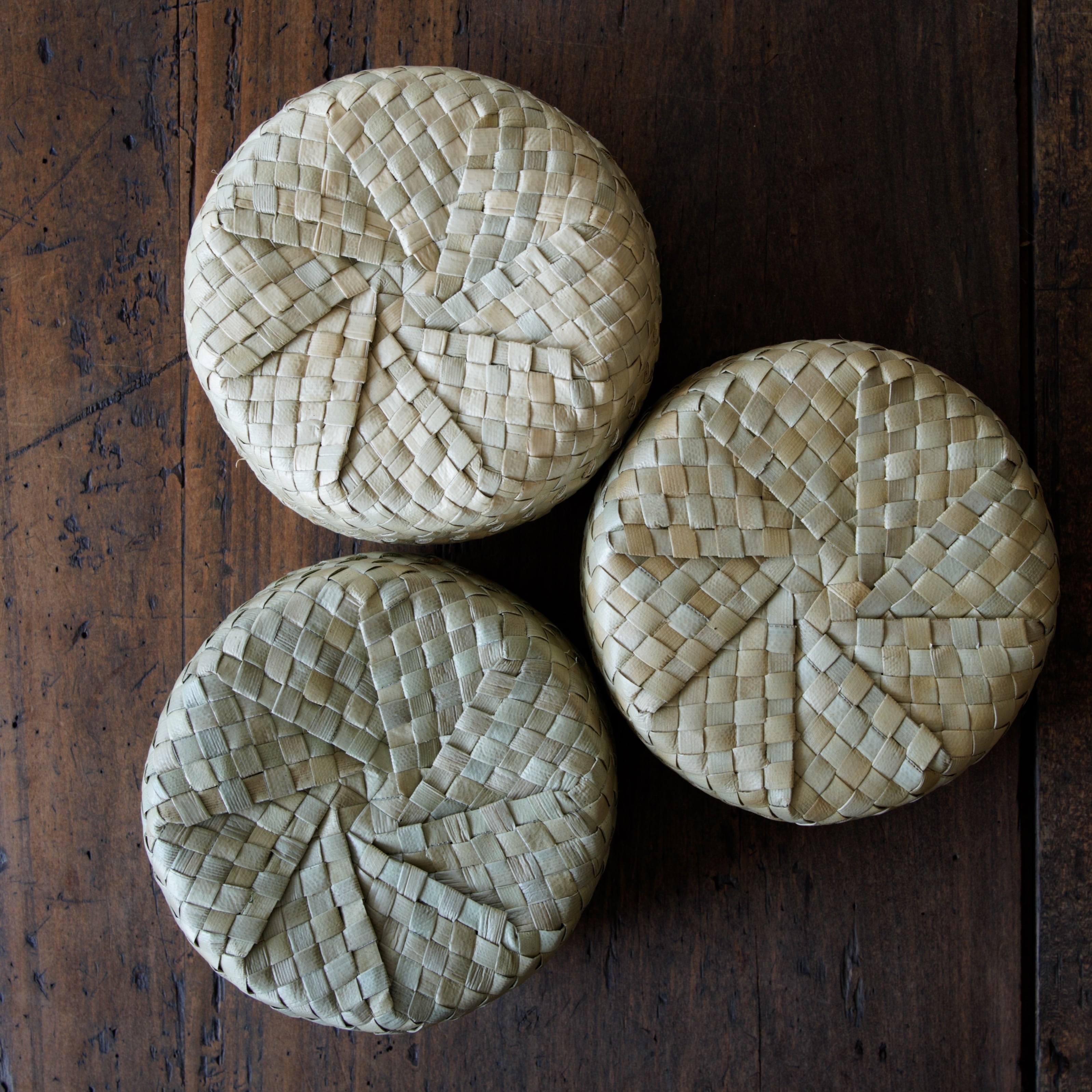 艶のある葉の表皮を細く裂き、ひとつひとつ丁寧に編み上げられています。